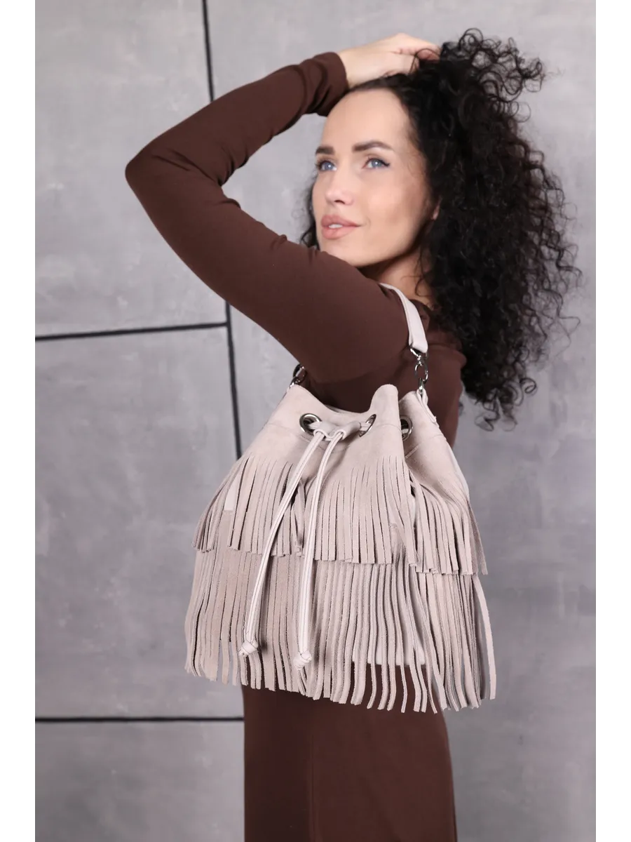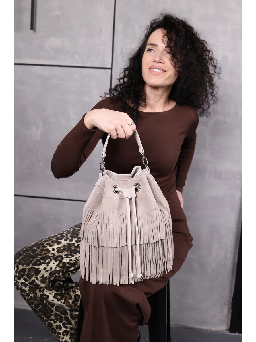 Представляем вам универсальную и стильную женскую сумку через плечо - среднюю классического дизайна на магнитной кнопке и стягивается шнуром. Сумка мешок выполнена из натуральной замши (передняя стенка и бахрома) + задняя стенка сумки и ремни из скусственной кожи отличного качества, которая сохраняет свои первозданные свойства в течение долгого времени, и не уступает по мягкости и внешнему виду натуральной коже. Не очень большая , но вместительная и удобная сумка позволяет вместить все самое необходимое. Кисет можно носить в руках или повесить на плечо. Сумка женская через плечо средняя в стиле бохо практична, идеальна для повседневного ношения, подойдет как деловая или вместительная на работу в офис. Эта вещь станет незаменимым аксессуаром для девушек и женщин в любой ситуации - от повседневных дел до деловых встреч и путешествий. Тоут средняя с двумя ручками для женщин подойдет на каждый день, на прогулку, учебу в колледж школу университет, в офис или на работу. Яркий дизайн делает эту круглую сумку идеальной для прогулок и учебы, а классический стиль будет уместен в офисе и на деловых встречах. Сумочка дамская через плечо также укомплектована отделениями для телефона и других мелочей, что позволяет легко и быстро найти нужный предмет. Не шоппер, но достаточно вместительная. Эта универсальная вещь подходит как для подростков, так и для женщин, которые ценят стиль и комфорт. Так же её можно использовать как дорожную сумку - ручная кладь для путешествий. Торба имеет размеры 24х27х15 см. Внутри сумки кисет 1 отделение с карманоми на молнии и без. Малый ремень высотой 17 см. В комплекте идет длинный регулируемый ремень, максимальная 120 см. На задней стенке карман на молнии 15х12см . Не упустите возможность приобрести эту стильную сумку через плечо от Gera Bags! Прекрасный подарок для любимой мамы или девушки! Женские сумки от бренда Gera Bags - это качество российского производителя по доступной цене!
