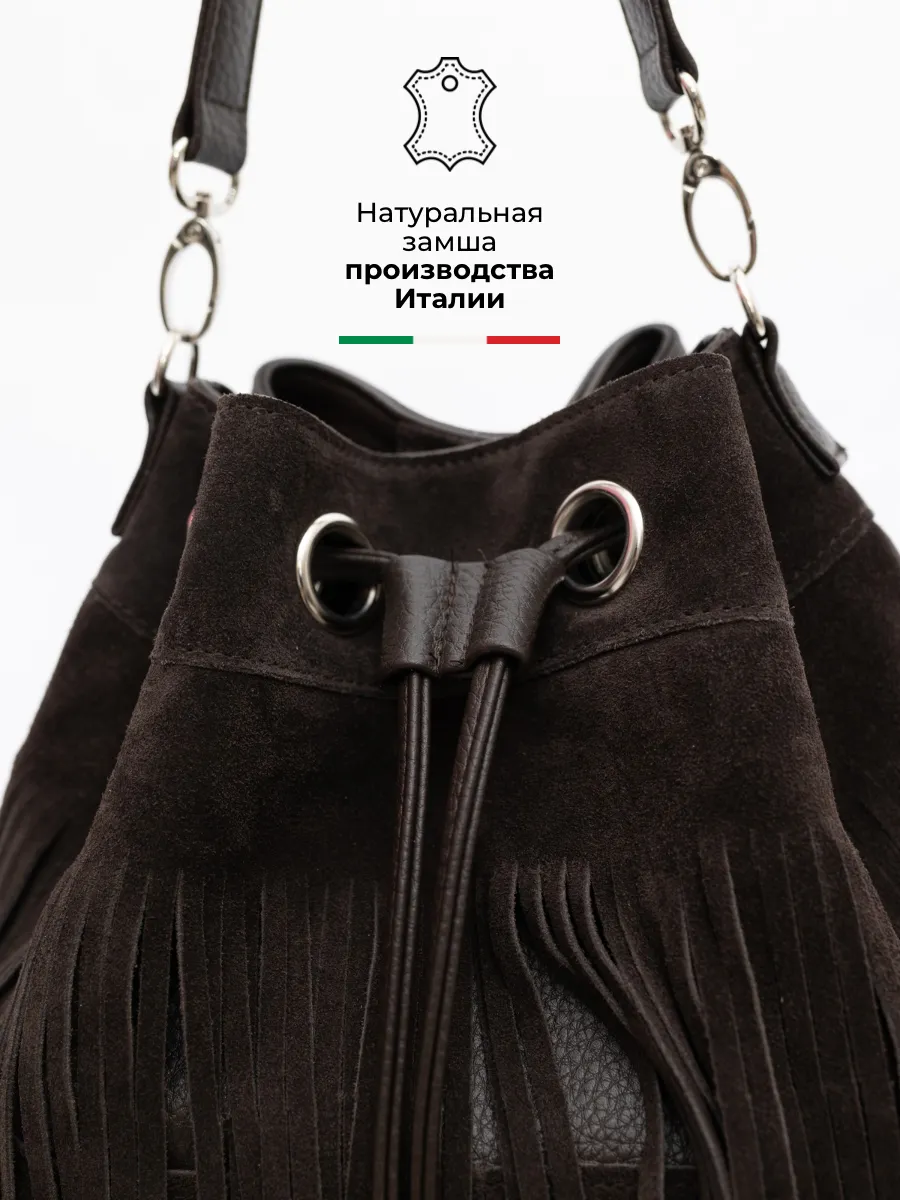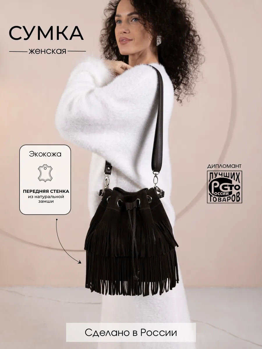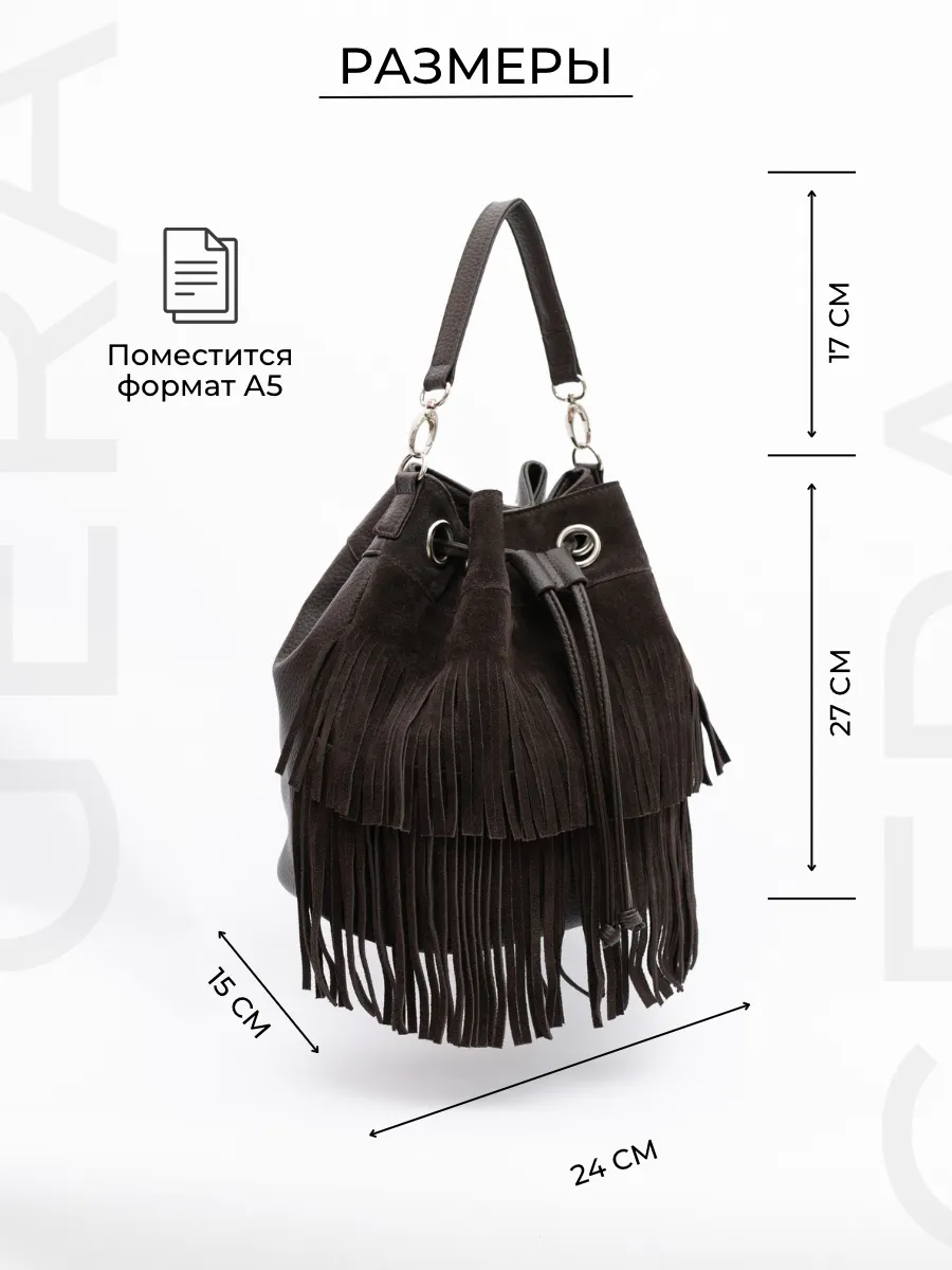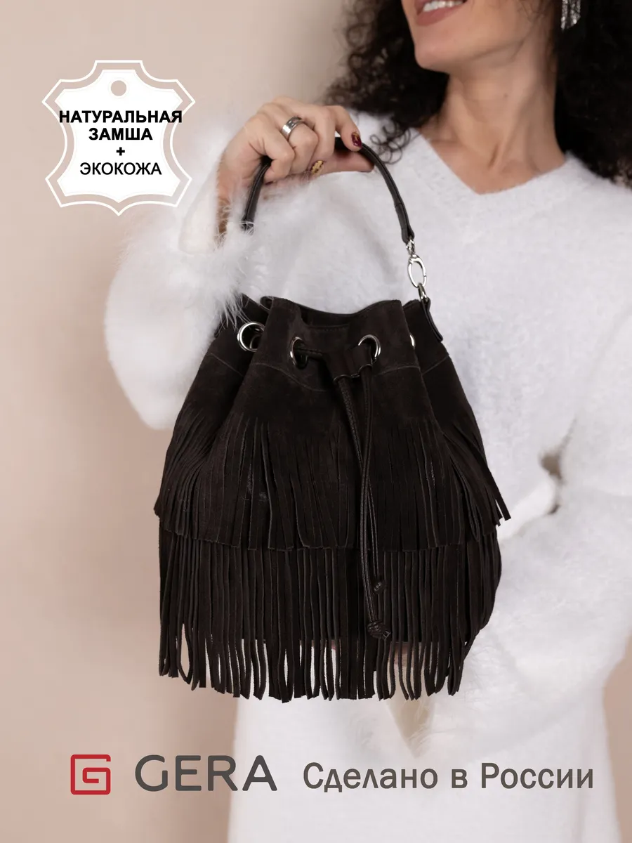 Представляем вам универсальную и стильную женскую сумку через плечо - среднюю классического дизайна на магнитной кнопке и стягивается шнуром. Сумка мешок выполнена из натуральной замши (передняя стенка и бахрома) + задняя стенка сумки и ремни из скусственной кожи отличного качества, которая сохраняет свои первозданные свойства в течение долгого времени, и не уступает по мягкости и внешнему виду натуральной коже. Не очень большая , но вместительная и удобная сумка позволяет вместить все самое необходимое. Кисет можно носить в руках или повесить на плечо. Сумка женская через плечо средняя в стиле бохо практична, идеальна для повседневного ношения, подойдет как деловая или вместительная на работу в офис. Эта вещь станет незаменимым аксессуаром для девушек и женщин в любой ситуации - от повседневных дел до деловых встреч и путешествий. Тоут средняя с двумя ручками для женщин подойдет на каждый день, на прогулку, учебу в колледж школу университет, в офис или на работу. Яркий дизайн делает эту круглую сумку идеальной для прогулок и учебы, а классический стиль будет уместен в офисе и на деловых встречах. Сумочка дамская через плечо также укомплектована отделениями для телефона и других мелочей, что позволяет легко и быстро найти нужный предмет. Не шоппер, но достаточно вместительная. Эта универсальная вещь подходит как для подростков, так и для женщин, которые ценят стиль и комфорт. Так же её можно использовать как дорожную сумку - ручная кладь для путешествий. Торба имеет размеры 24х27х15 см. Внутри сумки кисет 1 отделение с карманоми на молнии и без. Малый ремень высотой 17 см. В комплекте идет длинный регулируемый ремень, максимальная 120 см. На задней стенке карман на молнии 15х12см . Не упустите возможность приобрести эту стильную сумку через плечо от Gera Bags! Прекрасный подарок для любимой мамы или девушки! Женские сумки от бренда Gera Bags - это качество российского производителя по доступной цене!