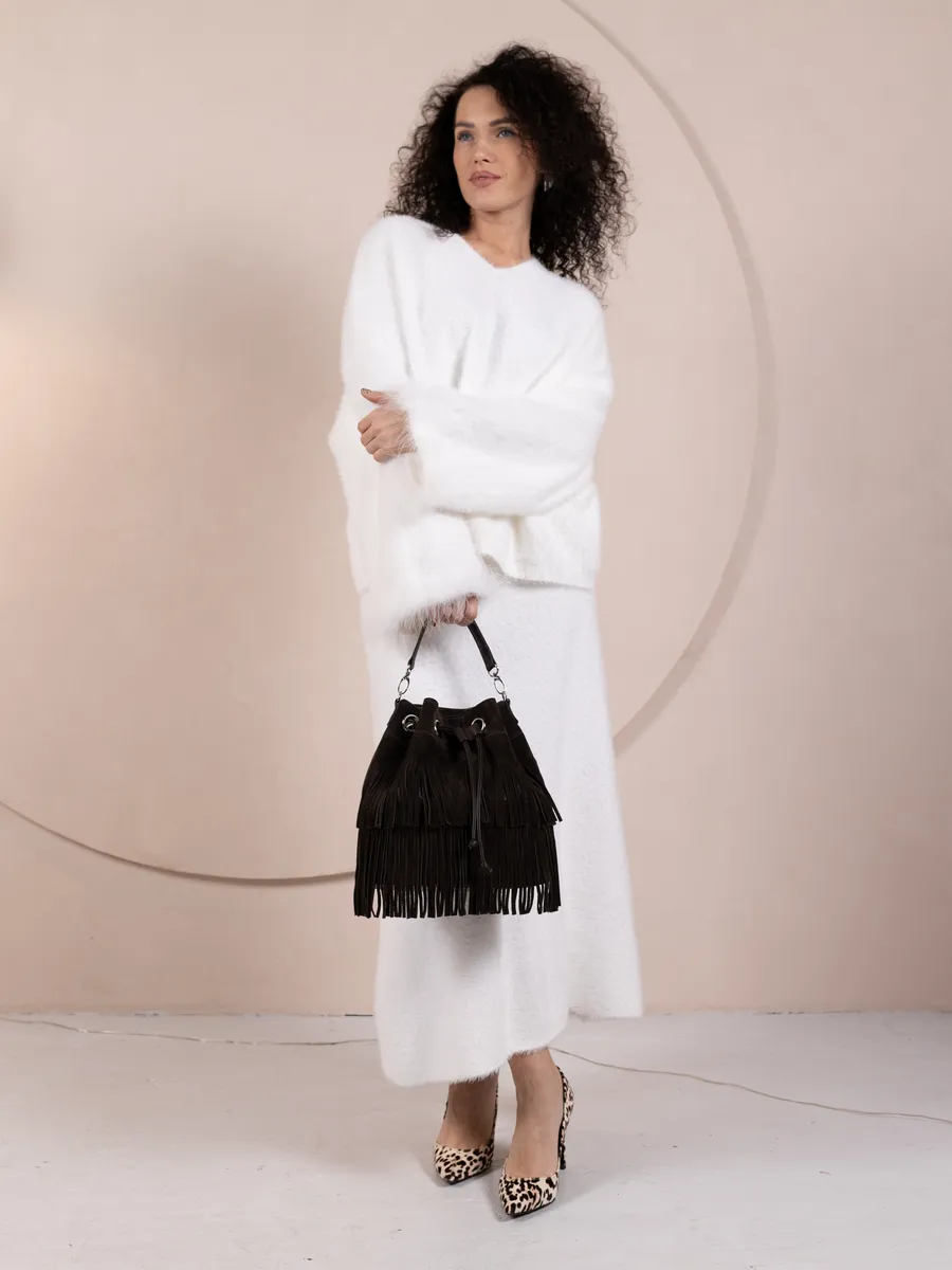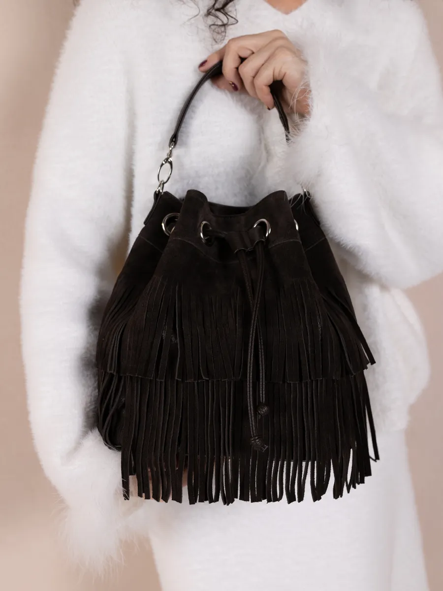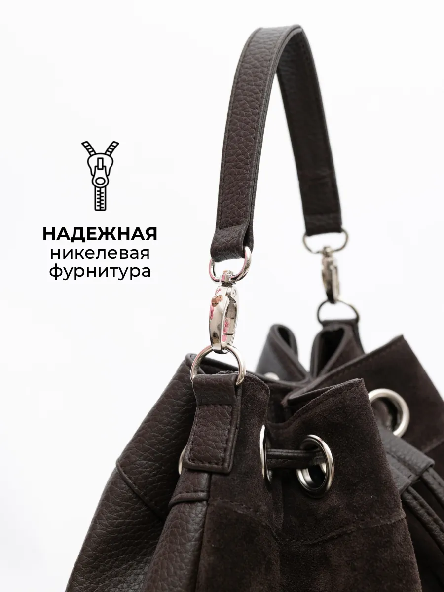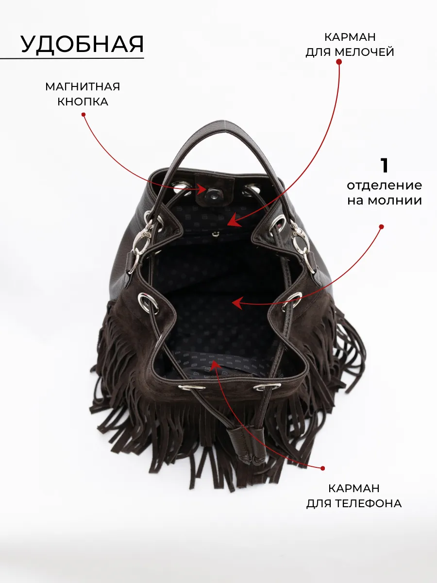 Представляем вам универсальную и стильную женскую сумку через плечо - среднюю классического дизайна на магнитной кнопке и стягивается шнуром. Сумка мешок выполнена из натуральной замши (передняя стенка и бахрома) + задняя стенка сумки и ремни из скусственной кожи отличного качества, которая сохраняет свои первозданные свойства в течение долгого времени, и не уступает по мягкости и внешнему виду натуральной коже. Не очень большая , но вместительная и удобная сумка позволяет вместить все самое необходимое. Кисет можно носить в руках или повесить на плечо. Сумка женская через плечо средняя в стиле бохо практична, идеальна для повседневного ношения, подойдет как деловая или вместительная на работу в офис. Эта вещь станет незаменимым аксессуаром для девушек и женщин в любой ситуации - от повседневных дел до деловых встреч и путешествий. Тоут средняя с двумя ручками для женщин подойдет на каждый день, на прогулку, учебу в колледж школу университет, в офис или на работу. Яркий дизайн делает эту круглую сумку идеальной для прогулок и учебы, а классический стиль будет уместен в офисе и на деловых встречах. Сумочка дамская через плечо также укомплектована отделениями для телефона и других мелочей, что позволяет легко и быстро найти нужный предмет. Не шоппер, но достаточно вместительная. Эта универсальная вещь подходит как для подростков, так и для женщин, которые ценят стиль и комфорт. Так же её можно использовать как дорожную сумку - ручная кладь для путешествий. Торба имеет размеры 24х27х15 см. Внутри сумки кисет 1 отделение с карманоми на молнии и без. Малый ремень высотой 17 см. В комплекте идет длинный регулируемый ремень, максимальная 120 см. На задней стенке карман на молнии 15х12см . Не упустите возможность приобрести эту стильную сумку через плечо от Gera Bags! Прекрасный подарок для любимой мамы или девушки! Женские сумки от бренда Gera Bags - это качество российского производителя по доступной цене!