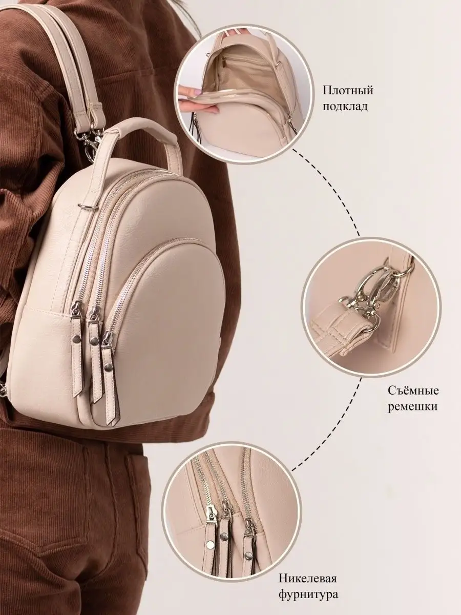 Рюкзак городской GERA Bags выполнен искусственной кожи отличного качества, которая сохраняет свои первозданные свойства в течение долгого времени, отличается мягкостью и приятна на ощупь, не боится резких перепадов температур и морозов. В рюкзаке 2 отделения на металлических молниях и износостойкая подкладка. На передней стенке карман на метал молнии. Карманы для мелочей, один на молнии, второй без. Лямки регулируемые, отстегивающиеся. Качественная фурнитура. Городской рюкзак повседневный оснащен регулируемыми мягкими плечевыми ремнями для долгих комфортных прогулок. Сумка среднего размера, но в то же время позволяет вместить все самое необходимое - документы телефон ключи кошелек и другие ценные вещи. Рюкзак для мам идеально сочетается с платьем, джинсами, брюками, строгим костюмом, пальто и курткой. Можно носить рюкзак за короткую ручку, расположенную сверху, как обычную сумку. Повседневный компактный качественный рюкзак из искусственной кожи для девочек подростков подойдет в школу и для женщин любых возрастов. Рюкзак летний белый кожаный отличный подарок для мамы, жены, девушки, дочери. Его можно носить на тренировки или занятия, брать с собой за покупками. Эту модель можно использовать как спортивный рюкзак для тренировок и утренних пробежек. Носится рюкзак может как через плечо, так и на два плеча, но и за короткую ручку в руках. Особенностью такого рюкзака является то, что он прекрасно подойдет на вечеринку. Классические рюкзаки идеально подходят для пеших прогулок или встреч с друзьями. Другими достоинствами ранца являются вместительность и многофункциональность. Рукзак для города подростковый подойдет как дорожный - ручная кладь в самолёт в поездках.