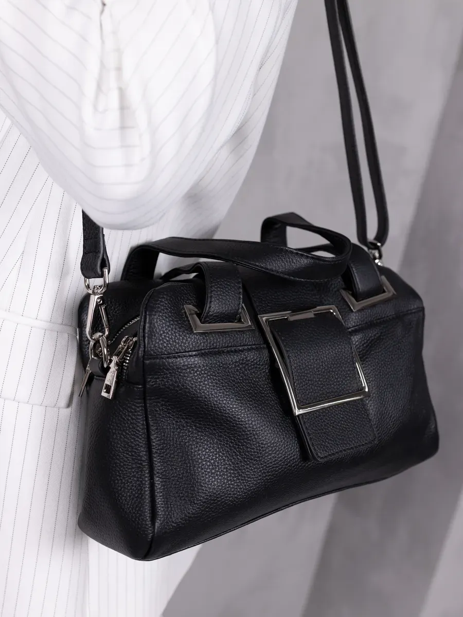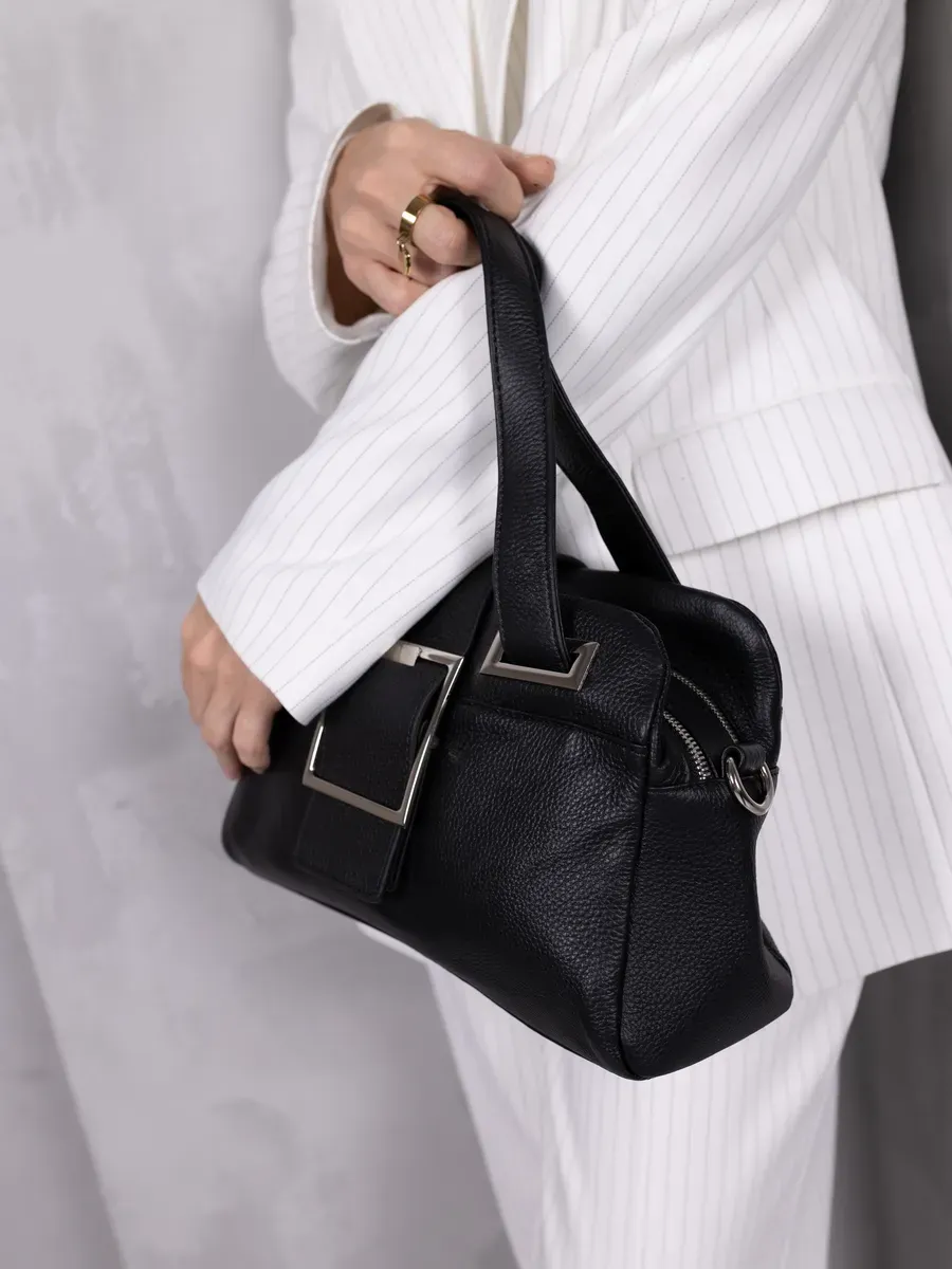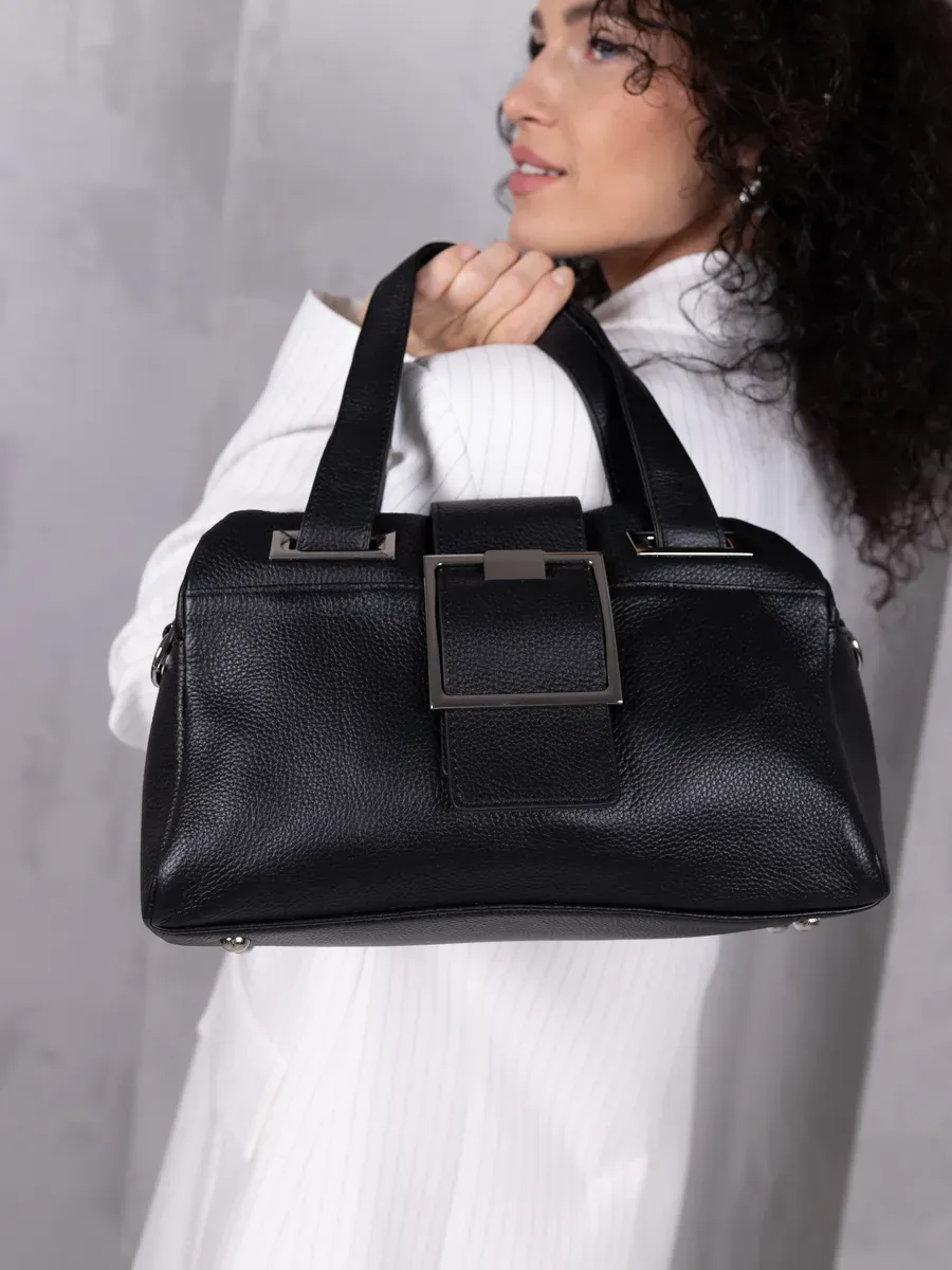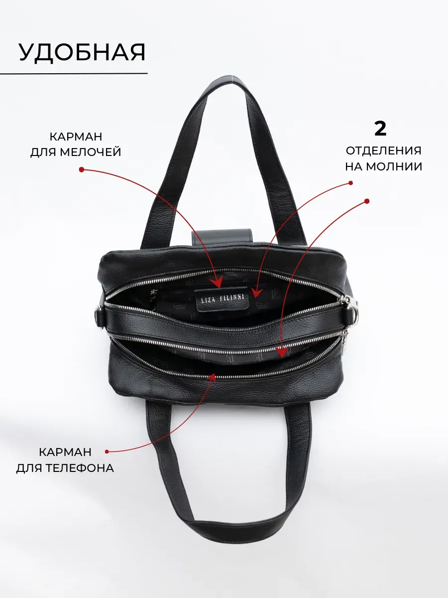 Эта модная сумка изготовлена из натуральной кожи отличного качества, приятна на ощупь. Выдерживает низкие температуры, ей можно пользоваться зимой. Швы выполнены аккуратно, благодаря этому сумочка прослужит долгое время. Металлическая фурнитура цвета серебро не потемнеет. Эта брендовая модель багет с ремнем через плечо позволит Вам выглядеть стильной и элегантной в любой ситуации. Универсальная сумочка отлично сочетается с деловым, офисным повседневным и спортивным стилем. Она не очень большая, но в то же время вместительная, в ней легко будет найти телефон, ключи и кошелек. Великолепно держит форму. Стильный дизайн делает эту сумку багет очень актуальной. Бохо с 2 отделениями также оснащена, для Вашего удобства, внутренними карманами на молнии и без, и внешним карманом по задней стенке на молнии 20х10 см. Сумка маленькая на короткой ручке имеет оптимальный размер: 30 х 19 х 8 см. Пряжка на магнитной кнопке. Высота маленких ручек - 17 см. Съемный наплечный ремень на карабинах легко отрегулировать для комфортной носки с максимальной длиной 130 см. Отправляйтесь на вечеринку, прогулку, в офис или в университет и колледж с этой удобной и стильной сумочкой седло! Будьте в тренде и привлекайте восхищенные взгляды. Она станет прекрасным подарком любимой маме, дочери, девушке. Этот аксессуар для тех, кто выбирает свой уникальный стиль! Женские кожаные сумки от бренда LIZA FILINNI - это качество российского производителя по доступной цене!