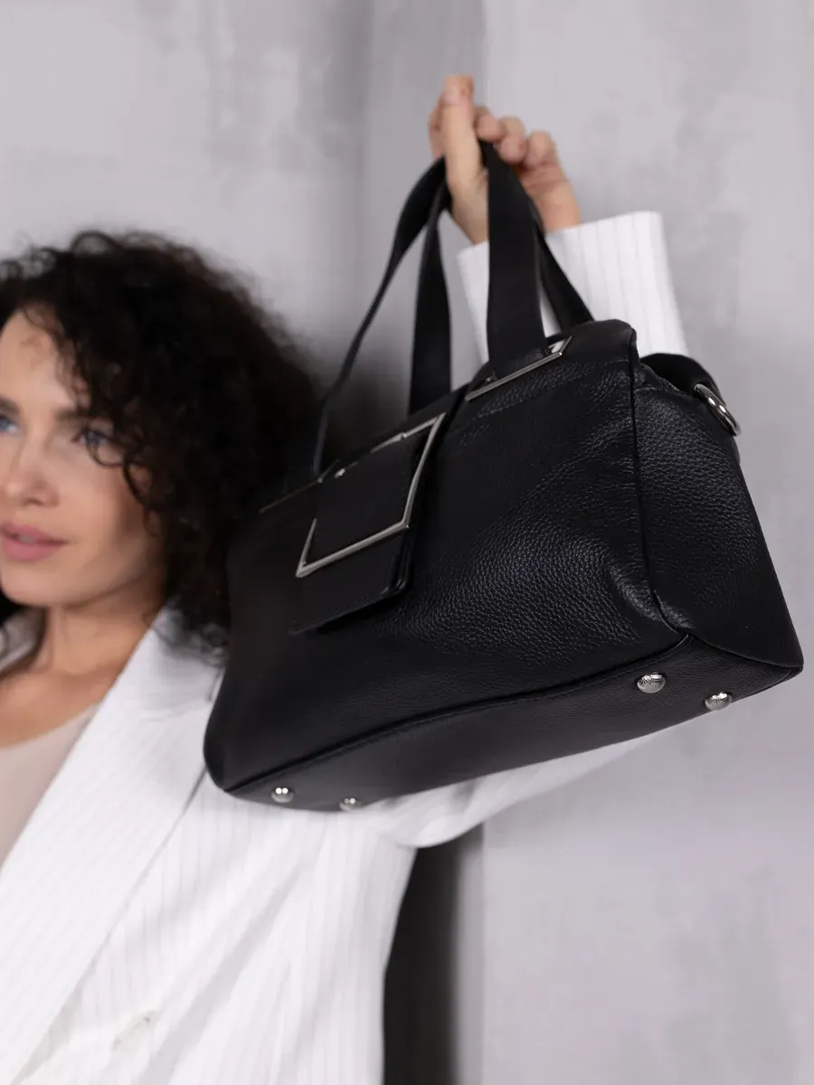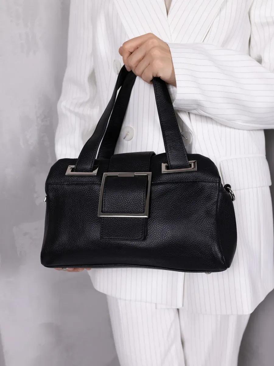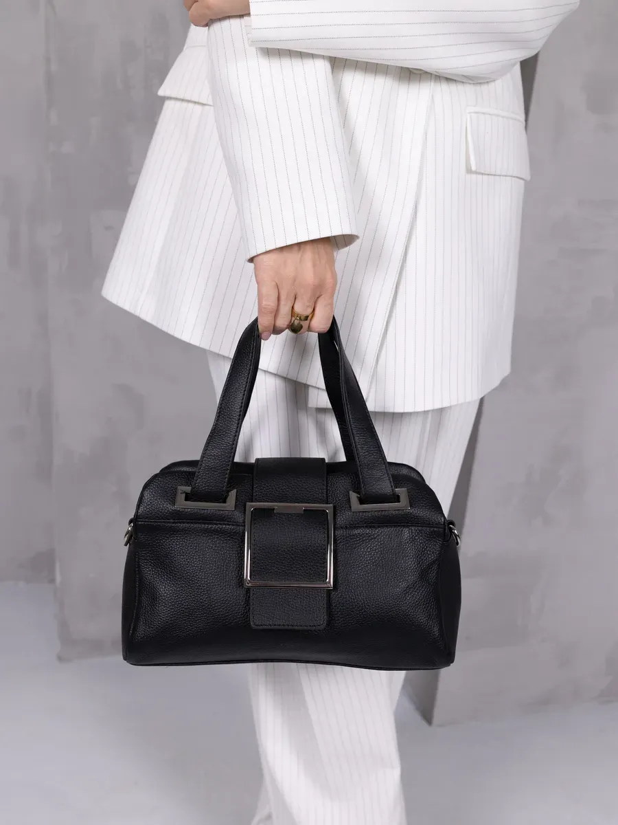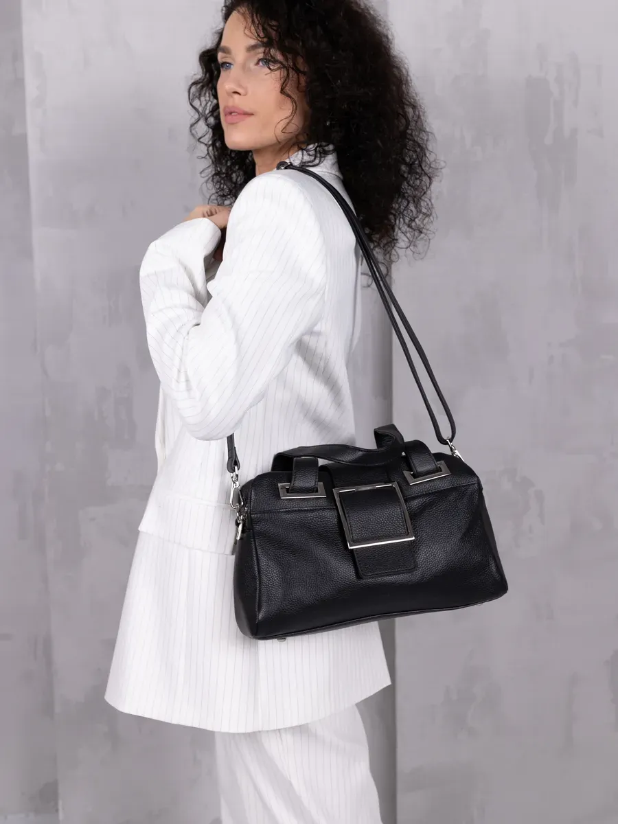 Эта модная сумка изготовлена из натуральной кожи отличного качества, приятна на ощупь. Выдерживает низкие температуры, ей можно пользоваться зимой. Швы выполнены аккуратно, благодаря этому сумочка прослужит долгое время. Металлическая фурнитура цвета серебро не потемнеет. Эта брендовая модель багет с ремнем через плечо позволит Вам выглядеть стильной и элегантной в любой ситуации. Универсальная сумочка отлично сочетается с деловым, офисным повседневным и спортивным стилем. Она не очень большая, но в то же время вместительная, в ней легко будет найти телефон, ключи и кошелек. Великолепно держит форму. Стильный дизайн делает эту сумку багет очень актуальной. Бохо с 2 отделениями также оснащена, для Вашего удобства, внутренними карманами на молнии и без, и внешним карманом по задней стенке на молнии 20х10 см. Сумка маленькая на короткой ручке имеет оптимальный размер: 30 х 19 х 8 см. Пряжка на магнитной кнопке. Высота маленких ручек - 17 см. Съемный наплечный ремень на карабинах легко отрегулировать для комфортной носки с максимальной длиной 130 см. Отправляйтесь на вечеринку, прогулку, в офис или в университет и колледж с этой удобной и стильной сумочкой седло! Будьте в тренде и привлекайте восхищенные взгляды. Она станет прекрасным подарком любимой маме, дочери, девушке. Этот аксессуар для тех, кто выбирает свой уникальный стиль! Женские кожаные сумки от бренда LIZA FILINNI - это качество российского производителя по доступной цене!