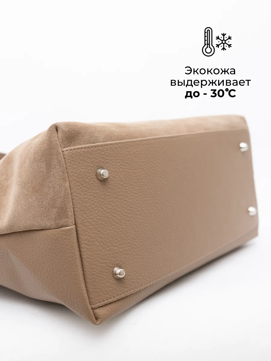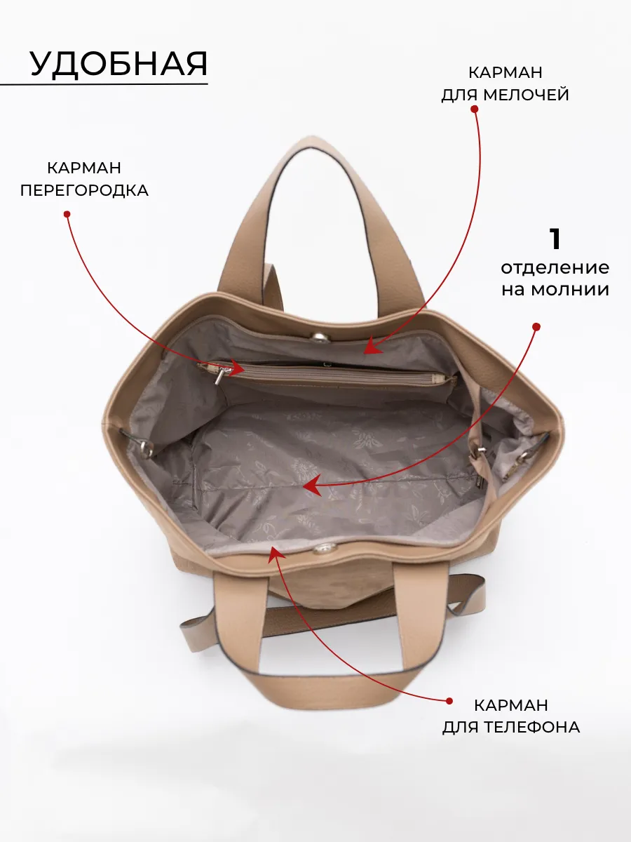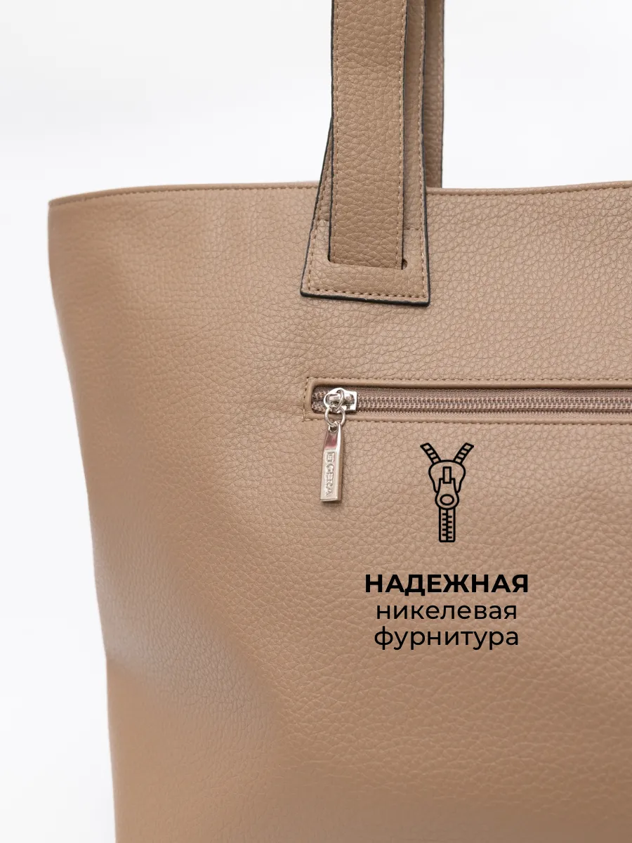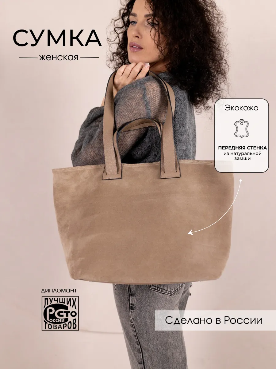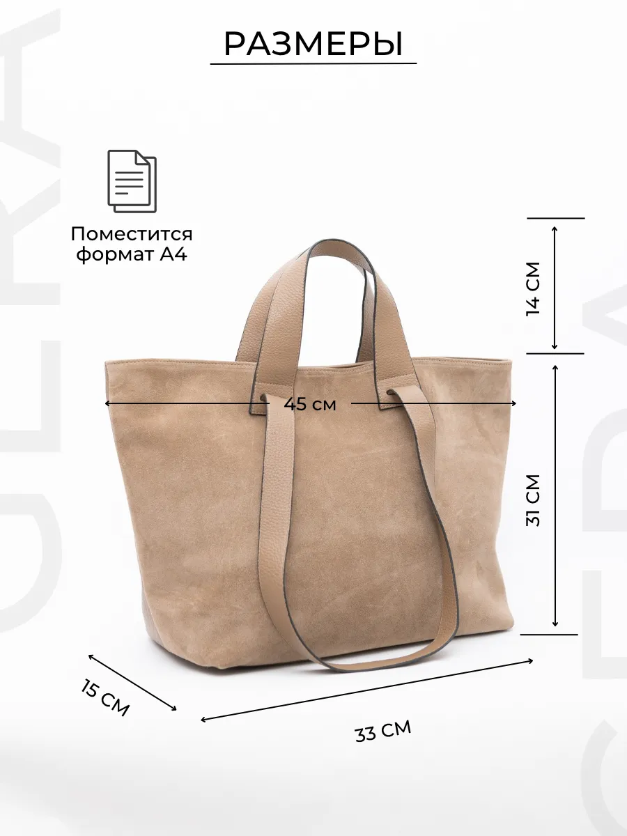 Сумка женская большая и вместительная выполнена из натуральной заши (передняя стенка) и искусственной кожи отличного качества, которая сохраняет свои первозданные свойства в течение долгого времени, что обеспечивает не только эффектный внешний вид, но и высокую износостойкость и не уступает сумкам из натуральной кожи. Эта вещь станет незаменимым аксессуаром для девушек и женщин в любой ситуации - от повседневных дел до деловых встреч и путешествий. Швы прошиты прочной лавсановой нитью, крепкая подкладочная ткань. Большая сумка мешок позволяет удобно упаковать все необходимые вещи - от книг и тетрадей до тренировочной формы для фитнеса. Шоппер на молнии из экокожи для женщин подойдет на каждый день, на прогулку, учебу в колледж школу университет, в офис или на работу. Яркий спортивный дизайн делает эту брендовую модель сумки хобо идеальной для прогулок и учебы, а классический стиль будет уместен в офисе и на деловых встречах. Сумочка дамская также укомплектована отделениями для телефона и других мелочей, что позволяет легко и быстро найти нужный предмет. Шоппер женский можно использовать как авоську для покупок можно носить в руках или повесить на плечо. Вмещает формат А4 и ноутбук. Эта универсальная вещь тоут подходит как для подростков, так и для женщин, которые ценят стиль и комфорт. Если вы ищете качественную и удобную сумку для путешествий на самолете, то большая дорожная сумка идеальный выбор. Сумка через плечо шоппер очень лёгкая и имеет размеры ширина по низу 33, по верху 45, высота 31, глубина 14 см, ручки имеют два положения: короткое, высота 14 см и удлиненное высота 30 см, одно основное отделение на молнии, внешний карман на молнии. Внутри сумки плотная подкладка, карман на молнии для мобильного телефона и карман открытого типа. Прекрасный подарок для любимой мамы или девушки. Женские сумки от бренда Gera - это качество российского производителя по доступной цене!