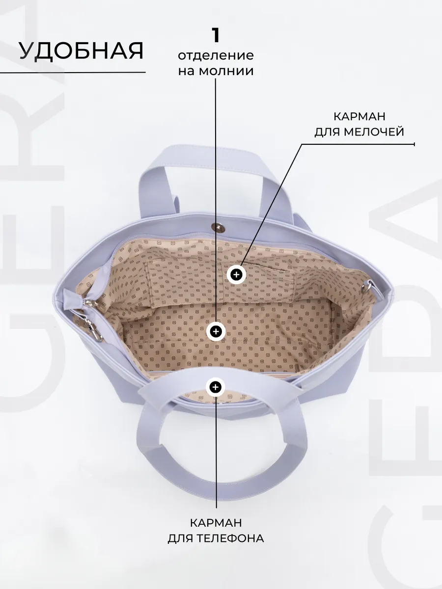 Сумка женская большая и вместительная выполнена искусственной кожи отличного качества, которая сохраняет свои первозданные свойства в течение долгого времени, что обеспечивает не только эффектный внешний вид, но и высокую износостойкость и не уступает сумкам из натуральной кожи. Эта вещь станет незаменимым аксессуаром для девушек и женщин в любой ситуации - от повседневных дел до деловых встреч и путешествий. Швы прошиты прочной лавсановой нитью, крепкая подкладочная ткань. Большая сумка мешок позволяет удобно упаковать все необходимые вещи - от книг и тетрадей до тренировочной формы для фитнеса. Шоппер на молнии из экокожи для женщин подойдет на каждый день, на прогулку, учебу в колледж школу университет, в офис или на работу. Яркий спортивный дизайн делает эту брендовую модель сумки хобо идеальной для прогулок и учебы, а классический стиль будет уместен в офисе и на деловых встречах. Сумочка дамская также укомплектована отделениями для телефона и других мелочей, что позволяет легко и быстро найти нужный предмет. Шоппер женский можно использовать как авоську для покупок можно носить в руках или повесить на плечо. Вмещает формат А4 и ноутбук. Эта универсальная вещь тоут подходит как для подростков, так и для женщин, которые ценят стиль и комфорт. Если вы ищете качественную и удобную сумку для путешествий на самолете, то большая дорожная сумка идеальный выбор. Сумка через плечо шоппер очень лёгкая и имеет размеры ширина по низу 33, по верху 45, высота 31, глубина 14 см, ручки имеют два положения: короткое, высота 14 см и удлиненное высота 30 см, одно основное отделение на молнии, внешний карман на молнии. Внутри сумки плотная подкладка, карман на молнии для мобильного телефона и карман открытого типа. Прекрасный подарок для любимой мамы или девушки. Женские сумки от бренда Gera - это качество российского производителя по доступной цене!
