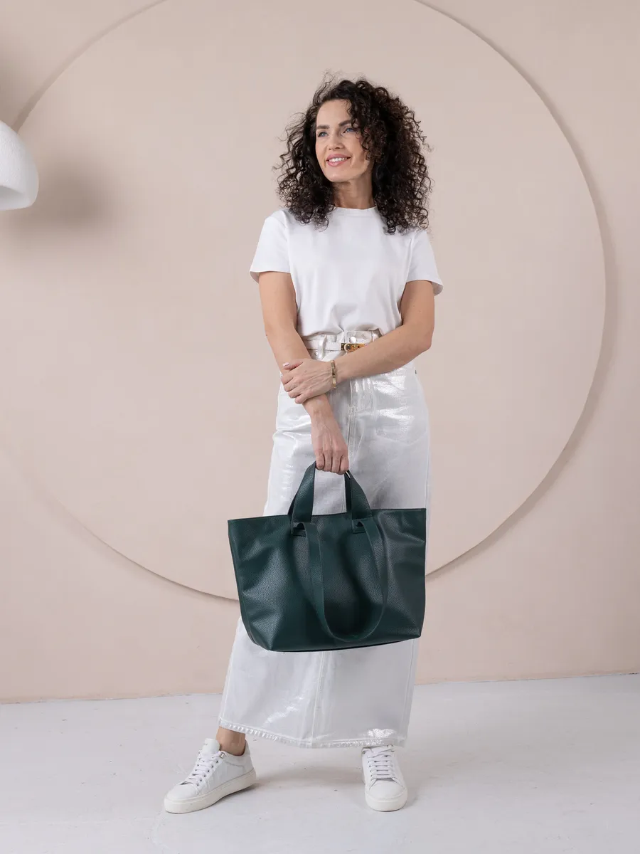 Сумка женская большая и вместительная выполнена искусственной кожи отличного качества, которая сохраняет свои первозданные свойства в течение долгого времени, что обеспечивает не только эффектный внешний вид, но и высокую износостойкость и не уступает сумкам из натуральной кожи. Эта вещь станет незаменимым аксессуаром для девушек и женщин в любой ситуации - от повседневных дел до деловых встреч и путешествий. Швы прошиты прочной лавсановой нитью, крепкая подкладочная ткань. Большая сумка мешок позволяет удобно упаковать все необходимые вещи - от книг и тетрадей до тренировочной формы для фитнеса. Шоппер на молнии из экокожи для женщин подойдет на каждый день, на прогулку, учебу в колледж школу университет, в офис или на работу. Яркий спортивный дизайн делает эту брендовую модель сумки хобо идеальной для прогулок и учебы, а классический стиль будет уместен в офисе и на деловых встречах. Сумочка дамская также укомплектована отделениями для телефона и других мелочей, что позволяет легко и быстро найти нужный предмет. Шоппер женский можно использовать как авоську для покупок можно носить в руках или повесить на плечо. Вмещает формат А4 и ноутбук. Эта универсальная вещь тоут подходит как для подростков, так и для женщин, которые ценят стиль и комфорт. Если вы ищете качественную и удобную сумку для путешествий на самолете, то большая дорожная сумка идеальный выбор. Сумка через плечо шоппер очень лёгкая и имеет размеры ширина по низу 33, по верху 45, высота 31, глубина 14 см, ручки имеют два положения: короткое, высота 14 см и удлиненное высота 30 см, одно основное отделение на молнии, внешний карман на молнии. Внутри сумки плотная подкладка, карман на молнии для мобильного телефона и карман открытого типа. Прекрасный подарок для любимой мамы или девушки. Женские сумки от бренда Gera - это качество российского производителя по доступной цене!