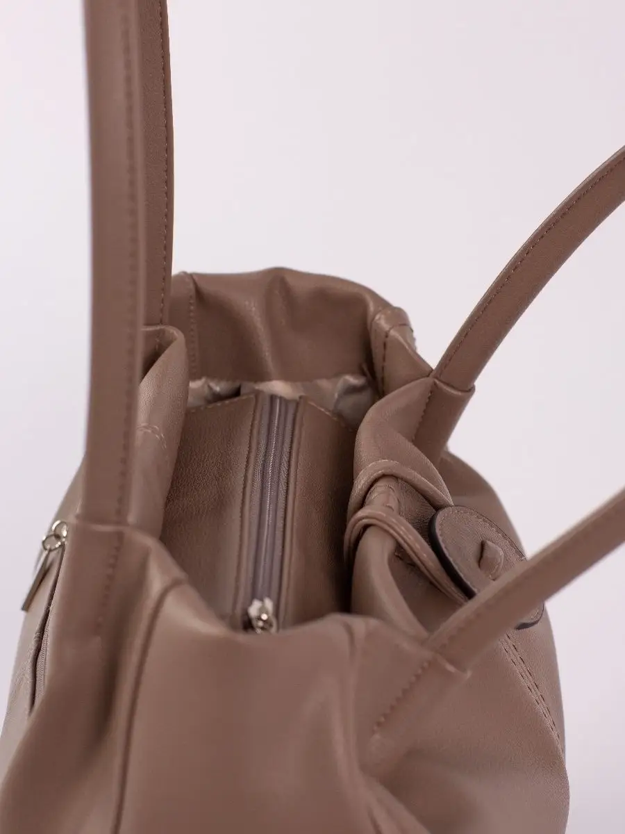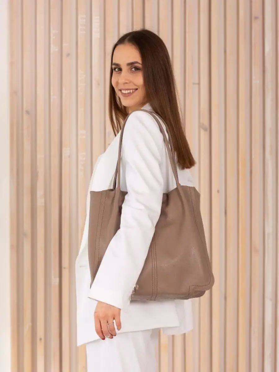 Представляем Вам стильную большую женскую сумку через плечо модели шоппер. Эта вещь станет незаменимым аксессуаром для девушек и женщин в любой ситуации - от повседневных дел до деловых встреч и путешествий. Сумка из экокожи, что обеспечивает не только эффектный внешний вид, но и высокую износостойкость и имеет фактуру натуральной кожи. Большой вместительный мешок, закрывающийся на молнию, позволяет удобно вместить все необходимые вещи - от книг, тетрадей и ноутбука, до кроссовок и тренировочной формы на фитнес. Шоппер на молнии через плечо удобна в ношении благодаря мягким ручкам. Яркий спортивный дизайн делает эту модную сумку идеальной для прогулок и учебы в колледже или университете, а классический стиль будет уместен в офисе и на деловых встречах, вместитс даже ноутбук. Сумочка дамская с одним основным отделением на молнии и большим карманом на молнии посередине, внешний карман на задней стенке закрывается на молнию, в нем можно хранить мелкие вещи и ключи. Внутри сумки хобо плотная подкладка, карман на молнии для мобильного телефона и карман открытого типа. , что позволяет легко и быстро найти нужный предмет. На задней стенке карман на молнии 17х13 см. Шоппер на молнии можно использовать как авоську для покупок, вмещает формат А4. Эта универсальная вещь тоут подходит как для подростков, так и для женщин, которые ценят стиль и комфорт. Размеры сумки тоут 32*35*13 см. Прекрасный подарок на 14 февраля и 8 марта для любимой мамы или девушки! Женские сумки от бренда Gera Bags - это качество российского производителя по доступной цене!