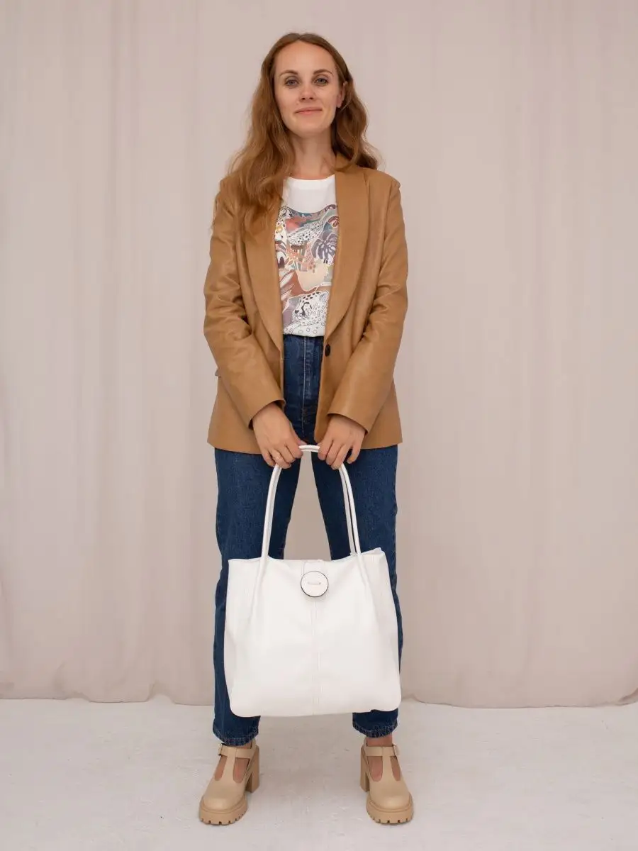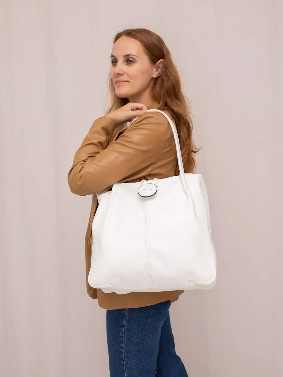 Представляем Вам стильную большую женскую сумку через плечо модели шоппер. Эта вещь станет незаменимым аксессуаром для девушек и женщин в любой ситуации - от повседневных дел до деловых встреч и путешествий. Сумка из экокожи, что обеспечивает не только эффектный внешний вид, но и высокую износостойкость и имеет фактуру натуральной кожи. Большой вместительный мешок, закрывающийся на молнию, позволяет удобно вместить все необходимые вещи - от книг, тетрадей и ноутбука, до кроссовок и тренировочной формы на фитнес. Шоппер на молнии через плечо удобна в ношении благодаря мягким ручкам. Яркий спортивный дизайн делает эту модную сумку идеальной для прогулок и учебы в колледже или университете, а классический стиль будет уместен в офисе и на деловых встречах, вместитс даже ноутбук. Сумочка дамская с одним основным отделением на молнии и большим карманом на молнии посередине, внешний карман на задней стенке закрывается на молнию, в нем можно хранить мелкие вещи и ключи. Внутри сумки хобо плотная подкладка, карман на молнии для мобильного телефона и карман открытого типа. , что позволяет легко и быстро найти нужный предмет. На задней стенке карман на молнии 17х13 см. Шоппер на молнии можно использовать как авоську для покупок, вмещает формат А4. Эта универсальная вещь тоут подходит как для подростков, так и для женщин, которые ценят стиль и комфорт. Размеры сумки тоут 32*35*13 см. Прекрасный подарок на 14 февраля и 8 марта для любимой мамы или девушки! Женские сумки от бренда Gera Bags - это качество российского производителя по доступной цене!