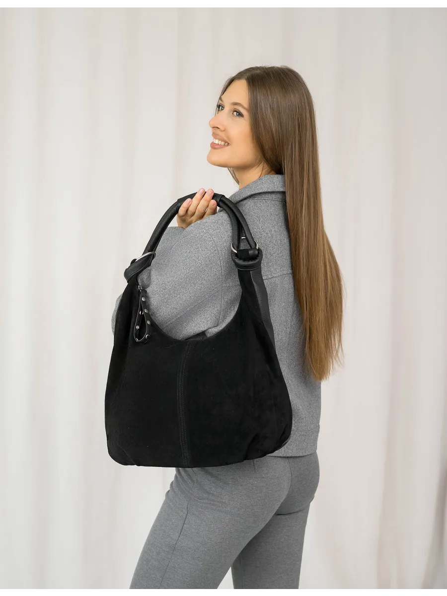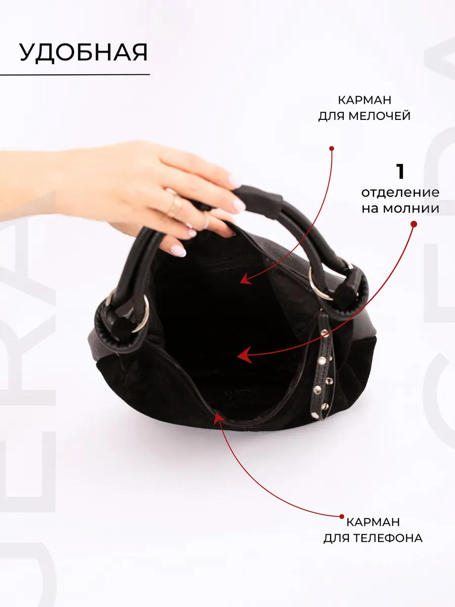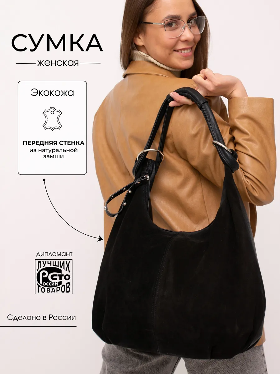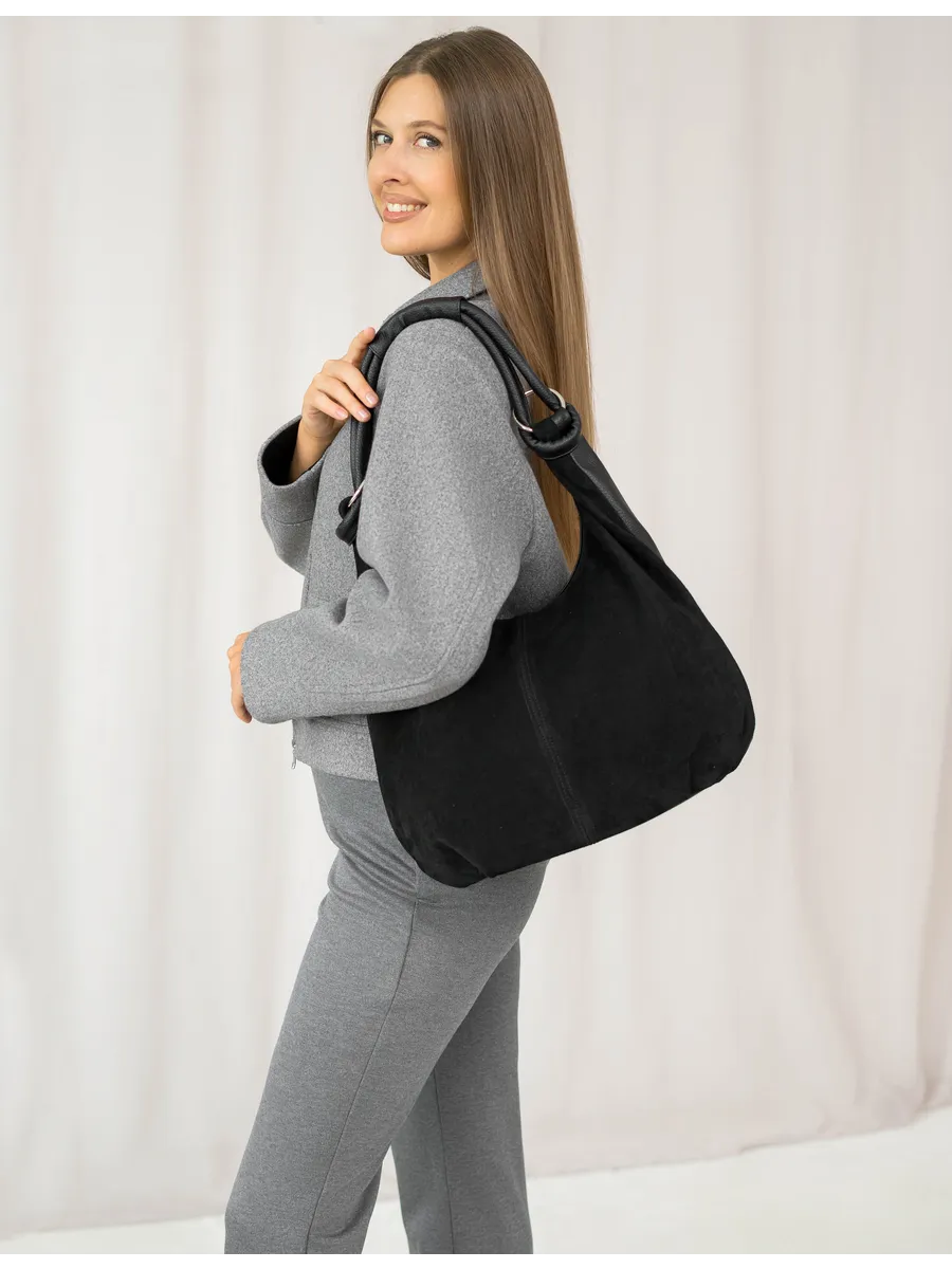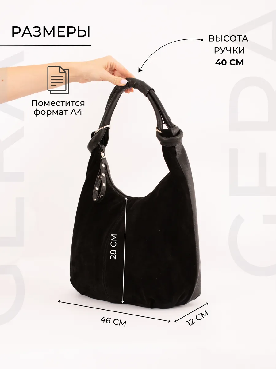 Сумка женская большая и вместительная выполнена натуральной замши (переднаая стенка сумки) и искусственной кожи (остальные детали) отличного качества, которая сохраняет свои первозданные свойства в течение долгого времени, что обеспечивает не только эффектный внешний вид, но и высокую износостойкость и не уступает сумкам из натуральной кожи. Эта вещь станет незаменимым аксессуаром для девушек и женщин в любой ситуации - от повседневных дел до деловых встреч и путешествий. Швы прошиты прочной лавсановой нитью, крепкая подкладочная ткань. Большая сумка мешок позволяет удобно упаковать все необходимые вещи - от книг и тетрадей до тренировочной формы для фитнеса. Шоппер на молнии для женщин подойдет на каждый день, на прогулку, учебу в колледж школу университет, в офис или на работу. Сумка через плечо удобна в ношении благодаря мягким ручкам, который позволяет свободно перемещаться и не ощущать дискомфорта. Яркий спортивный дизайн делает эту стильную модель сумки идеальной для прогулок и учебы, а классический стиль будет уместен в офисе и на деловых встречах. Сумочка дамская с одним основным отделением также укомплектована карманами на молнии и без для телефона и других мелочей, что позволяет легко и быстро найти нужный предмет. Шоппер женский можно использовать как авоську для покупок можно носить в руках или повесить на плечо. Вмещает формат А4. Эта универсальная вещь тоут подходит как для подростков, так и для женщин, которые ценят стиль и комфорт. Если вы ищете качественную и удобную сумку для путешествий на самолете, то большая дорожная сумка идеальный выбор. Сумка через плечо шоппер очень лёгкая и имеет размеры 30*46*12 см. Поместится все необходимое и не будет занимать много места в багаже. Прекрасный подарок на 14 февраля и 8 марта для любимой мамы или девушки. Женские сумки от бренда Gera Bags - это качество российского производителя по доступной цене!