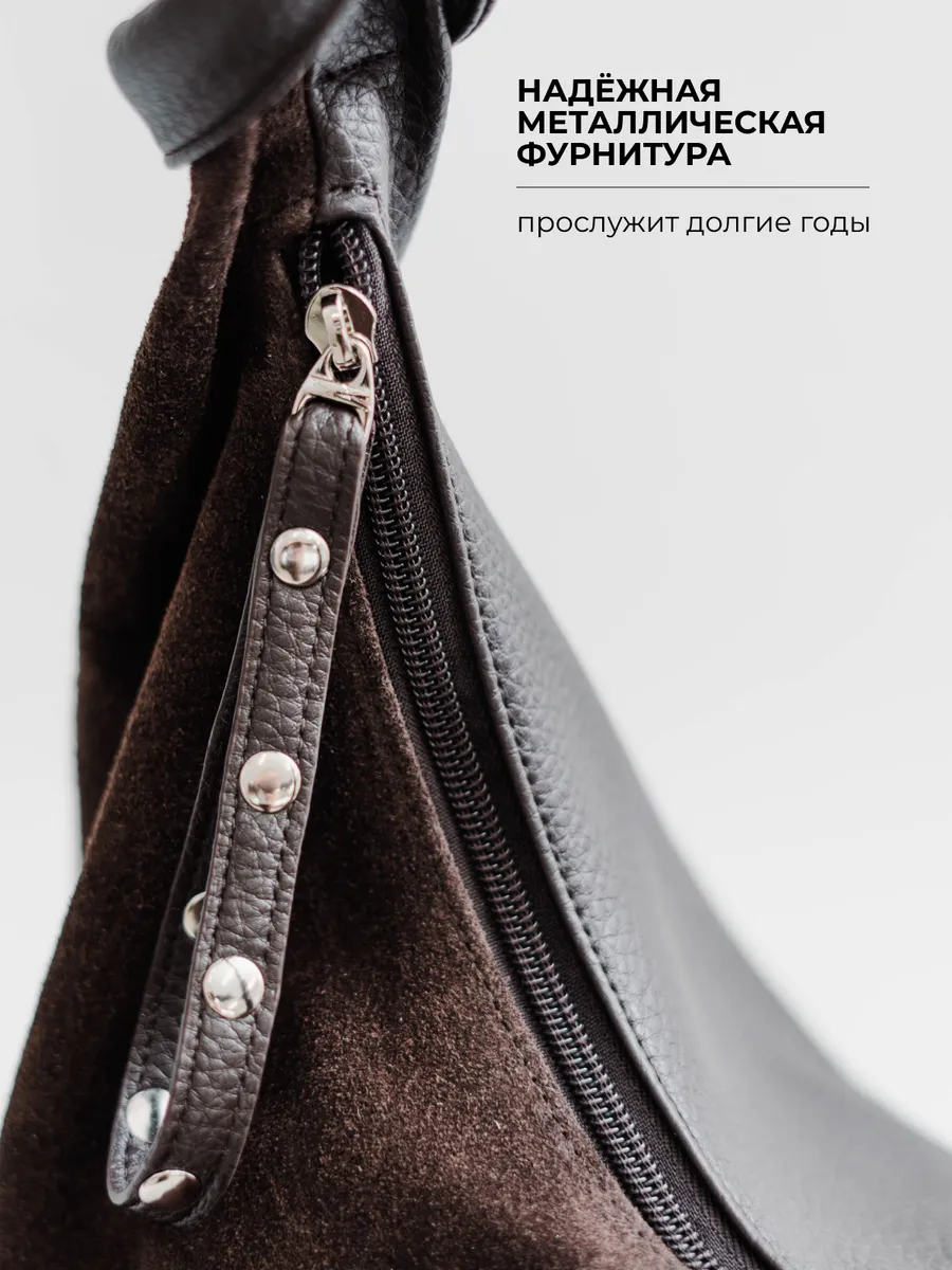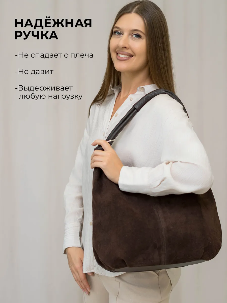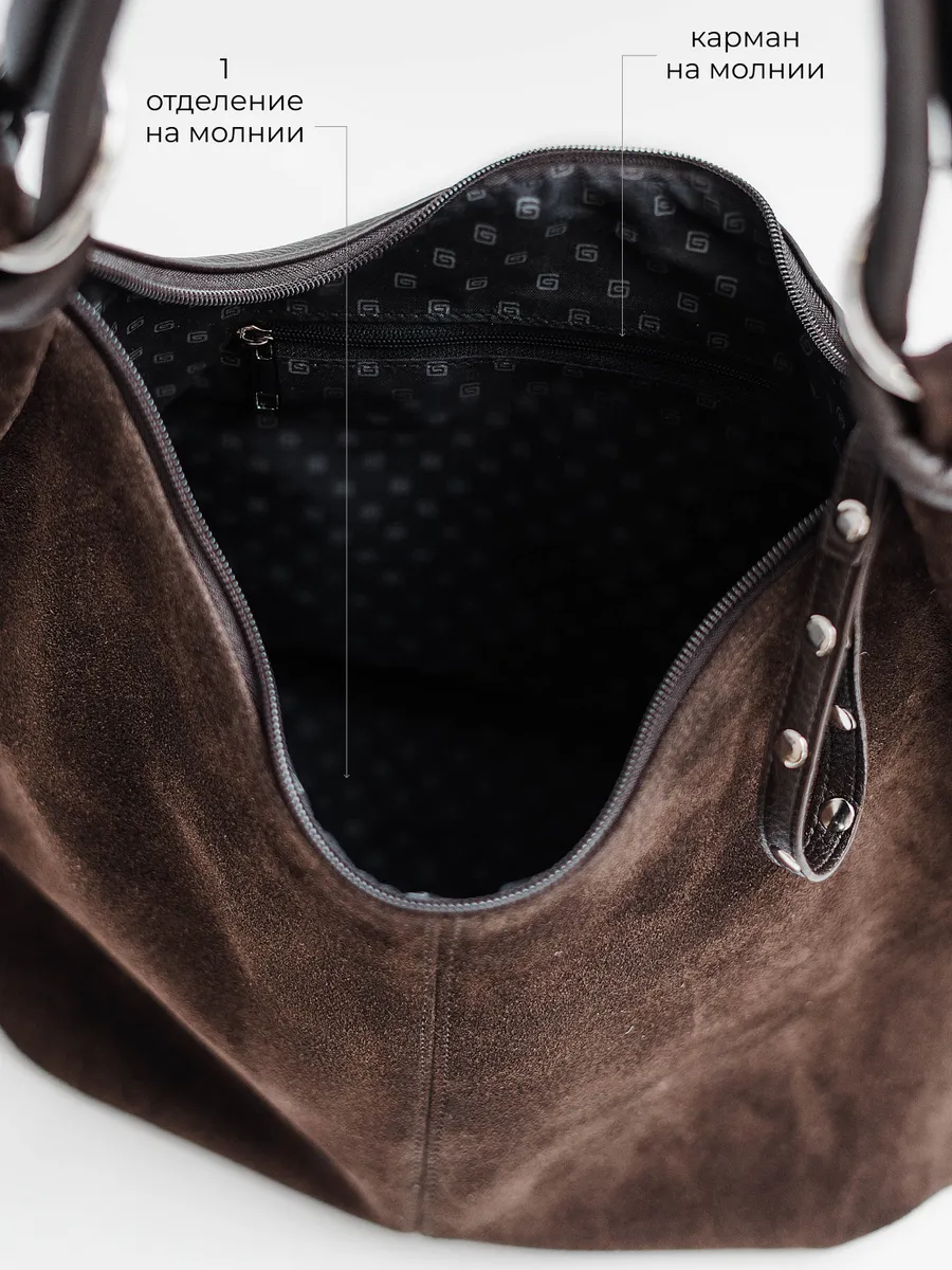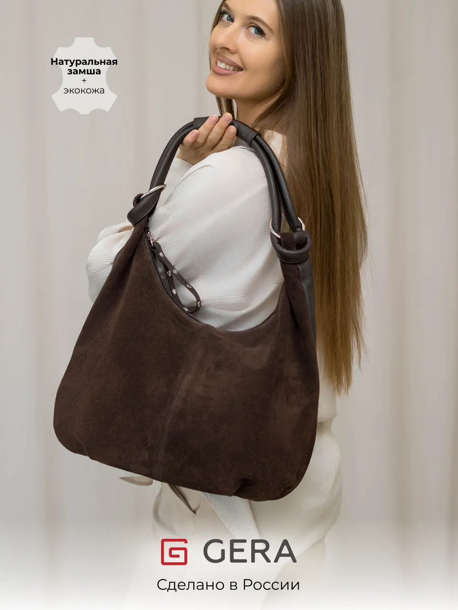 Сумка женская большая и вместительная выполнена натуральной замши (переднаая стенка сумки) и искусственной кожи (остальные детали) отличного качества, которая сохраняет свои первозданные свойства в течение долгого времени, что обеспечивает не только эффектный внешний вид, но и высокую износостойкость и не уступает сумкам из натуральной кожи. Эта вещь станет незаменимым аксессуаром для девушек и женщин в любой ситуации - от повседневных дел до деловых встреч и путешествий. Швы прошиты прочной лавсановой нитью, крепкая подкладочная ткань. Большая сумка мешок позволяет удобно упаковать все необходимые вещи - от книг и тетрадей до тренировочной формы для фитнеса. Шоппер на молнии для женщин подойдет на каждый день, на прогулку, учебу в колледж школу университет, в офис или на работу. Сумка через плечо удобна в ношении благодаря мягким ручкам, который позволяет свободно перемещаться и не ощущать дискомфорта. Яркий спортивный дизайн делает эту стильную модель сумки идеальной для прогулок и учебы, а классический стиль будет уместен в офисе и на деловых встречах. Сумочка дамская с одним основным отделением также укомплектована карманами на молнии и без для телефона и других мелочей, что позволяет легко и быстро найти нужный предмет. Шоппер женский можно использовать как авоську для покупок можно носить в руках или повесить на плечо. Вмещает формат А4. Эта универсальная вещь тоут подходит как для подростков, так и для женщин, которые ценят стиль и комфорт. Если вы ищете качественную и удобную сумку для путешествий на самолете, то большая дорожная сумка идеальный выбор. Сумка через плечо шоппер очень лёгкая и имеет размеры 30*46*12 см. Поместится все необходимое и не будет занимать много места в багаже. Прекрасный подарок на любой праздник и Новый год для любимой мамы или девушки! Женские сумки от бренда Gera Bags - это качество российского производителя по доступной цене!