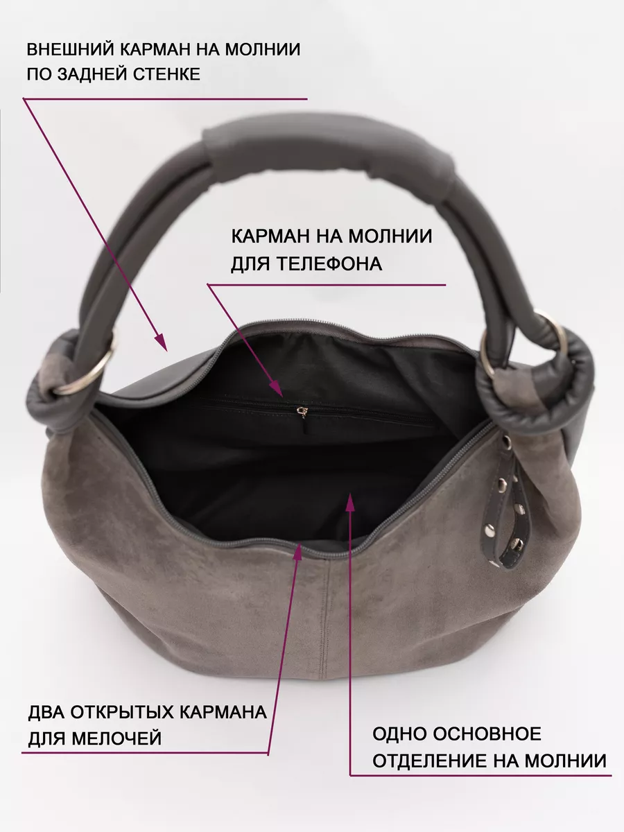 Сумка женская большая и вместительная выполнена натуральной замши (переднаая стенка сумки) и искусственной кожи (остальные детали) отличного качества, которая сохраняет свои первозданные свойства в течение долгого времени, что обеспечивает не только эффектный внешний вид, но и высокую износостойкость и не уступает сумкам из натуральной кожи. Эта вещь станет незаменимым аксессуаром для девушек и женщин в любой ситуации - от повседневных дел до деловых встреч и путешествий. Швы прошиты прочной лавсановой нитью, крепкая подкладочная ткань. Большая сумка мешок позволяет удобно упаковать все необходимые вещи - от книг и тетрадей до тренировочной формы для фитнеса. Шоппер на молнии для женщин подойдет на каждый день, на прогулку, учебу в колледж школу университет, в офис или на работу. Сумка через плечо удобна в ношении благодаря мягким ручкам, который позволяет свободно перемещаться и не ощущать дискомфорта. Яркий спортивный дизайн делает эту стильную модель сумки идеальной для прогулок и учебы, а классический стиль будет уместен в офисе и на деловых встречах. Сумочка дамская с одним основным отделением также укомплектована карманами на молнии и без для телефона и других мелочей, что позволяет легко и быстро найти нужный предмет. Шоппер женский можно использовать как авоську для покупок можно носить в руках или повесить на плечо. Вмещает формат А4. Эта универсальная вещь тоут подходит как для подростков, так и для женщин, которые ценят стиль и комфорт. Если вы ищете качественную и удобную сумку для путешествий на самолете, то большая дорожная сумка идеальный выбор. Сумка через плечо шоппер очень лёгкая и имеет размеры 30*46*12 см. Поместится все необходимое и не будет занимать много места в багаже. Прекрасный подарок на 14 февраля и 8 марта для любимой мамы или девушки. Женские сумки от бренда Gera Bags - это качество российского производителя по доступной цене!
