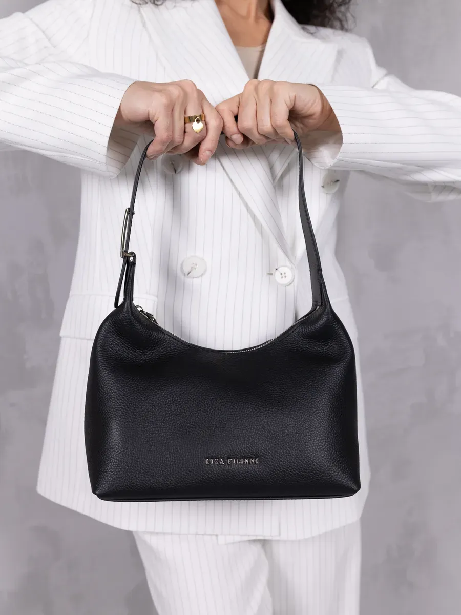 Эта модная сумка изготовлена из натуральной кожи отличного качества, приятна на ощупь. Выдерживает низкие температуры, ей можно пользоваться зимой. Швы выполнены аккуратно, благодаря этому сумочка прослужит долгое время. Металлическая фурнитура цвета серебро не потемнеет. Эта брендовая модель полукруг с ремнем через плечо позволит Вам выглядеть стильной и элегантной в любой ситуации. Универсальная лодочка отлично сочетается с деловым, офисным повседневным и спортивным стилем. Она не очень большая, но в то же время вместительная, в ней легко будет найти телефон, ключи и кошелек. Великолепно держит жесткую форму. Стильный дизайн делает эту сумку багет очень актуальной. Бохо с одноним отделением на молнии, также оснащена, для Вашего удобства, внутренними карманами на молнии и без, и внешним карманом по задней стенке на кнопке глубиной 10 см. Сумка маленькая на короткой ручке имеет оптимальный размер: 25,5 х 16 х 13 см. Наплечный ремень легко отрегулировать для комфортной носки. Отправляйтесь на вечеринку, прогулку, в офис или в университет и колледж с этой удобной и стильной сумочкой седло! Будьте в тренде и привлекайте восхищенные взгляды. Она станет прекрасным подарком любимой маме, дочери, девушке. Этот аксессуар для тех, кто выбирает свой уникальный стиль! Женские кожаные сумки от бренда LIZA FILINNI Bags - это качество российского производителя по доступной цене!