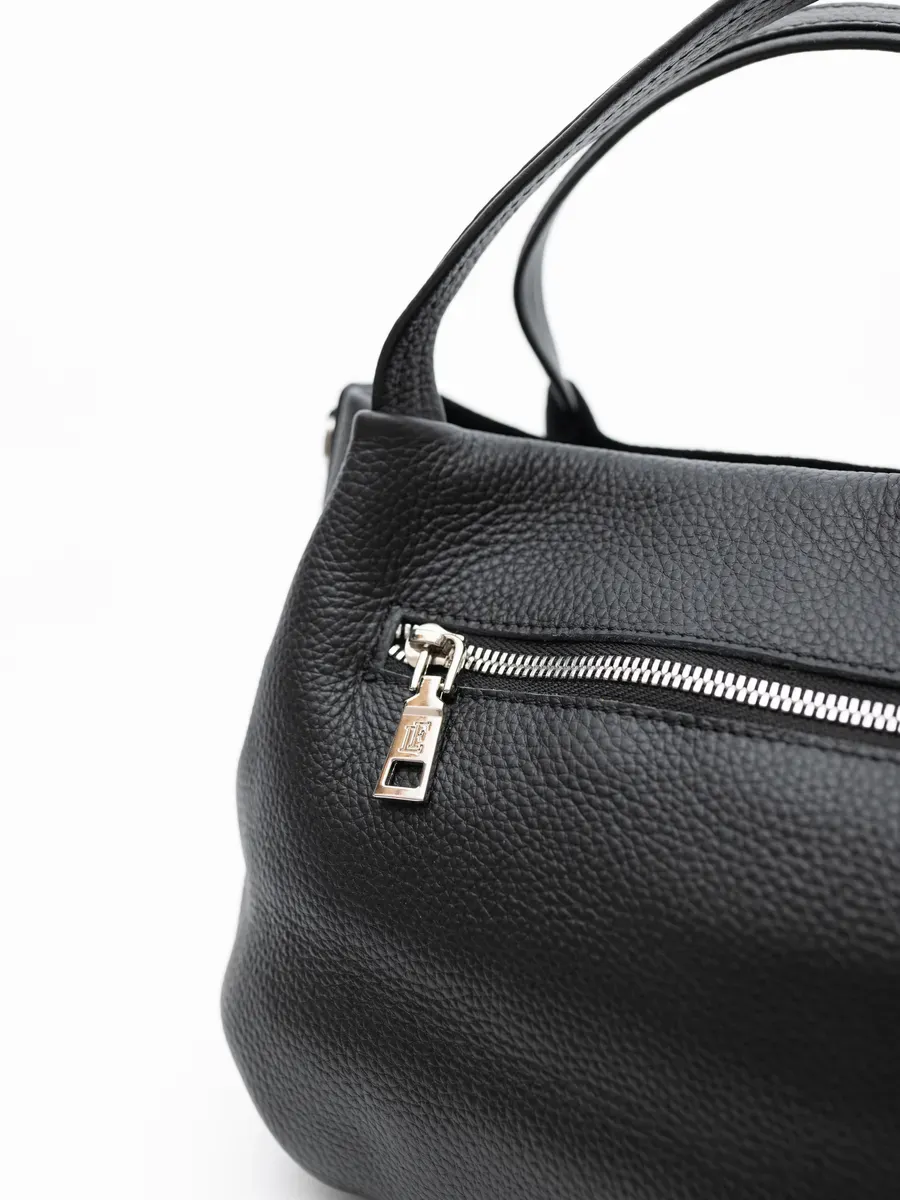Выбираете стильную и удобную сумку, которая станет базовой в гардеробе? Тогда Вам понравится эта вместительная и универсальная модель. Аксессуар сшит из мягкой и плотной натуральной кожи с матовой фактурой. Изнутри он отделан прочной текстильной подкладкой. Красивая дамская сумочка премиум – качества имеет одно отделение на металлической молнии, внутри карманы для мелочей на молнии и без, На задней стенке карман на молнии 17,5х14 см, По бокам карманы на метал молнии 22Х17 см. Объемная сумка прямоугольной формы с внутренними кармашками имеет размерширина-42, высота -27 см, глубина -13 см. Дополнительный наплечный ремень 120 см позволяет носить шоппер на плече. Модель имеет оптимальный средний размер, благодаря чему вмещает книги и тетради. Это отличный выбор, чтобы ходить на работу или учебу. Модный аксессуар дополнит неформальные повседневные и сдержанные деловые образы. Его удобно брать с собой на прогулки или на шопинг. Элегантная сумочка подойдет взрослым женщинам и молодым девушкам. Она отлично впишется в трендовый молодежный стиль кэжуал и понравится девочкам – подросткам. Сумка из натуральной кожи отличается актуальным дизайном, высоким качеством пошива и фурнитуры. Он украсит много образов на каждый день или на выход. Это хороший выбор для ежедневных походов в офис или университет. Модель вместит много нужных предметов и мелочей: от ключей и тетрадей, до телефона и планшета. С ней можно ходить на занятия в университет или колледж. Стильный аксессуар можно приобрести в качестве подарка любимой маме или бабушке. Из коллекции бренда вы можете выбрать сумки классического черного и модного кофейного цвета. У нас есть акции и распродажи, вы можете купить наши товары в подарок со скидкой!