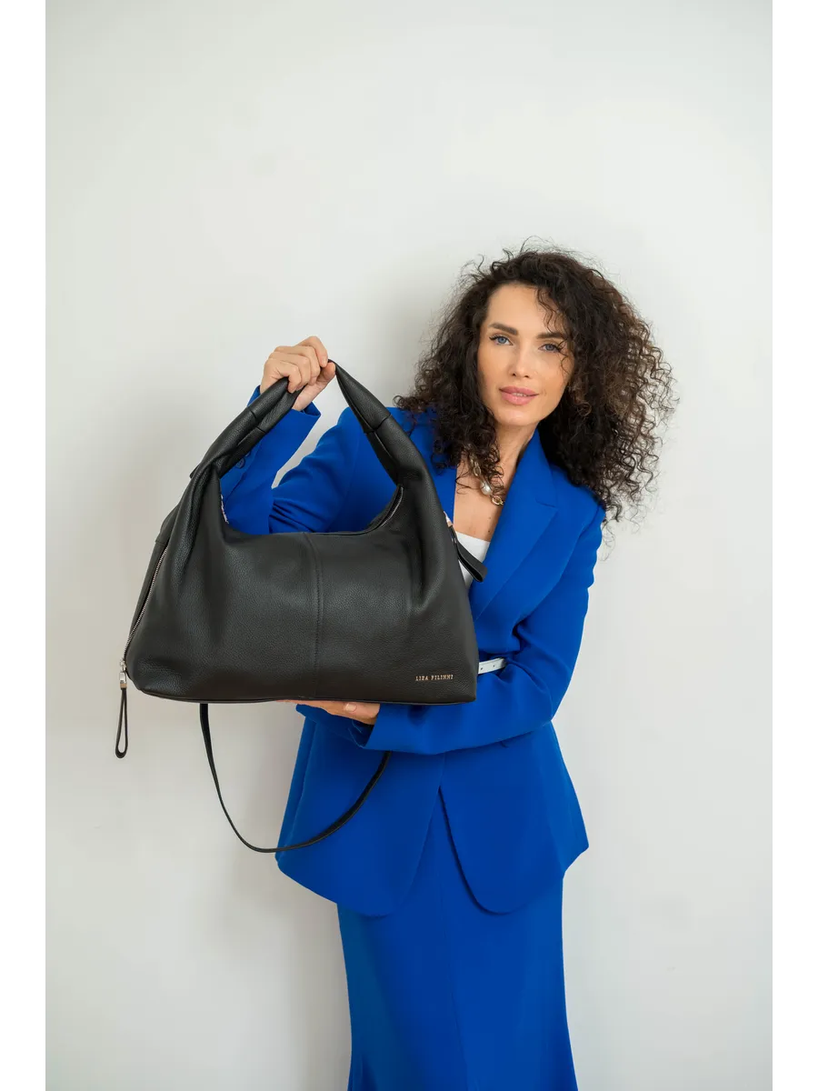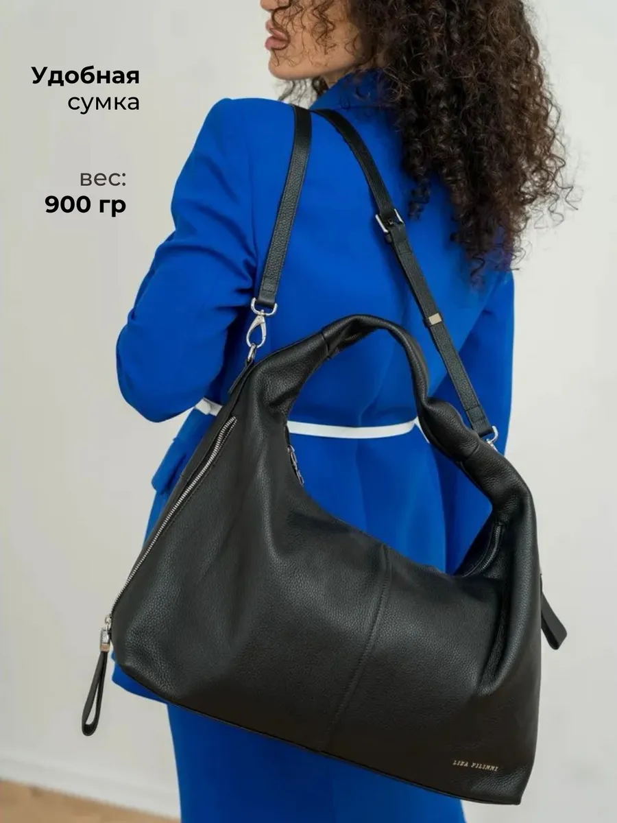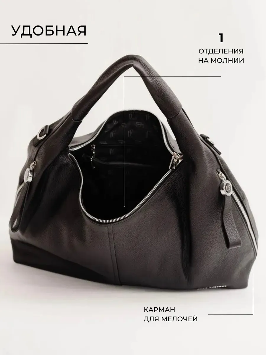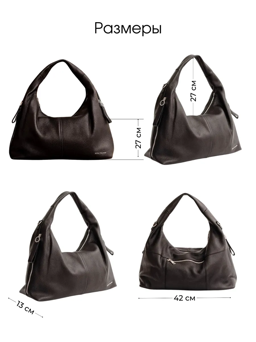 Выбираете стильную и удобную сумку, которая станет базовой в гардеробе? Тогда Вам понравится эта вместительная и универсальная модель. Аксессуар сшит из мягкой и плотной натуральной кожи с матовой фактурой. Изнутри он отделан прочной текстильной подкладкой. Красивая дамская сумочка премиум – качества имеет одно отделение на металлической молнии, внутри карманы для мелочей на молнии и без, На задней стенке карман на молнии 17,5х14 см, По бокам карманы на метал молнии 22Х17 см. Объемная сумка прямоугольной формы с внутренними кармашками имеет размерширина-42, высота -27 см, глубина -13 см. Дополнительный наплечный ремень 120 см позволяет носить шоппер на плече. Модель имеет оптимальный средний размер, благодаря чему вмещает книги и тетради. Это отличный выбор, чтобы ходить на работу или учебу. Модный аксессуар дополнит неформальные повседневные и сдержанные деловые образы. Его удобно брать с собой на прогулки или на шопинг. Элегантная сумочка подойдет взрослым женщинам и молодым девушкам. Она отлично впишется в трендовый молодежный стиль кэжуал и понравится девочкам – подросткам. Сумка из натуральной кожи отличается актуальным дизайном, высоким качеством пошива и фурнитуры. Он украсит много образов на каждый день или на выход. Это хороший выбор для ежедневных походов в офис или университет. Модель вместит много нужных предметов и мелочей: от ключей и тетрадей, до телефона и планшета. С ней можно ходить на занятия в университет или колледж. Стильный аксессуар можно приобрести в качестве подарка любимой маме или бабушке. Из коллекции бренда вы можете выбрать сумки классического черного и модного кофейного цвета. У нас есть акции и распродажи, вы можете купить наши товары в подарок со скидкой!