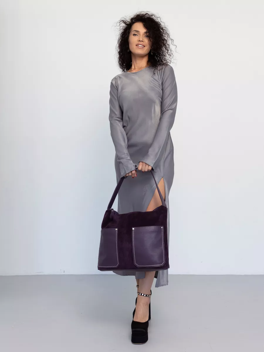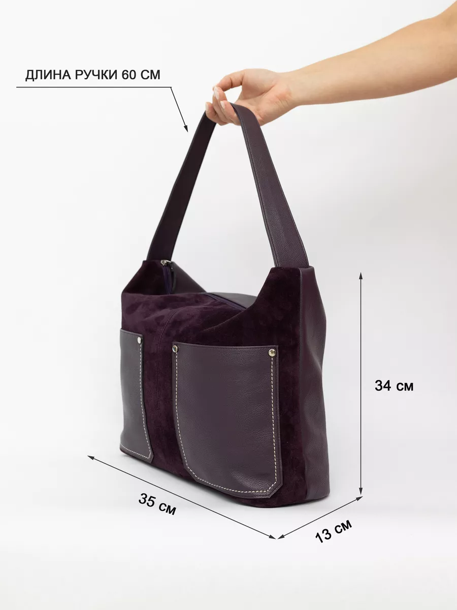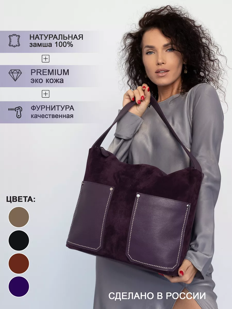 Представляем вам универсальную и стильную женскую сумку через плечо шоппер. Эта вещь станет незаменимым аксессуаром для девушек и женщин в любой ситуации - от повседневных дел до деловых встреч и путешествий. Сумка выполнена из натуральной замши и экокожи, что обеспечивает не только эффектный внешний вид, но и высокую износостойкость, не уступая сумкам из натуральной кожи. Большой вместительный мешок, закрывающийся на молнию, позволяет удобно вместить все необходимые вещи - от книг и тетрадей, до кроссовок и тренировочной формы на фитнес. Хобо через плечо удобна в ношении благодаря мягкой ручке длиной 60 см. Яркий спортивный дизайн делает эту сумку идеальной для прогулок и учебы в колледже или университете, а классический стиль будет уместен в офисе и на деловых встречах. Сумочка дамская с одним основным отделением также укомплектована карманами для телефона и других мелочей, что позволяет легко и быстро найти нужный предмет. Шоппер на молнии можно использовать как авоську для покупок, вмещает формат А4. Размеры сумки тоут 35х34х13 см. Прекрасный подарок на 14 февраля и 8 марта для любимой мамы или девушки!