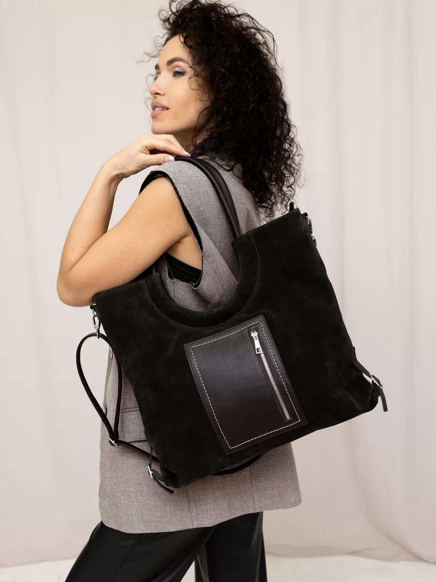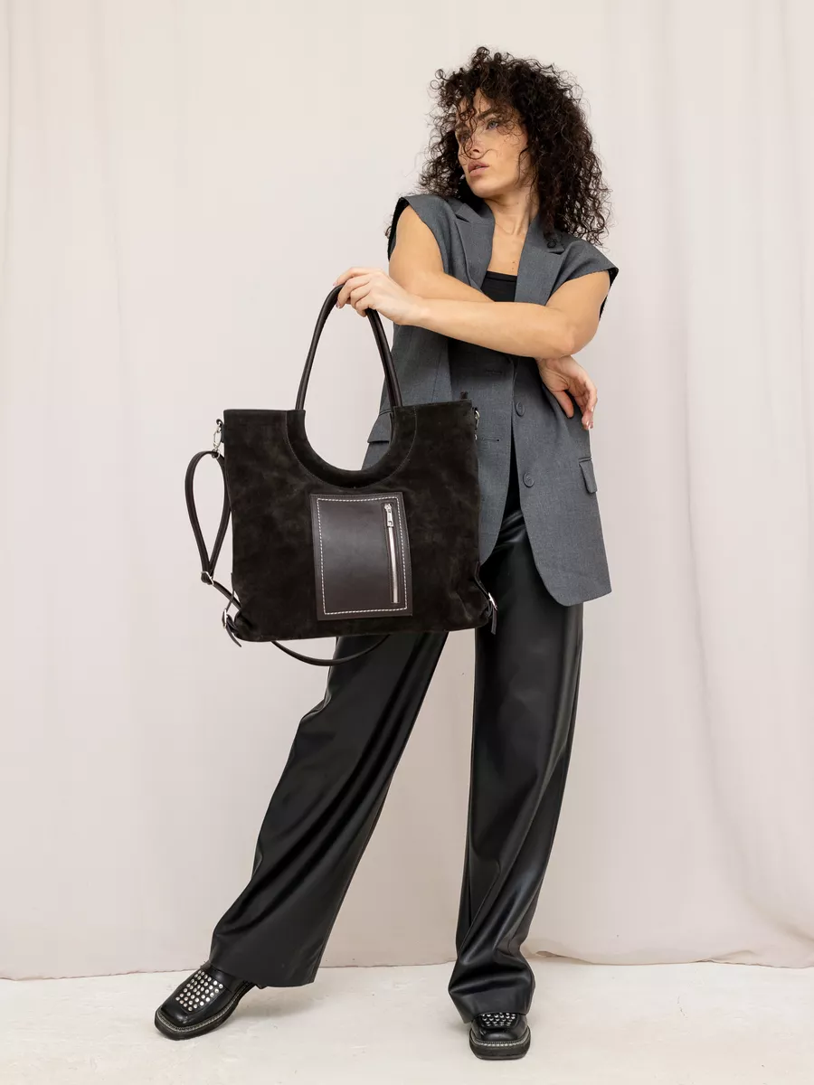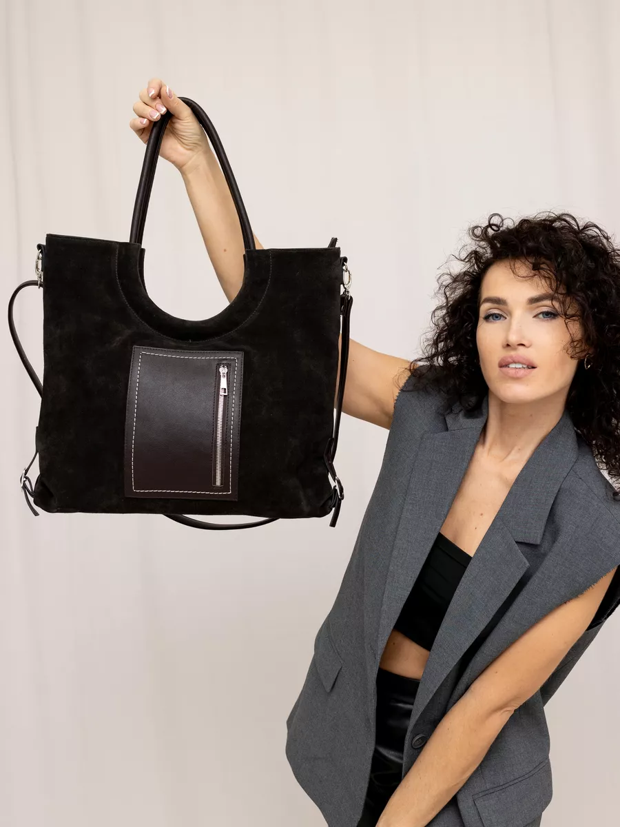 Представляем вам универсальную и стильную женскую сумку через плечо шоппер. Эта модная вещь станет незаменимым аксессуаром для девушек и женщин в любой ситуации - от повседневных дел до деловых встреч и путешествий. Сумка выполнена из натуральной замши и экокожи, что обеспечивает не только эффектный внешний вид, но и высокую износостойкость, не уступая сумкам из натуральной кожи. Большой вместительный мешок, закрывающийся на молнию, позволяет удобно вместить все необходимые вещи - от книг и тетрадей, до кроссовок и тренировочной формы на фитнес. Хобо через плечо удобна в ношении благодаря регулируемомо съёмному ремню длиной 120 см. Яркий спортивный дизайн делает эту модную сумку идеальной для прогулок и учебы в колледже или университете, а классический стиль будет уместен в офисе и на деловых встречах. Сумочка дамская с одним основным отделением и двумя ручками также укомплектована карманами для телефона и других мелочей, что позволяет легко и быстро найти нужный предмет. Шоппер на молнии можно использовать как авоську для покупок, вмещает формат А4. Размеры сумки тоут 40х38х7 см. Прекрасный подарок на любой праздник и Новый год для любимой мамы или девушки!