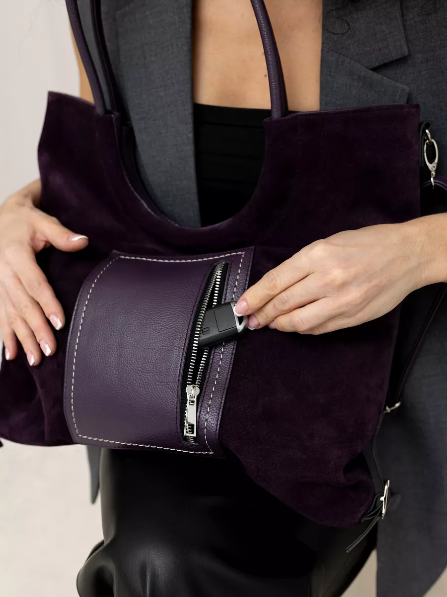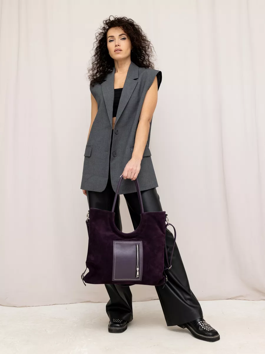Представляем вам универсальную и стильную женскую сумку через плечо шоппер. Эта вещь станет незаменимым аксессуаром для девушек и женщин в любой ситуации - от повседневных дел до деловых встреч и путешествий. Сумка выполнена из натуральной замши и экокожи, что обеспечивает не только эффектный внешний вид, но и высокую износостойкость, не уступая сумкам из натуральной кожи. Большой вместительный мешок, закрывающийся на молнию, позволяет удобно вместить все необходимые вещи - от книг и тетрадей, до кроссовок и тренировочной формы на фитнес. Хобо через плечо удобна в ношении благодаря регулируемомо съёмному ремню длиной 120 см. Яркий спортивный дизайн делает эту модную сумку идеальной для прогулок и учебы в колледже или университете, а классический стиль будет уместен в офисе и на деловых встречах. Сумочка дамская с одним основным отделением и двумя ручками также укомплектована карманами для телефона и других мелочей, что позволяет легко и быстро найти нужный предмет. Шоппер на молнии можно использовать как авоську для покупок, вмещает формат А4. Размеры сумки тоут 40х38х7 см. Прекрасный подарок на 14 февраля и 8 марта для любимой мамы или девушки!