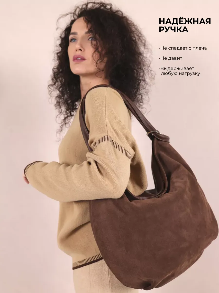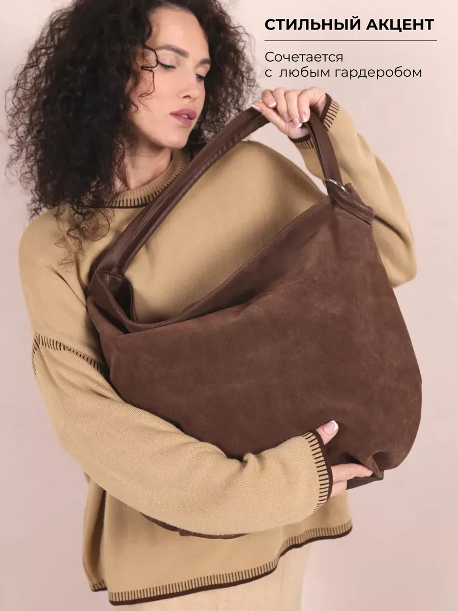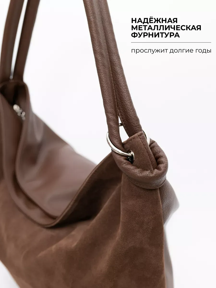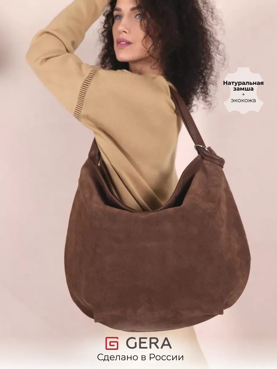 Сумка женская большая и вместительная GERA выполнена из натуральной замши (передняя стенка сумки) и искусственной кожи отличного качества, которая сохраняет свои первозданные свойства в течение долгого времени, отличается мягкостью и приятна на ощупь, не боится резких перепадов температур и морозов. Сумка через плечо шоппер очень лёгкая имеет размеры размеры 50 х 43 х 4 см, одно основное отделение на молнии, внешний карман на задней стенке закрывается на молнию, в нем можно хранить мелкие вещи и ключи и два боковых кармана на молнии. Внутри сумки хобо плотная подкладка, по бокам 2 кармана на молнии, 2 без. Длина ремня 55 см. Большая удобная сумка шоппер на молнии позволяет вместить все самое необходимое - документы, телефон, ключи, кошелек и другие важные вещи. Легкую сумку мягкий мешок для покупок можно носить в руках или повесить на плечо. Вмещает формат А4 с легкостью заменит бананку на пояс сумка багет, мини клатч, сумочку на цепочке, саквояж и нагрудную. Фурнитура изготовлена из сплавов, устойчивых к коррозии. Сумка женская через плечо шоппер удобна и практична, идеальна для повседневного ношения, подойдет как деловая или вместительная сумка на работу. Сумка женская летняя большая станет приятным подарком для жены, мамы, девушки, дочери. Универсальная сумка отлично сочетается с деловым, повседневным и спортивным стилем. Сумка мешок для женщин подойдет на каждый день, на прогулку, учебу или в офис. Сумка женская спортивная очень вместительная и подойдёт как для похода на фитнес, танцы, спорт. Так же её можно использовать как дорожную сумку - ручная кладь для путешествий. Шоппер на молнии тканевый можно использовать как авоську для покупок. Белый шопер сумка для учебы в школу с лёгкостью заменит школьный рюкзак. Женские сумки от компании Gera - это качество российского производителя по доступной цене.