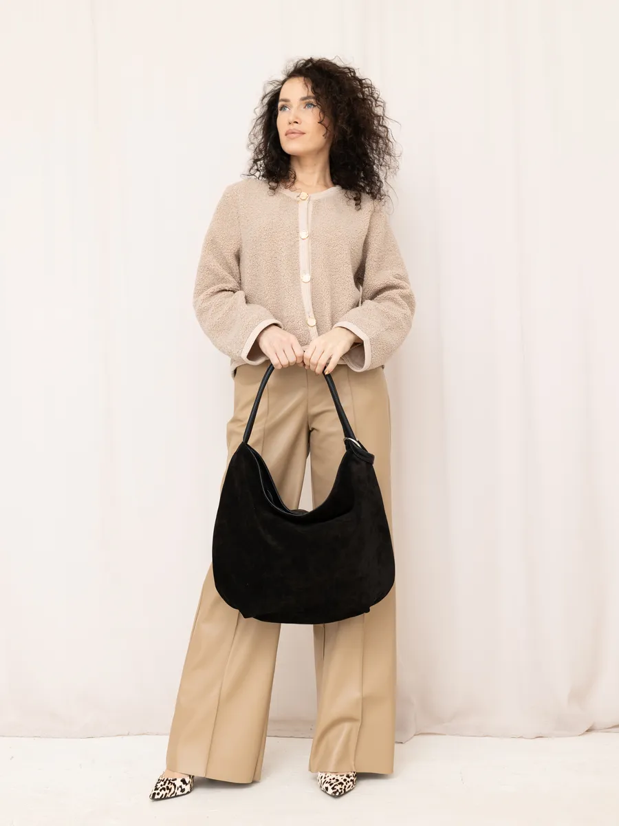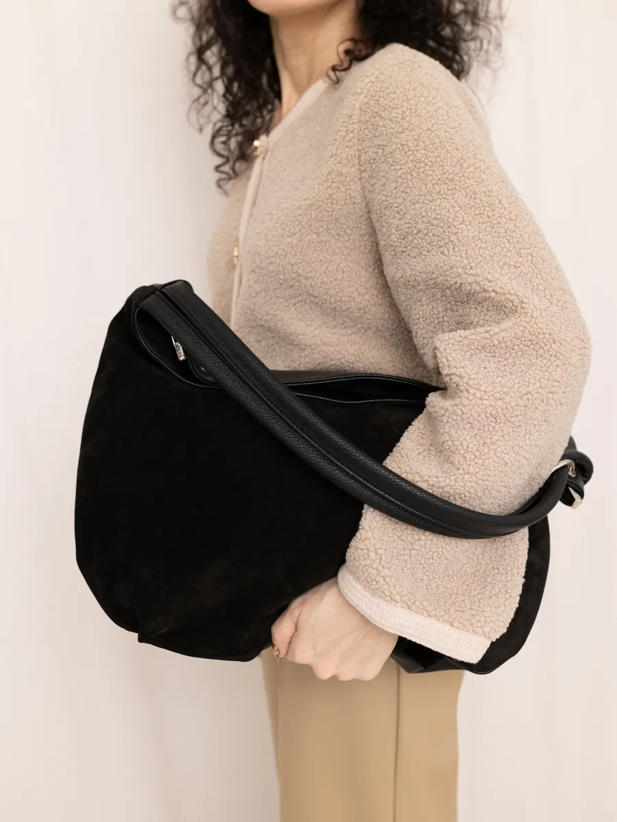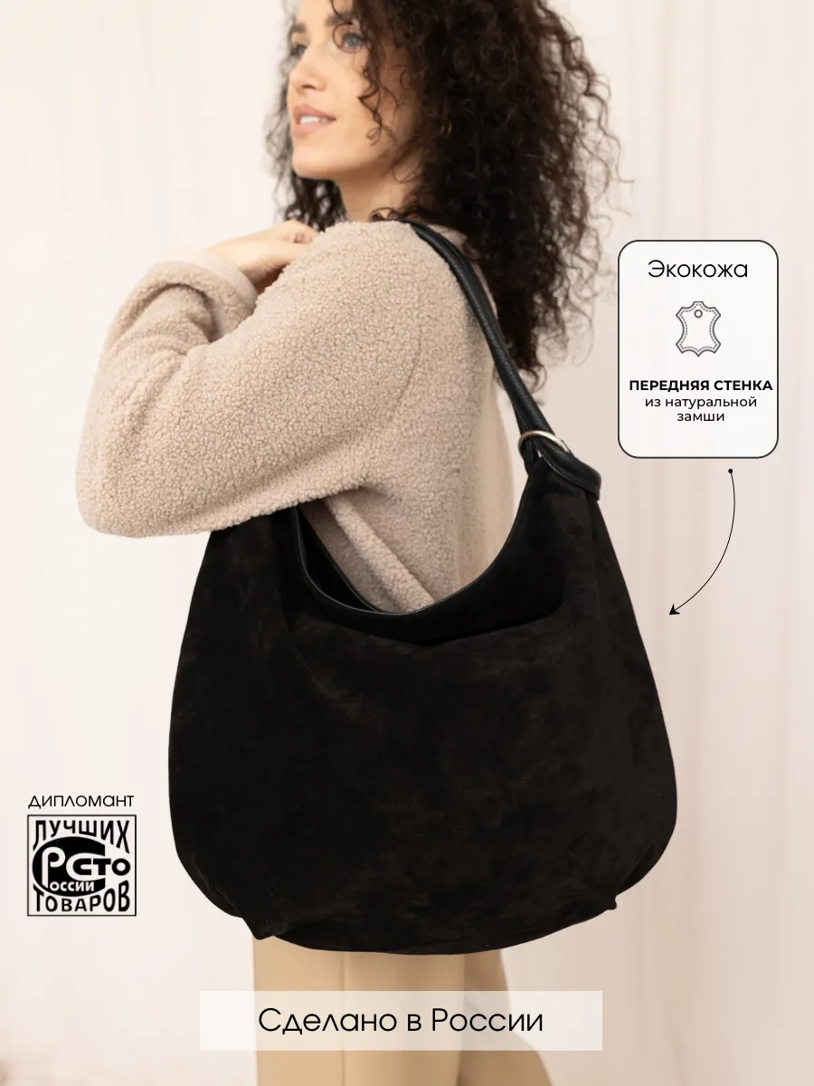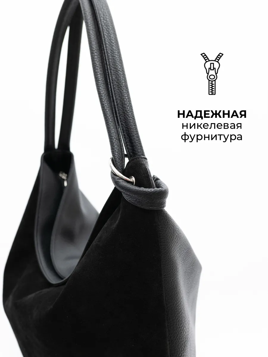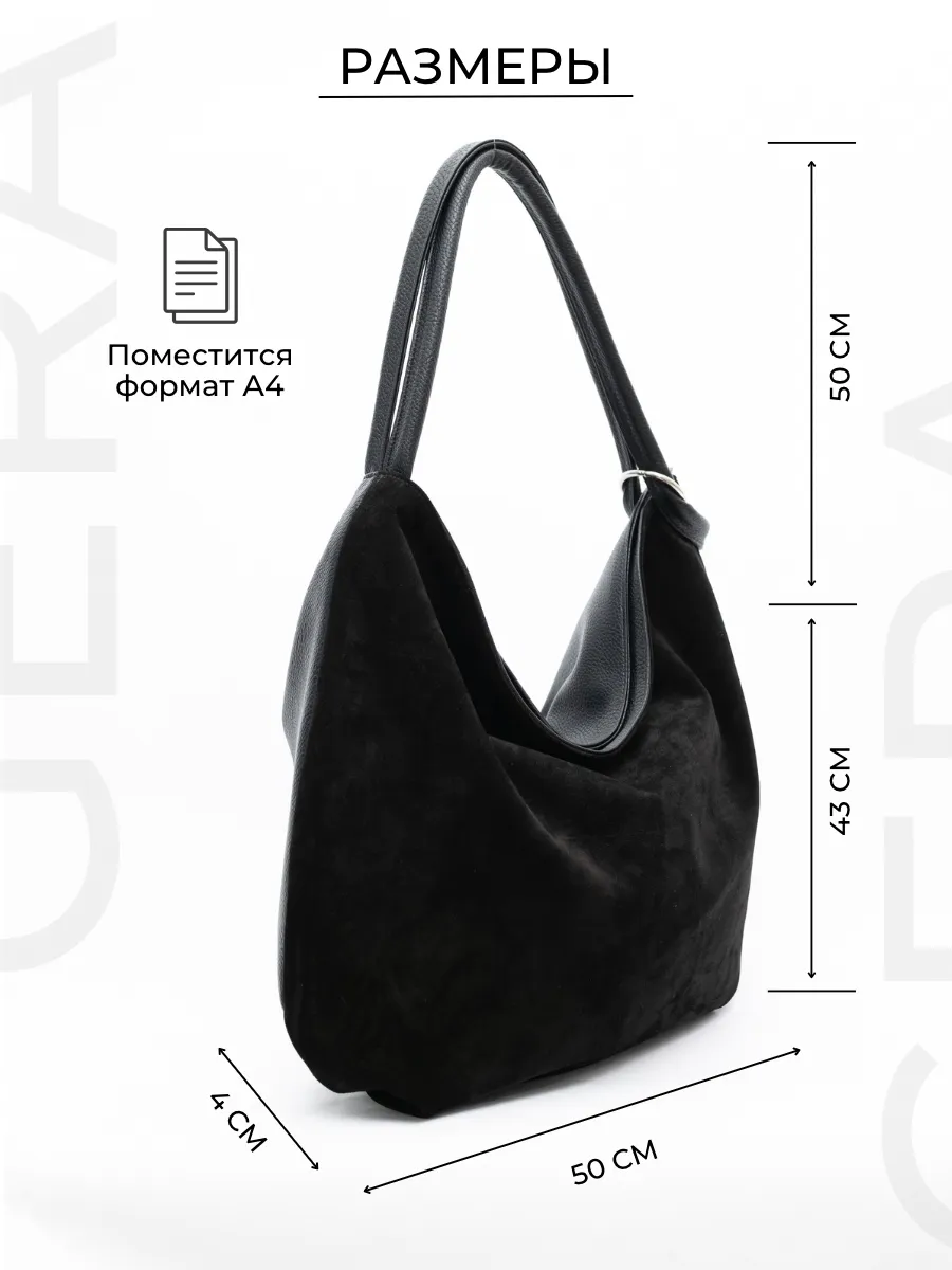 Сумка женская большая и вместительная GERA выполнена натуральной замши (передняя стенка сумки) и искусственной кожи отличного качества, которая сохраняет свои первозданные свойства в течение долгого времени, отличается мягкостью и приятна на ощупь, не боится резких перепадов температур и морозов. Сумка через плечо шоппер очень лёгкая имеет размеры размеры 50 х 43 х 4 см, одно основное отделение на молнии, внешний карман на задней стенке закрывается на молнию, в нем можно хранить мелкие вещи и ключи и два боковых кармана на молнии. Внутри сумки хобо плотная подкладка, по бокам 2 кармана на молнии, 2 без. Длина ремня 55 см. Большая удобная сумка шоппер на молнии позволяет вместить все самое необходимое - документы, телефон, ключи, кошелек и другие важные вещи. Легкую сумку мягкий мешок для покупок можно носить в руках или повесить на плечо. Вмещает формат А4 с легкостью заменит бананку на пояс сумка багет, мини клатч, сумочку на цепочке, саквояж и нагрудную. Фурнитура изготовлена из сплавов, устойчивых к коррозии. Сумка женская через плечо шоппер удобна и практична, идеальна для повседневного ношения, подойдет как деловая или вместительная сумка на работу. Сумка женская летняя большая станет приятным подарком для жены, мамы, девушки, дочери. Универсальная сумка отлично сочетается с деловым, повседневным и спортивным стилем. Сумка мешок для женщин подойдет на каждый день, на прогулку, учебу или в офис. Сумка женская спортивная очень вместительная и подойдёт как для похода на фитнес, танцы, спорт. Так же её можно использовать как дорожную сумку - ручная кладь для путешествий. Шоппер на молнии тканевый можно использовать как авоську для покупок. Белый шопер сумка для учебы в школу с лёгкостью заменит школьный рюкзак. Женские сумки от компании Gera - это качество российского производителя по доступной цене.