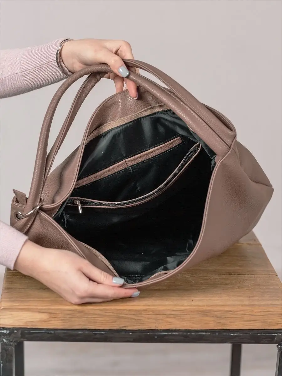 Стильный и вместительный шоппер – отличный выбор в качестве базовой сумки на каждый день! Модель от бренда Gera отличается актуальным дизайном и высоким качеством пошива. Она универсальна и дополнит разные образы. Модный аксессуар сшит из мягкой и плотной искусственной экокожи, не боится морозов. Изнутри он отделан прочной текстильной подкладкой. Сумочка имеетодно основное большое внутреннее отделение. Внутри также предусмотрены дополнительные карманы для мобильного телефона, ключей или других мелочей на молнии и без. На задней стенке есть внешний карман на молнии. Длина ремня 55 см. Крутой шоппер размером 50 х 43 х 4 см вмещает книги и бумаги формата А4. В него можно положить ноутбук и планшет, учебники с тетрадями или тренировочную форму. С таким аксессуаром удобно ходить на фитнес или за покупками. Это красивая дамская сумка, которая дополнит базовые повседневные, спортивные или молодежные образы. Универсальная модель понравится взрослым женщинам и молодым девушкам. Она впишется в трендовые стили кэжуал и у2, поэтому подойдет девочкам – подросткам. Изделие из качественных материалов (кожзам) и фурнитуры можно взять с собой на прогулку. Это хороший выбор для шопига, туристических путешествий или деловых поездок. Объемная сумка - мешок станет частью сдержанных образов для походов в офис или университет. С ней можно ходить на занятия в колледж или в школу. Интересная модель с внутренними и внешними кармашками вместит много вещей и покупок. Это базовый предмет женского гардероба, подходящий для ежедневных походов на работу и городских прогулок. У бренда вы найдете шопперы светлых и темных цветов. Вы можете выбрать аксессуар необычного серебристого оттенка с ярким металлическим блеском. В нашей коллекции есть классические черные и универсальные темно – коричневые сумки. А также стильный бежевый шоппер. Изделия можно приобрести для себя или в качестве приятного подарка для мамы и дочки. У нас есть акции и распродажи, вы можете купить наши товары в подарок со скидкой!