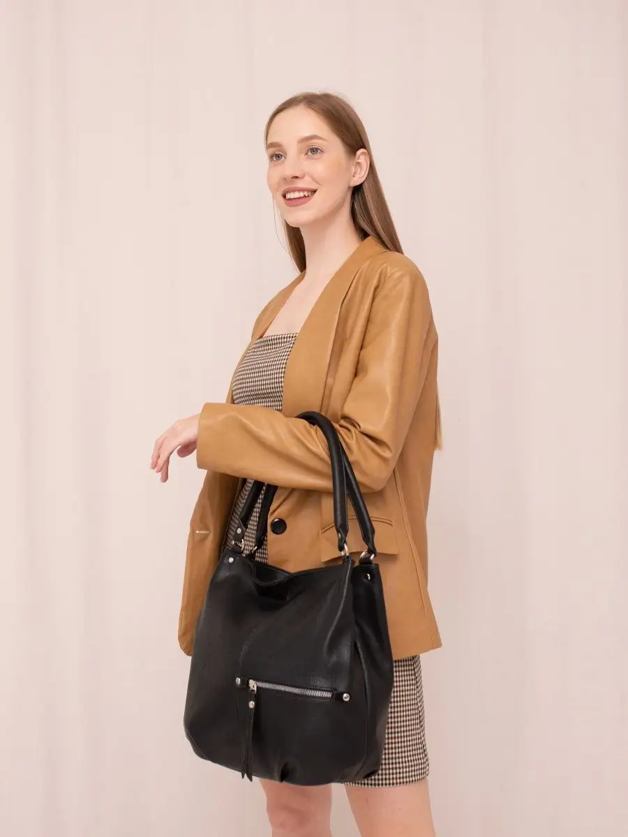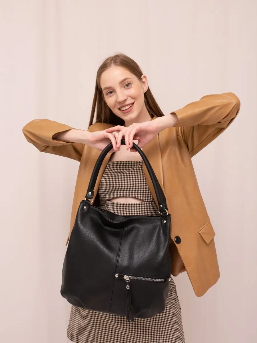 Представляем вам универсальную и стильную женскую сумку через плечо - среднюю классического дизайна. Эта модная вещь станет незаменимым аксессуаром бохо для девушек и женщин в любой ситуации - от повседневных дел до деловых встреч и путешествий. Сумка базовая хобо выполнена из искусственной кожи премиум качества, что обеспечивает не только эффектный внешний вид, но и высокую износостойкость и не уступает сумкам из натуральной кожи. Вместительный мешок, закрывающийся на молнию, позволяет удобно упаковать все необходимые вещи - от книг и тетрадей до тренировочной формы. Тоут средняя с двумя ручками для женщин подойдет на каждый день, на прогулку, учебу в колледж школу университет, в офис или на работу. Яркий дизайн делает эту сумку идеальной для прогулок и учебы, а классический стиль будет уместен в офисе и на деловых встречах. Сумочка дамская через плечо также укомплектована отделениями для телефона и других мелочей, что позволяет легко и быстро найти нужный предмет. Не большой шоппер, но достаточно вместительная. Эта универсальная вещь подходит как для подростков, так и для женщин, которые ценят стиль и комфорт. Сумка через плечо тренд очень лёгкая имеет размеры 37х32х11 см. Внутри сумки одно отделение на молнии, на передней стенке карман на молнии, на задней стенке карман на молнии. Внутри 2 отделения с перегородкой на молнии. 3 кармана на молнии и без молнии. Высота ручек 20 см. Не упустите возможность приобрести эту многофункциональную и стильную не очень большую сумку через плечо от Gera! Прекрасный подарок на 14 февраля и 8 марта для любимой мамы или девушки! Женские сумки от бренда Gera - это качество российского производителя по доступной цене!