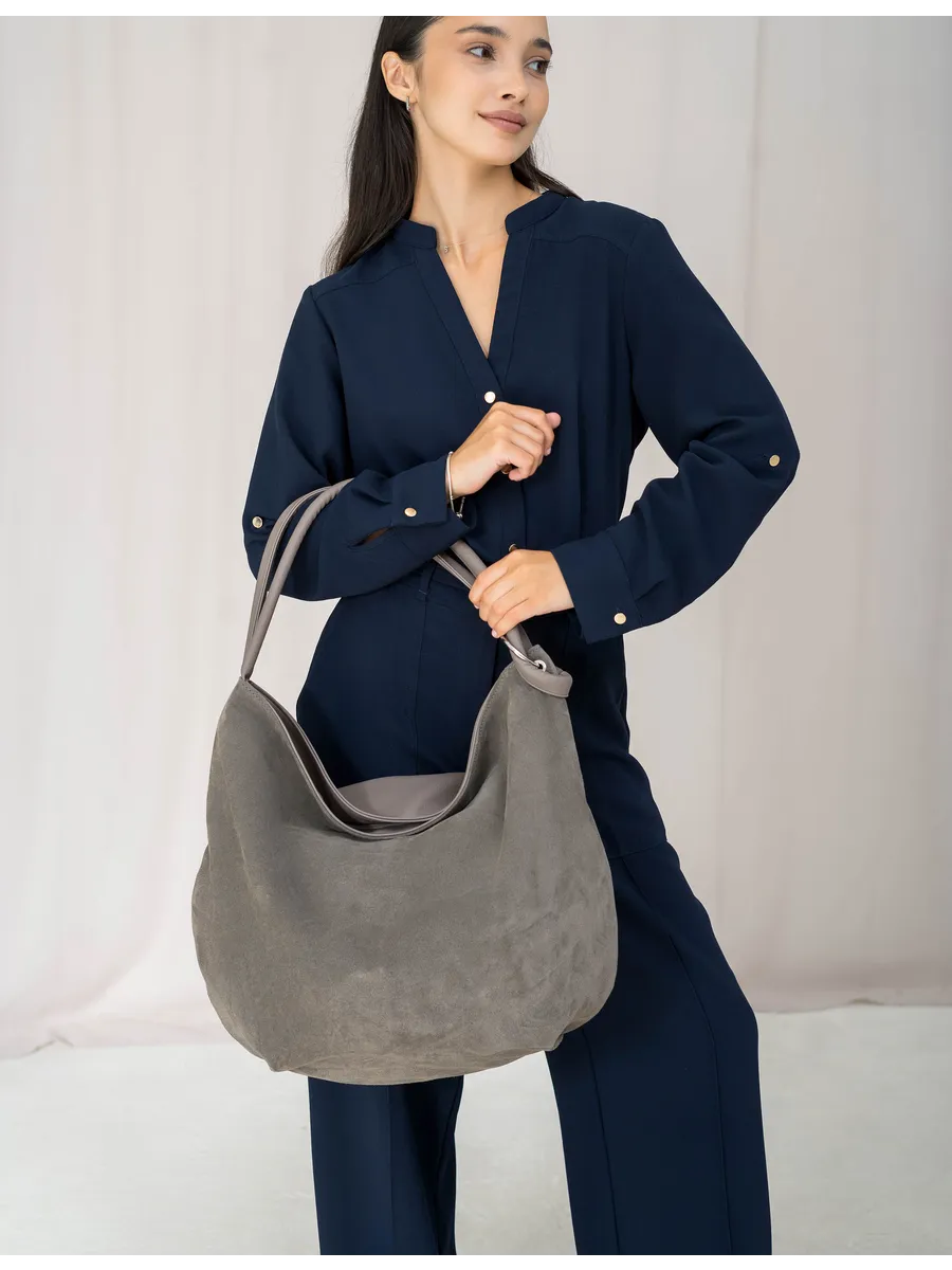 Сумка женская большая и вместительная GERA выполнена из натуральной замши (передняя стенка сумки) и искусственной кожи отличного качества, которая сохраняет свои первозданные свойства в течение долгого времени, отличается мягкостью и приятна на ощупь, не боится резких перепадов температур и морозов. Сумка через плечо шоппер очень лёгкая имеет размеры размеры 50 х 43 х 4 см, одно основное отделение на молнии, внешний карман на задней стенке закрывается на молнию, в нем можно хранить мелкие вещи и ключи и два боковых кармана на молнии. Внутри сумки хобо плотная подкладка, по бокам 2 кармана на молнии, 2 без. Длина ремня 55 см. Большая удобная сумка шоппер на молнии позволяет вместить все самое необходимое - документы, телефон, ключи, кошелек и другие важные вещи. Легкую сумку мягкий мешок для покупок можно носить в руках или повесить на плечо. Вмещает формат А4 с легкостью заменит бананку на пояс сумка багет, мини клатч, сумочку на цепочке, саквояж и нагрудную. Фурнитура изготовлена из сплавов, устойчивых к коррозии. Сумка женская через плечо шоппер удобна и практична, идеальна для повседневного ношения, подойдет как деловая или вместительная сумка на работу. Сумка женская летняя большая станет приятным подарком для жены, мамы, девушки, дочери. Универсальная сумка отлично сочетается с деловым, повседневным и спортивным стилем. Сумка мешок для женщин подойдет на каждый день, на прогулку, учебу или в офис. Сумка женская спортивная очень вместительная и подойдёт как для похода на фитнес, танцы, спорт. Так же её можно использовать как дорожную сумку - ручная кладь для путешествий. Шоппер на молнии тканевый можно использовать как авоську для покупок. Белый шопер сумка для учебы в школу с лёгкостью заменит школьный рюкзак. Женские сумки от компании Gera - это качество российского производителя по доступной цене.