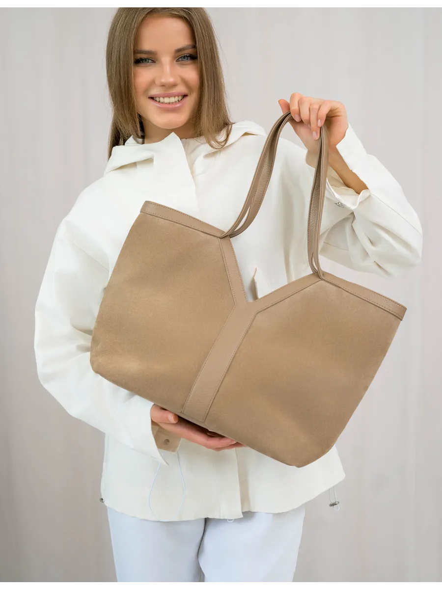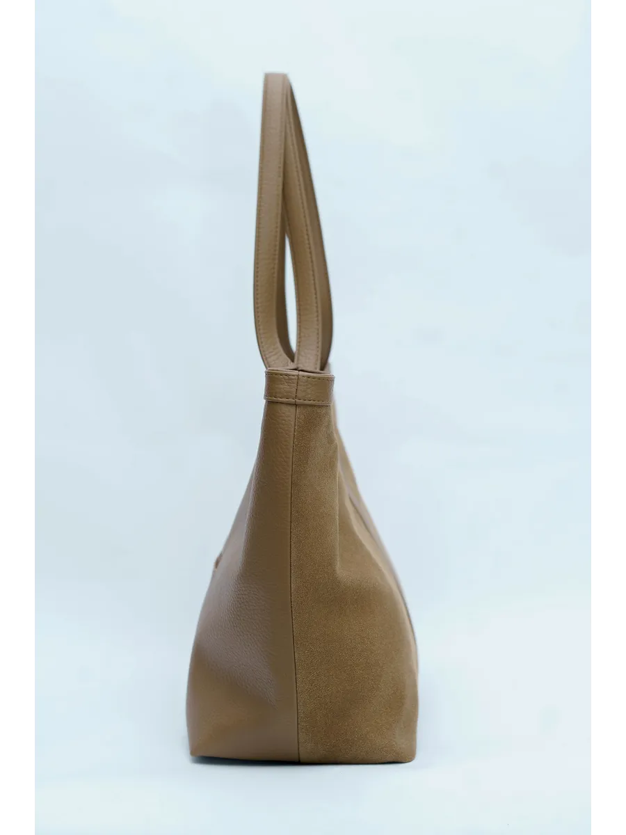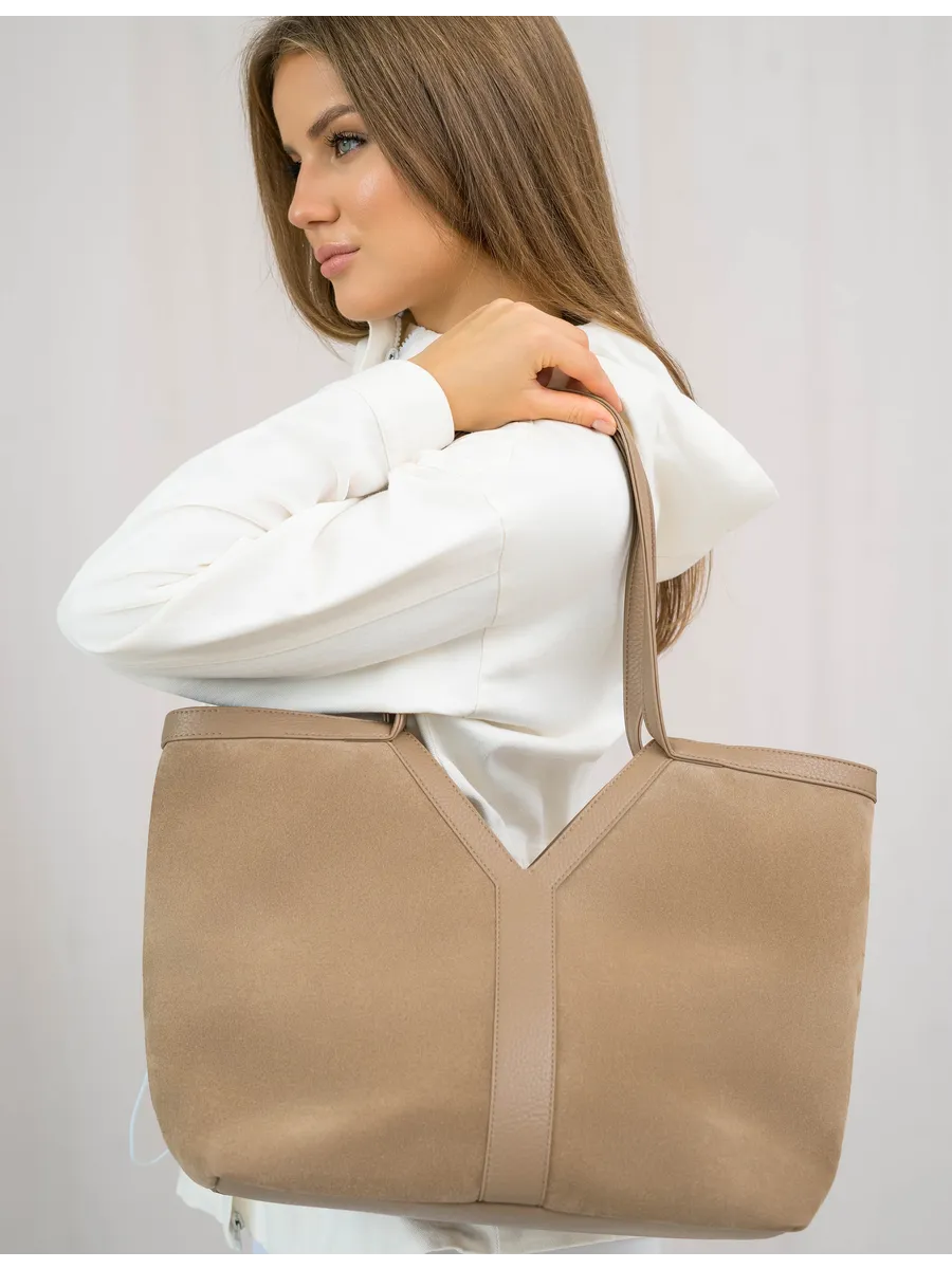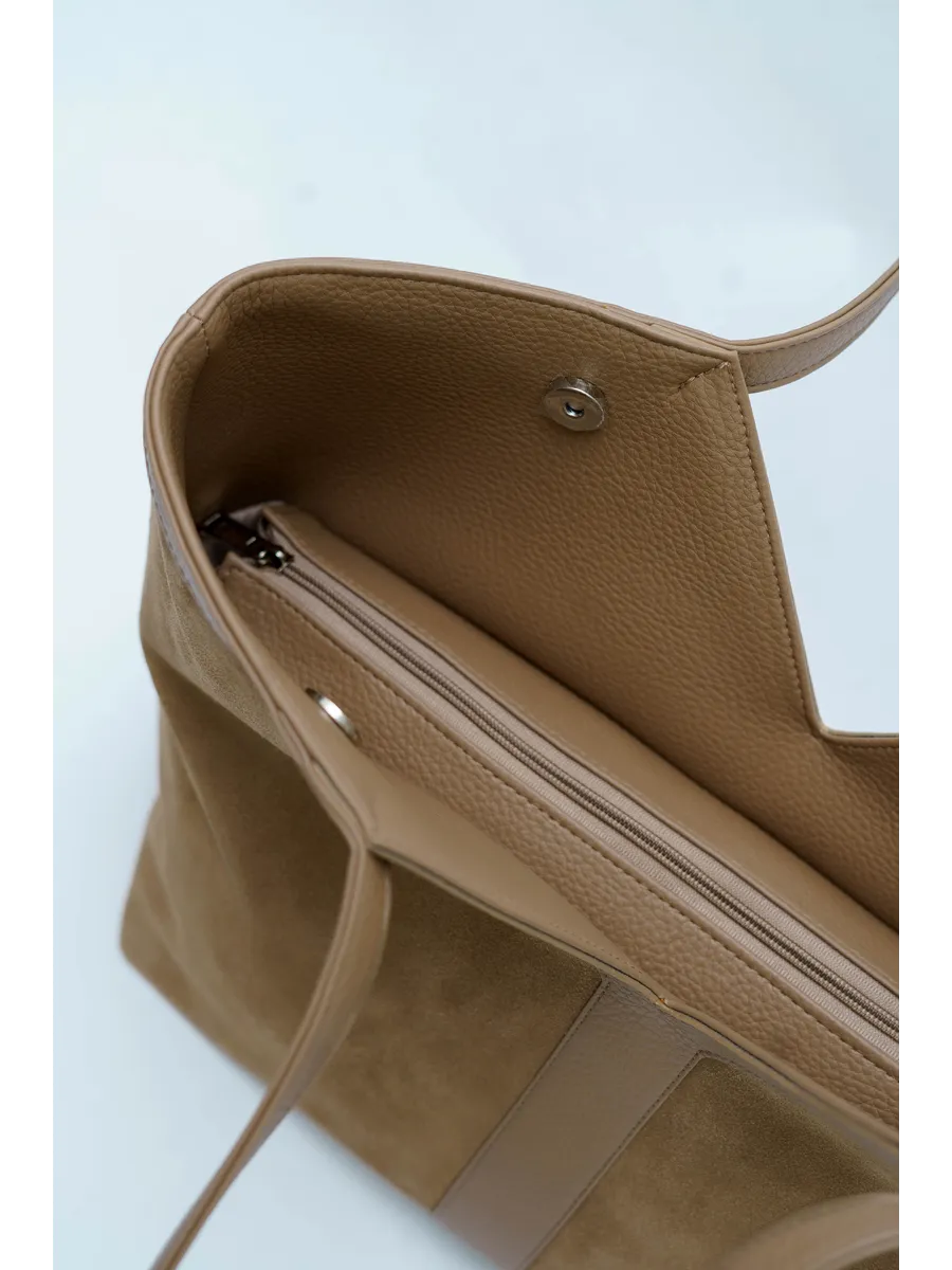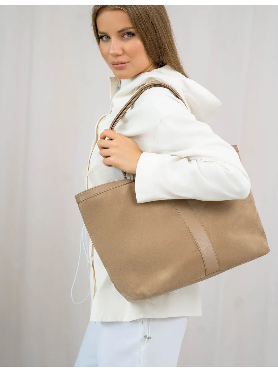 Стильный и вместительный шоппер – отличный выбор в качестве базовой сумки на каждый день! Модель от бренда «Gera» отличается актуальным дизайном и высоким качеством пошива. Она универсальна и дополнит разные образы. Модный аксессуар сшит из натуральной замши (передняя стенка сумки) и мягкой и плотной искусственной кожи. Изнутри он отделан прочной текстильной подкладкой. Сумка через плечо удобна в ношении благодаря мягким ручкам высотой 32 см, имеет большое внутреннее отделение на на молнии и магнитных кнопках. Внутри также предусмотрены дополнительные кармашки для мобильного телефона, ключей или других мелочей. На задней стенке есть внешний карман на молнии 17,5х13 см. Крутой шоппер размером: Ширина по низу -32 см, ширина по верху -45 см, высота по центру -21 см, высота по боку -30 см, глубина дна -14 см вмещает книги и бумаги формата А4. В него можно положить ноутбук и планшет, учебники с тетрадями или тренировочную форму. С таким аксессуаром удобно ходить на фитнес или за покупками. Это красивая дамская сумка хобо, которая дополнит базовые повседневные, спортивные или молодежные образы. Универсальная модель понравится взрослым женщинам и молодым девушкам. Она впишется в трендовые стили кэжуал и у2, поэтому подойдет девочкам – подросткам. Сумочка из качественных материалов (экокожа) и фурнитуры можно взять с собой на прогулку. Это хороший выбор для шопига, туристических путешествий или деловых поездок. Объемный мешок станет частью сдержанных образов для походов в офис или университет. С ней можно ходить на занятия в колледж или в школу. Интересная модель с внутренними и внешними кармашками вместит много вещей и покупок. Это базовый предмет женского гардероба, подходящий для ежедневных походов на работу. У бренда вы найдете стильные изделия, которые можно приобрести для себя или в качестве приятного подарка для мамы и дочки. У нас есть акции и распродажи, вы можете купить наши товары в подарок со скидкой!