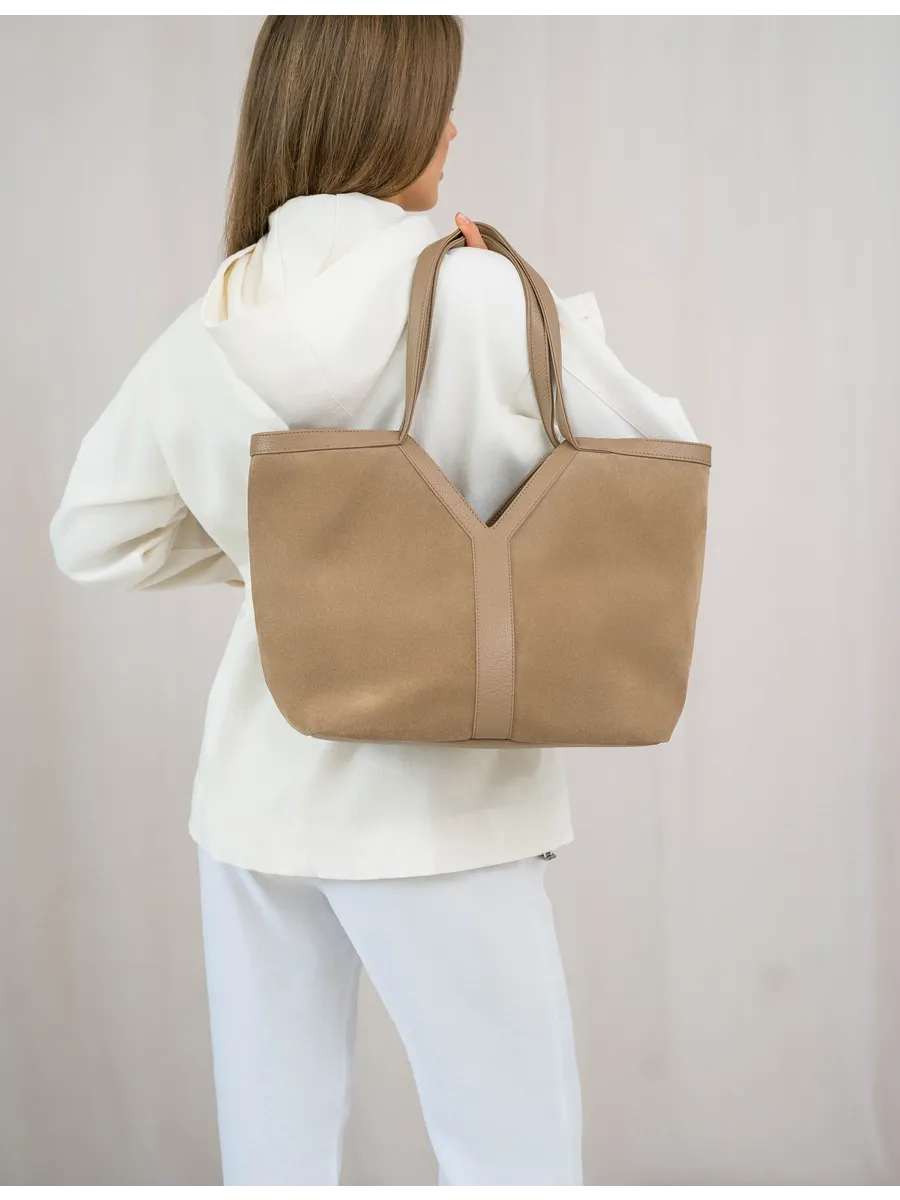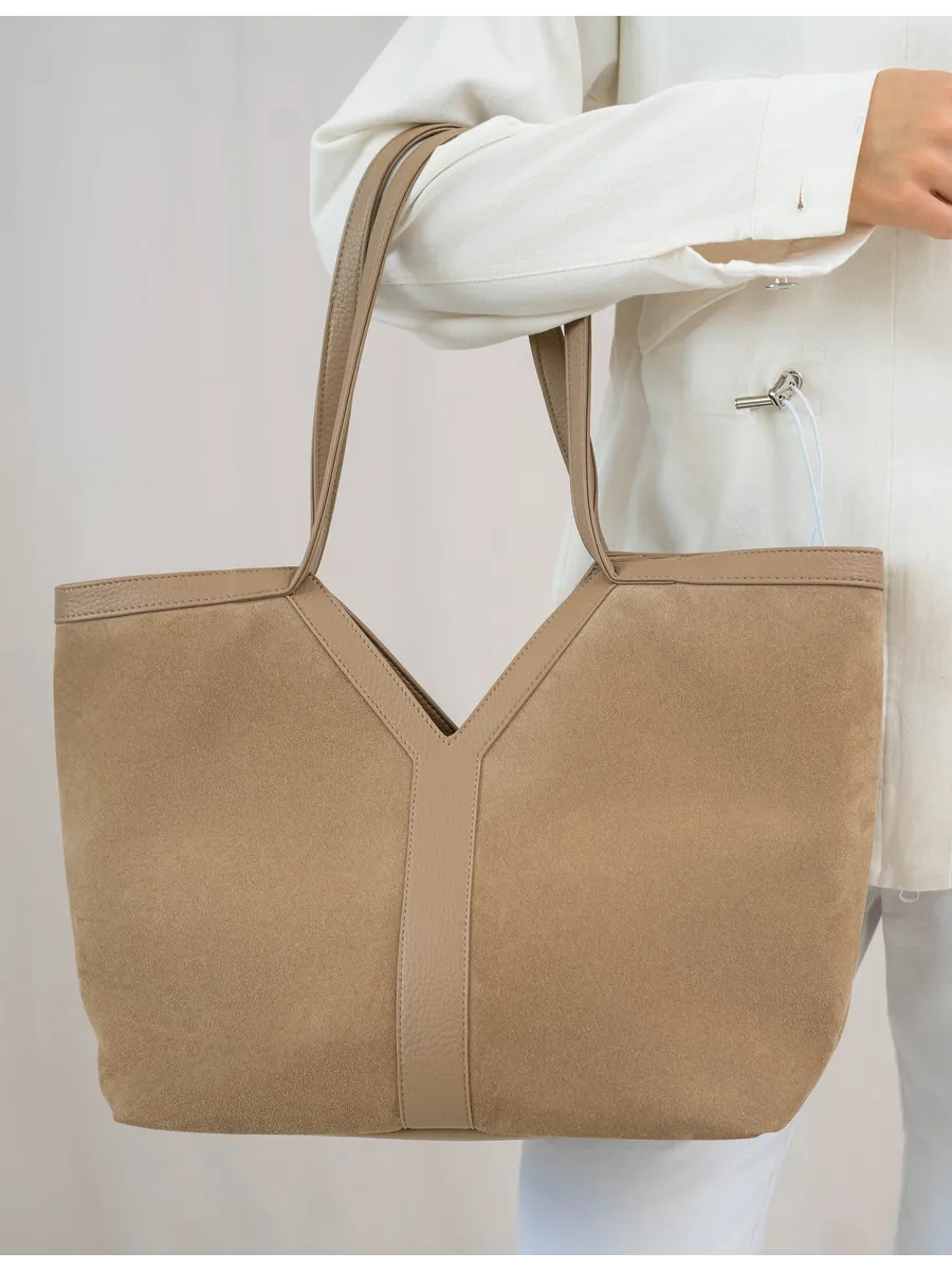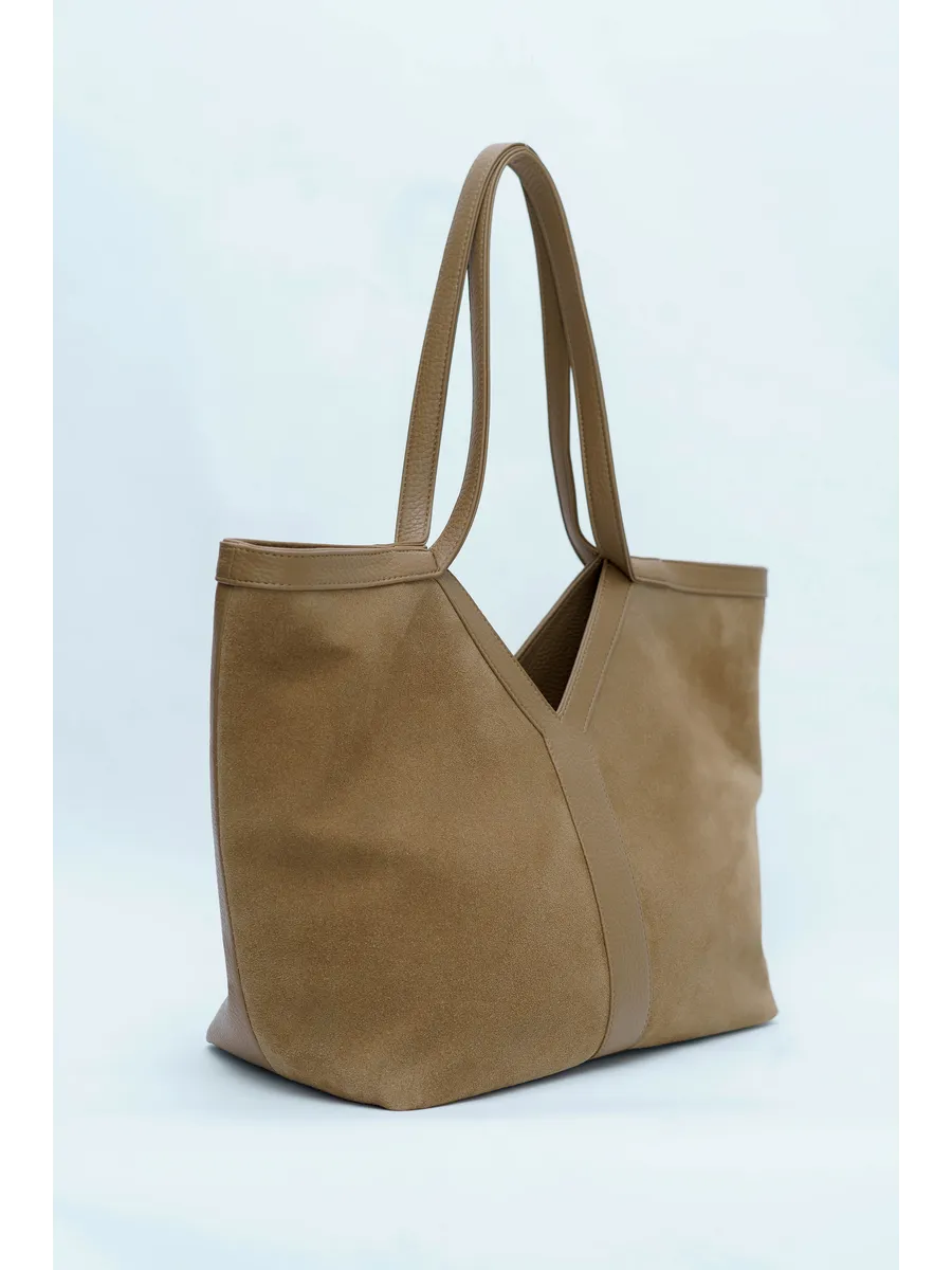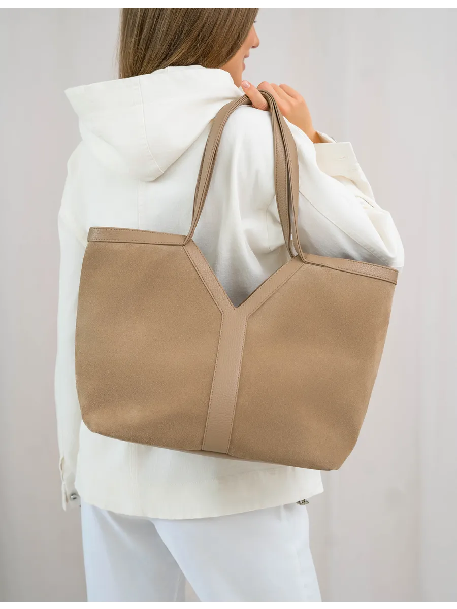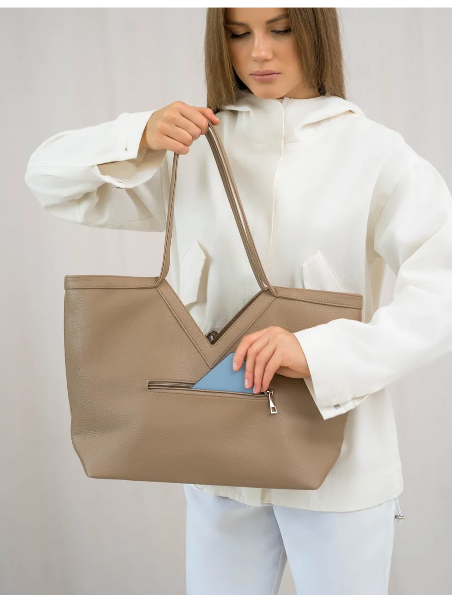 Стильный и вместительный шоппер – отличный выбор в качестве базовой сумки на каждый день! Модель от бренда «Gera» отличается актуальным дизайном и высоким качеством пошива. Она универсальна и дополнит разные образы. Модный аксессуар сшит из натуральной замши (передняя стенка сумки) и мягкой и плотной искусственной кожи. Изнутри он отделан прочной текстильной подкладкой. Сумка через плечо удобна в ношении благодаря мягким ручкам высотой 32 см, имеет большое внутреннее отделение на на молнии и магнитных кнопках. Внутри также предусмотрены дополнительные кармашки для мобильного телефона, ключей или других мелочей. На задней стенке есть внешний карман на молнии 17,5х13 см. Крутой шоппер размером: Ширина по низу -32 см, ширина по верху -45 см, высота по центру -21 см, высота по боку -30 см, глубина дна -14 см вмещает книги и бумаги формата А4. В него можно положить ноутбук и планшет, учебники с тетрадями или тренировочную форму. С таким аксессуаром удобно ходить на фитнес или за покупками. Это красивая дамская сумка хобо, которая дополнит базовые повседневные, спортивные или молодежные образы. Универсальная модель понравится взрослым женщинам и молодым девушкам. Она впишется в трендовые стили кэжуал и у2, поэтому подойдет девочкам – подросткам. Сумочка из качественных материалов (экокожа) и фурнитуры можно взять с собой на прогулку. Это хороший выбор для шопига, туристических путешествий или деловых поездок. Объемный мешок станет частью сдержанных образов для походов в офис или университет. С ней можно ходить на занятия в колледж или в школу. Интересная модель с внутренними и внешними кармашками вместит много вещей и покупок. Это базовый предмет женского гардероба, подходящий для ежедневных походов на работу. У бренда вы найдете стильные изделия, которые можно приобрести для себя или в качестве приятного подарка для мамы и дочки. У нас есть акции и распродажи, вы можете купить наши товары в подарок со скидкой!