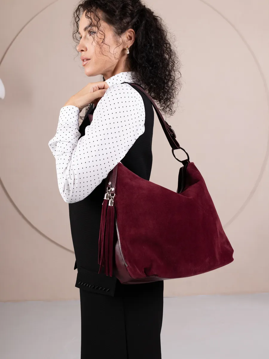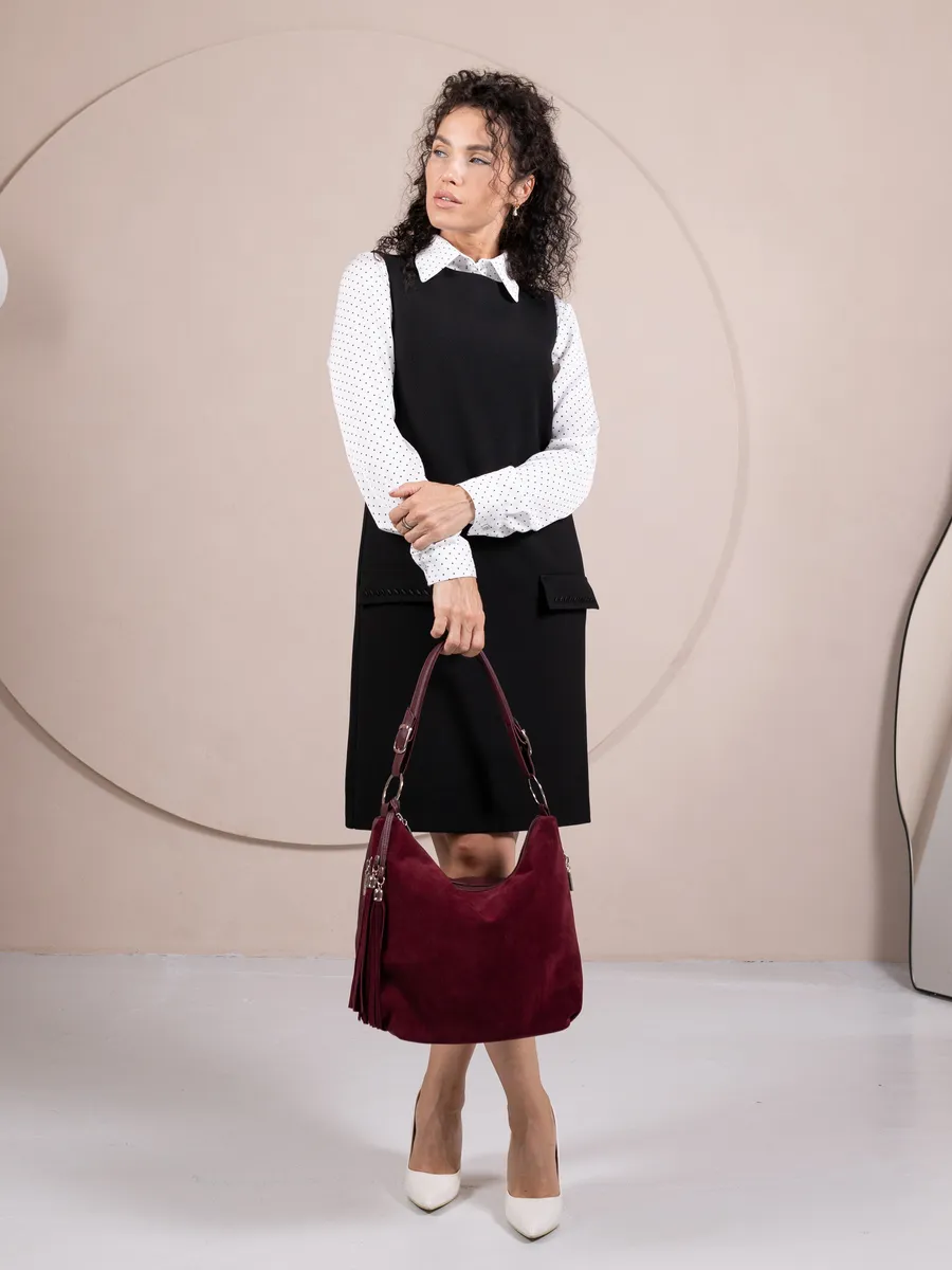 Представляем вам универсальную и стильную женскую сумку большую от бренда Gera Bags. Эта вещь станет незаменимым аксессуаром для девушек и женщин в любой ситуации - от повседневных дел до деловых встреч и путешествий. Модель выполнена из натуральной замши и из искусственной кожи премиум качества, что обеспечивает не только эффектный внешний вид, но и высокую износостойкость и не уступает сумкам из натуральной кожи. Швы прошиты прочной лавсановой нитью, крепкая подкладочная ткань. Шоппер очень лёгкая имеет размеры размеры 35*28*13 см, два основных отделения на молнии. Задний внешний карман 17*14 см, боковые наружные карманы 19*12см. Вместительный мешок позволяет удобно упаковать все необходимые вещи - от книг и тетрадей до тренировочной формы для фитнеса и спортивных занятий. Если вы ищете базовый тоут на любой сезон - это самый правильный выбор, она подходит на каждый день, на учебу в колледж школу университет, на работу, свидание, свадьбу или праздник. Сумка через плечо удобна в ношении благодаря мягким ручкам. Яркий дизайн делает эту модель идеальной для прогулок, а классический стиль будет уместен в офисе и на деловых встречах. Замшевая сумочка дамская также укомплектована отделениями для телефона и других мелочей, что позволяет легко и быстро найти нужный предмет на празднике или вечеринке. Шоппер на молнии можно использовать для покупок, вмещает формат А4. Эта универсальная вещь подходит как для подростков, так и для женщин, которые ценят стиль и комфорт. Прекрасный подарок на 14 февраля и 8 марта для любимой мамы или девушки. Если вы ищете качественную и удобную сумку для путешествий на самолете, то это идеальный выбор.