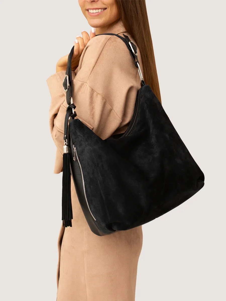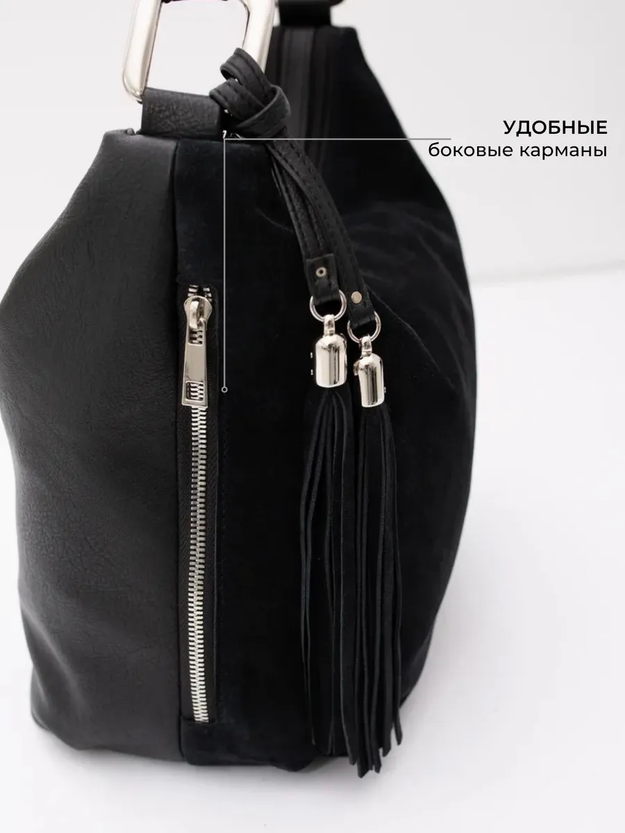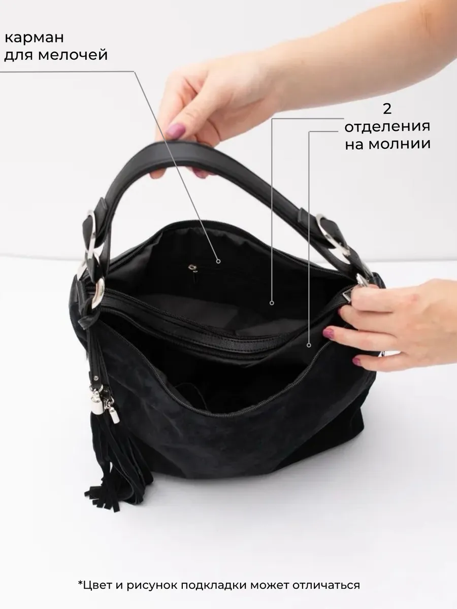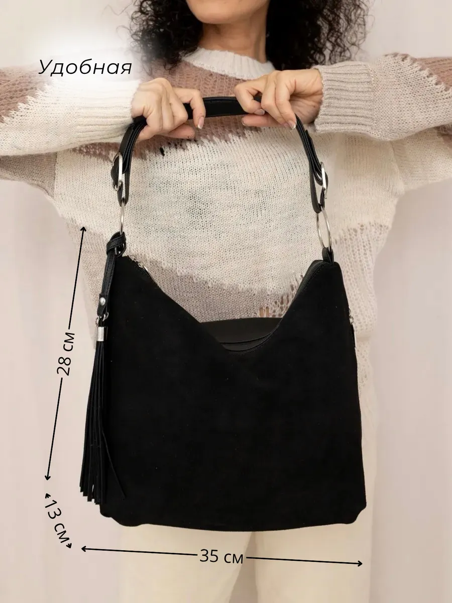 Представляем вам универсальную и стильную женскую сумку большую от бренда Gera Bags. Эта вещь станет незаменимым аксессуаром для девушек и женщин в любой ситуации - от повседневных дел до деловых встреч и путешествий. Модель выполнена из натуральной замши и из искусственной кожи премиум качества, что обеспечивает не только эффектный внешний вид, но и высокую износостойкость и не уступает сумкам из натуральной кожи. Швы прошиты прочной лавсановой нитью, крепкая подкладочная ткань. Шоппер очень лёгкая имеет размеры размеры 35*28*13 см, два основных отделения на молнии. Задний внешний карман 17*14 см, боковые наружные карманы 19*12см. Вместительный мешок позволяет удобно упаковать все необходимые вещи - от книг и тетрадей до тренировочной формы для фитнеса и спортивных занятий. Если вы ищете базовый тоут на любой сезон - это самый правильный выбор, она подходит на каждый день, на учебу в колледж школу университет, на работу, свидание, свадьбу или праздник. Сумка через плечо удобна в ношении благодаря мягким ручкам. Яркий дизайн делает эту модель идеальной для прогулок, а классический стиль будет уместен в офисе и на деловых встречах. Замшевая сумочка дамская также укомплектована отделениями для телефона и других мелочей, что позволяет легко и быстро найти нужный предмет на празднике или вечеринке. Шоппер на молнии можно использовать для покупок, вмещает формат А4. Эта универсальная вещь подходит как для подростков, так и для женщин, которые ценят стиль и комфорт. Если вы ищете качественную и удобную сумку для путешествий на самолете, то это идеальный выбор.