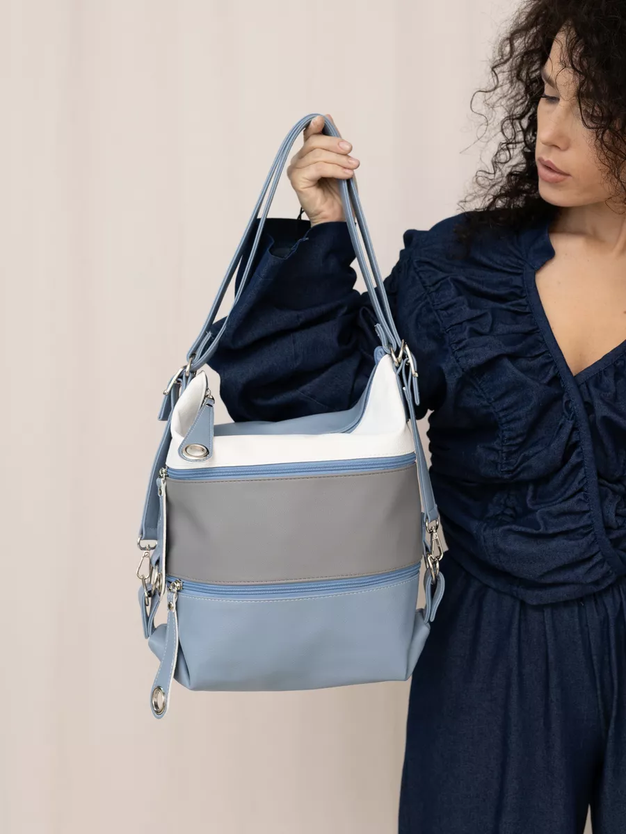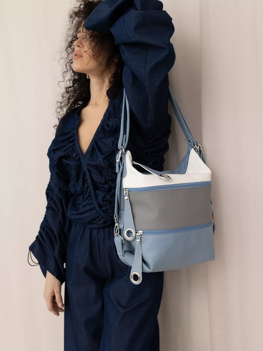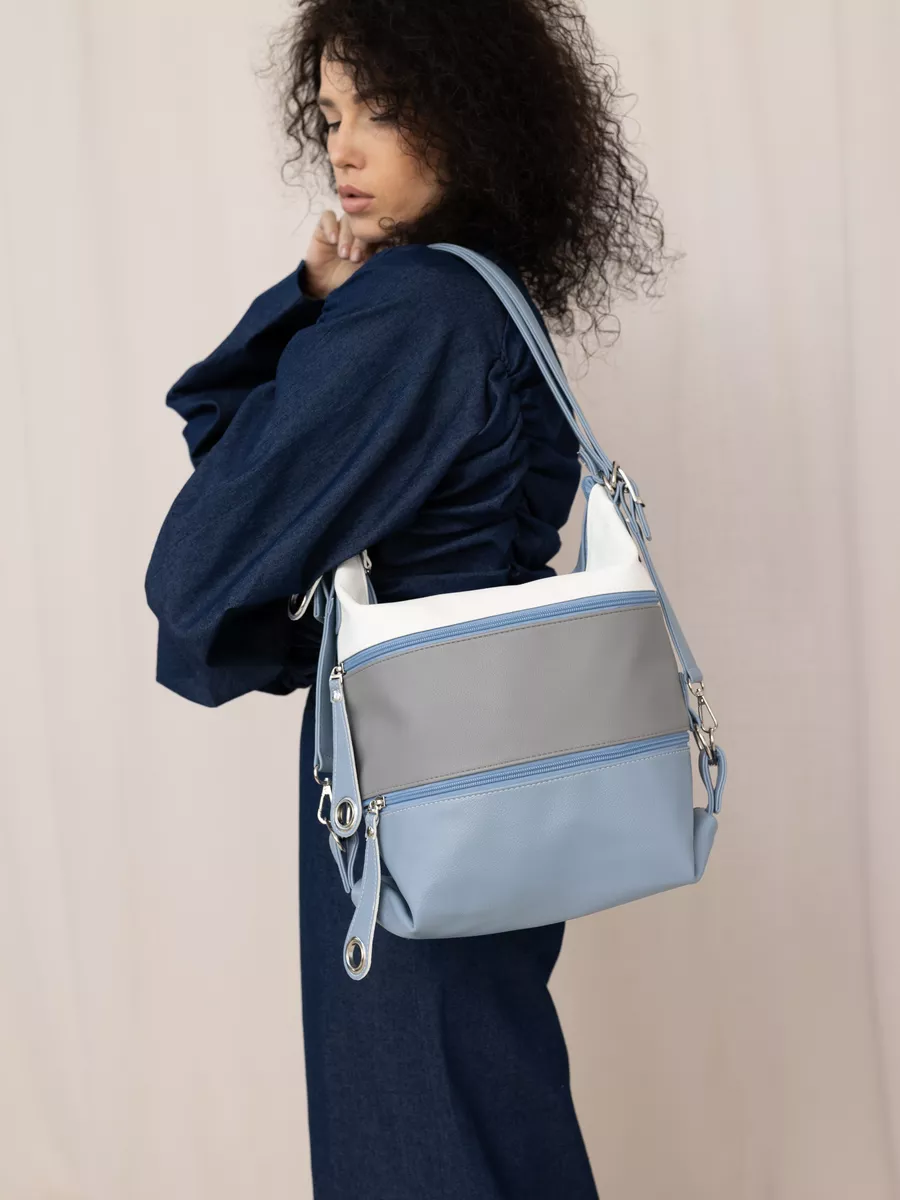 Сумка-рюкзак женская выполнена из искусственной кожи отличного качества, которая сохраняет свои первозданные свойства в течение долгого времени, отличается мягкостью и приятна на ощупь, не боится резких перепадов температур и морозов. Размеры 34х34х12 см. Сумка трансформер женская достаточно удобная и вместительная, оригинальная и функциональная мягкая ручка. Внутри одно отделение на молнии. На задней стенке карман на молнии, 3 кармана для мелочей, 2 на молнии, 2 без молнии. Сумку трансформер можно носить в руках, повесить на плечо или использовать в качестве рюкзака. Внутри сумки плотная подкладка, карман на молнии для мобильного телефона и карман открытого типа. Большая удобная сумка шоппер на молнии позволяет вместить все самое необходимое - документы, телефон, ключи, кошелек и другие важные вещи. Легкую сумку для покупок можно носить в руках или повесить на плечо. Вмещает формат А4. Фурнитура изготовлена из сплавов, устойчивых к коррозии. Сумка-рюкзак женская через плечо удобна и практична, идеальна для повседневного ношения, подойдет как деловая или вместительная сумка на работу. Сумка женская летняя большая станет приятным подарком. Универсальная сумка отлично сочетается с деловым, повседневным и спортивным стилем. Сумка мешок для женщин подойдет на каждый день, на прогулку, учебу или в офис. Сумка может использоваться как спортивная, так как она очень вместительная и прекрасно подойдёт для похода на фитнес, танцы, спорт. Так же её можно использовать как дорожную сумку - ручная кладь для путешествий. Женские сумки от компании Gera - это качество российского производителя по доступной цене!
