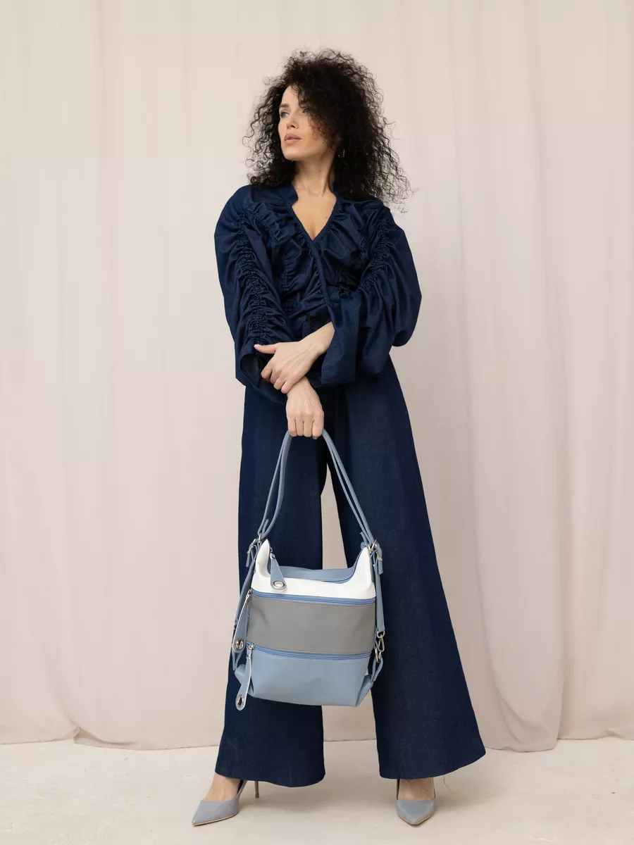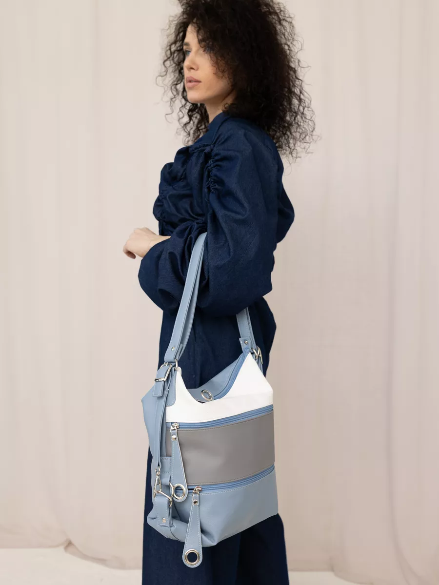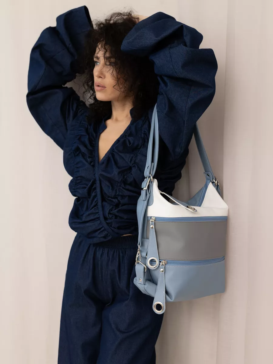 Сумка-рюкзак женская выполнена из искусственной кожи отличного качества, которая сохраняет свои первозданные свойства в течение долгого времени, отличается мягкостью и приятна на ощупь, не боится резких перепадов температур и морозов. Размеры 34х34х12 см. Сумка трансформер женская достаточно удобная и вместительная, оригинальная и функциональная мягкая ручка. Внутри одно отделение на молнии. На задней стенке карман на молнии, 3 кармана для мелочей, 2 на молнии, 2 без молнии. Сумку трансформер можно носить в руках, повесить на плечо или использовать в качестве рюкзака. Внутри сумки плотная подкладка, карман на молнии для мобильного телефона и карман открытого типа. Большая удобная сумка шоппер на молнии позволяет вместить все самое необходимое - документы, телефон, ключи, кошелек и другие важные вещи. Легкую сумку для покупок можно носить в руках или повесить на плечо. Вмещает формат А4. Фурнитура изготовлена из сплавов, устойчивых к коррозии. Сумка-рюкзак женская через плечо удобна и практична, идеальна для повседневного ношения, подойдет как деловая или вместительная сумка на работу. Сумка женская летняя большая станет приятным подарком. Универсальная сумка отлично сочетается с деловым, повседневным и спортивным стилем. Сумка мешок для женщин подойдет на каждый день, на прогулку, учебу или в офис. Сумка может использоваться как спортивная, так как она очень вместительная и прекрасно подойдёт для похода на фитнес, танцы, спорт. Так же её можно использовать как дорожную сумку - ручная кладь для путешествий. Женские сумки от компании Gera - это качество российского производителя по доступной цене!