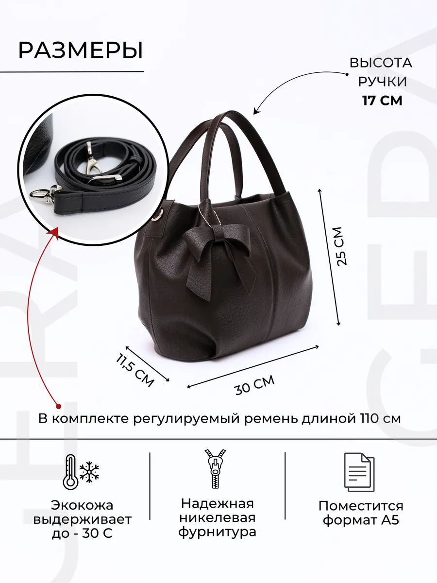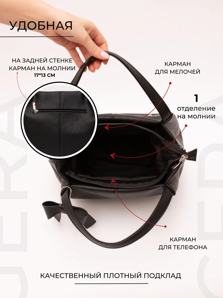 Представляем вам универсальную и стильную женскую сумку через плечо - среднюю классического дизайна. Эта вещь станет незаменимым аксессуаром для девушек и женщин в любой ситуации - от повседневных дел до деловых встреч и путешествий. Она выполнена из искусственной кожи премиум качества, что обеспечивает не только эффектный внешний вид, но и высокую износостойкость и не уступает сумкам из натуральной кожи. Вместительный мешок, закрывающийся на молнию, позволяет удобно упаковать все необходимые вещи - от книг и тетрадей до тренировочной формы. Тоут средняя с двумя ручками для женщин подойдет на каждый день, на прогулку, учебу в колледж школу университет, в офис или на работу. Яркий дизайн делает этот аксессуар идеальныым для прогулок и учебы, а классический стиль будет уместен в офисе и на деловых встречах. Сумочка дамская через плечо также укомплектована отделениями для телефона и других мелочей, что позволяет легко и быстро найти нужный предмет. Не шоппер, но достаточно вместительная. Эта универсальная вещь подходит как для подростков, так и для женщин, которые ценят стиль и комфорт. Модель имеет размеры 30 х 25 х 11,5. Внутри сумки классической одно отделение с карманами на молнии и без. В комплекте идет длинный регулируемый ремень, максимальная 110 см. Внутри хобо плотная подкладка, карман на молнии для мобильного телефона и карман открытого типа. Не упустите возможность приобрести эту многофункциональную и стильную сумку через плечо от Gera Bags! Прекрасный подарок для любимой мамы или девушки! Женские сумки от бренда Gera Bags - это качество российского производителя по доступной цене!