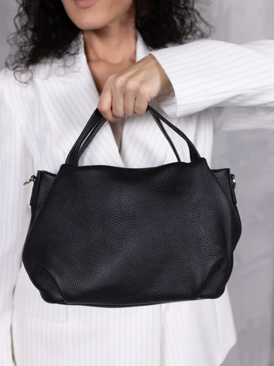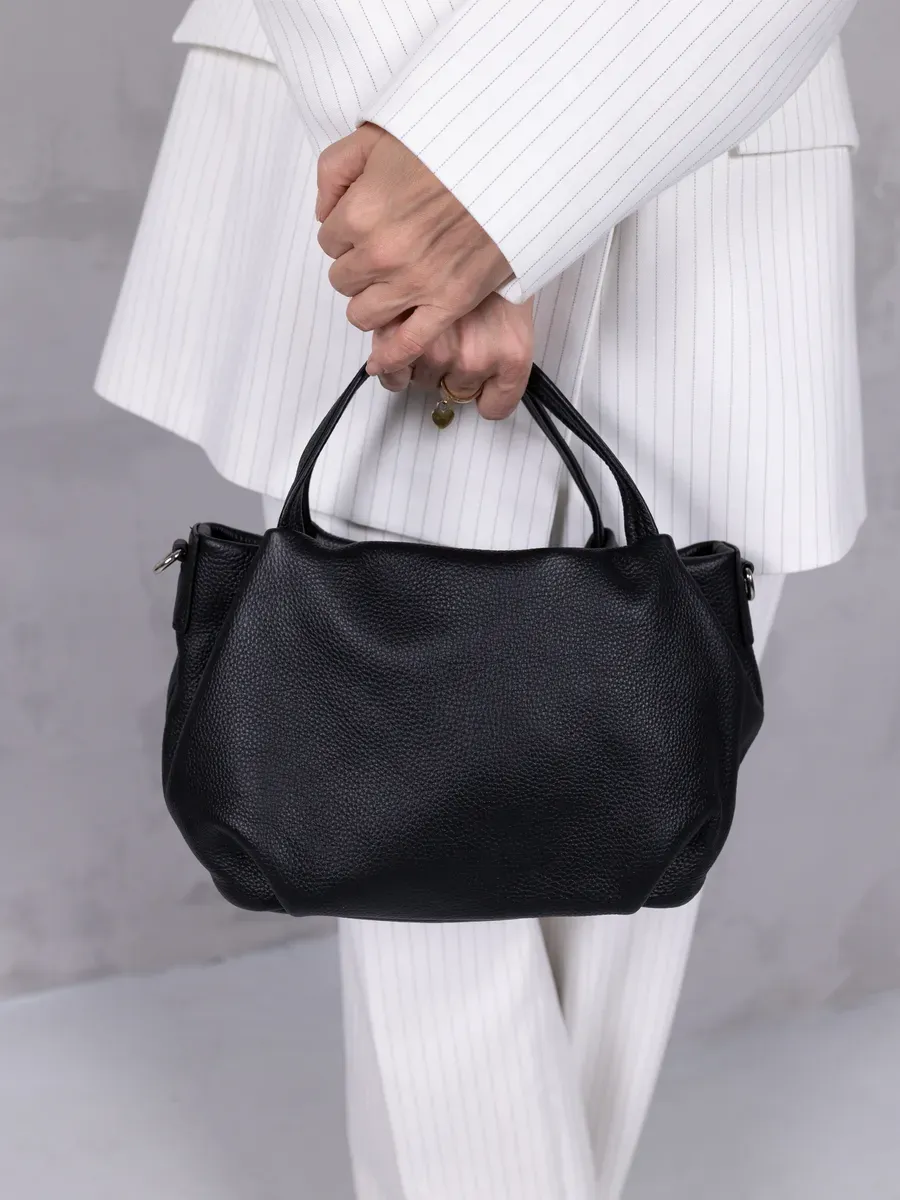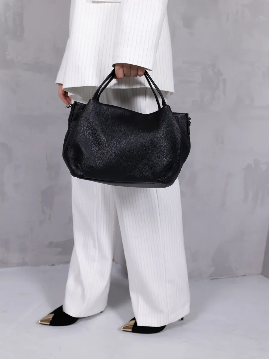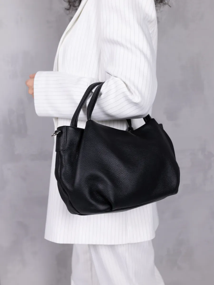 Представляем вам универсальную и стильную женскую сумку через плечо - среднюю классического дизайна. Эта вещь станет незаменимым аксессуаром для девушек и женщин в любой ситуации - от повседневных дел до деловых встреч и путешествий. Сумка выполнена из натуральной кожи премиум качества, что обеспечивает не только эффектный внешний вид, но и высокую износостойкость. Вместительная, закрывается на молнию, позволяет удобно упаковать все необходимые вещи - кошелёк, документы, косметичку. Тоут средняя с двумя ручками для женщин подойдет на каждый день, прогулку, в колледж и университет, на работу. Яркий дизайн делает эту сумку идеальной для повседневной носки, а классический стиль будет уместен в офисе и на деловых встречах. Сумочка дамская через плечо также укомплектована отделениями для телефона и других мелочей, что позволяет легко и быстро найти нужный предмет. Не шоппер, но достаточно вместительная. Эта универсальная вещь подходит для девушек любого возраста, которые ценят стиль и комфорт. Модель имеет размеры ширина подну 23 см,ширина 33 см, высота 20 см, глубина 13 см. Внутри сумки классической одно отделение с карманом на молнии и открытым карманом. На задней стенке карман на молнии 15*12 см. Высота ручек - 15 см. В комплекте идет длинный регулируемый ремень, максимальная 125 см. Не упустите возможность приобрести эту функциональную и стильную сумку хобо через плечо! Прекрасный подарок для любимой мамы или девушки! Женские кожаные сумки от бренда LIZA FILINNI - это качество российского производителя по доступной цене!