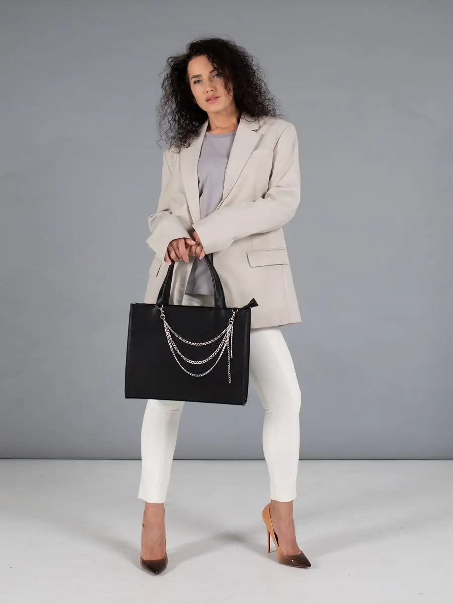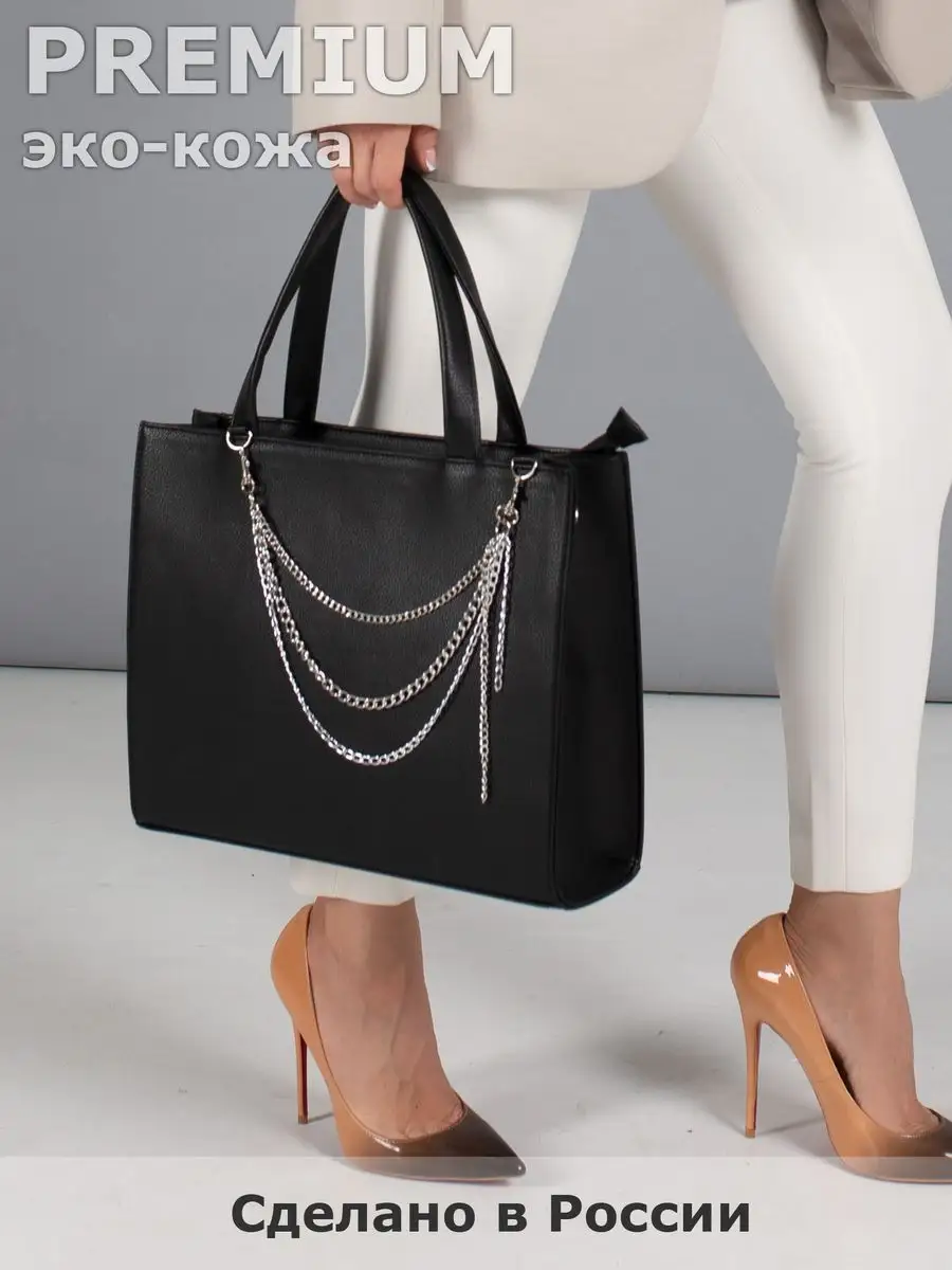 Хотите быть стильной и модной? Тогда эта женская кожаная сумка идеально подойдет для Вас! Наша кроссбоди сумочка со съёмной цепочкой - это идеальное сочетание стиля и элегантности. Благодаря регулируемому плечевому ремню 120 см, вы сможете носить ее через плечо, чтобы создать комфортную посадку. Большая сумка ( 36х28х10) с одним отделением на молнии позволит вам легко вместить все необходимые вещи для повседневной жизни - от документов формата А4 до книг для учебы в университете или колледже, внутри есть дополнительные карманы на молнии и без. Будь то поход в офис, школу или на прогулку, эта брендовая сумка станет надежным партнером для Вас. Изготовленная из экокожи высокого качества, она не только выглядит стильно, но и прослужит вам долгие годы. Прямоугольная форма сумки и ручки высотой 18 см придают ей особую элегантность, которая подчеркнет Вашу индивидуальность. Перевозите свои важные документы и предметы в этой универсальной базовой сумке как ручную кладь в самолете. Она прекрасно подойдет для работы, учебы и деловых встреч. Не упустите возможность приобрести эту стильную, вместительную и практичную сумку, которая станет вашим незаменимым аксессуаром! внутри карманы на молнии и без.