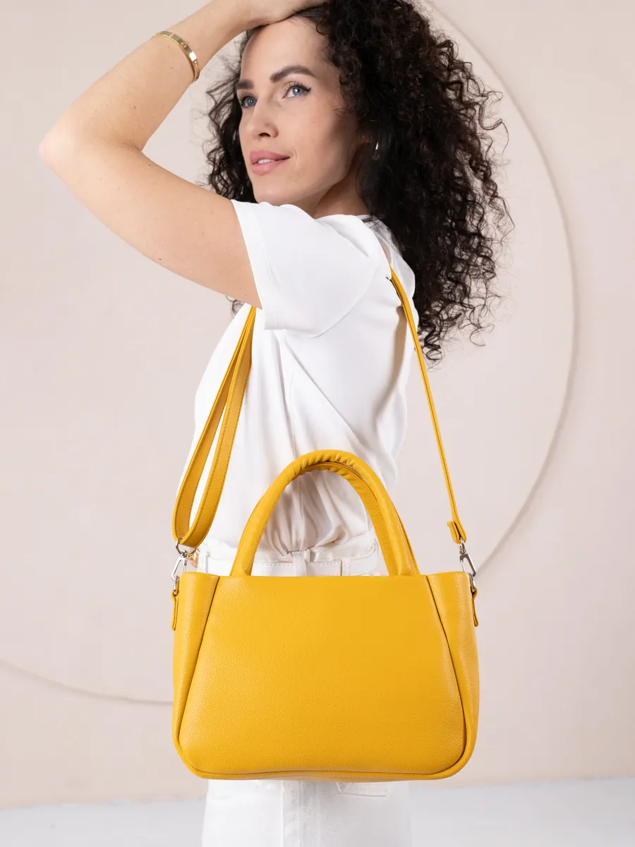 Представляем вам универсальную и стильную женскую сумку через плечо - среднюю классического дизайна. Эта вещь станет незаменимым аксессуаром для девушек и женщин в любой ситуации - от повседневных дел до деловых встреч и путешествий. Сумочка выполнена из искусственной кожи премиум качества, что обеспечивает не только эффектный внешний вид, но и высокую износостойкость и не уступает сумкам из натуральной кожи. Аксессуар, закрывается на молнию, позволяет удобно упаковать все необходимые вещи - от косметички до книг и тетрадей. Тоут маленькая с двумя ручками для женщин подойдет на каждый день, на прогулку, учебу в колледж школу университет, в офис или на работу. Яркий дизайн делает эту вещь идеальной для прогулок и учебы, а классический стиль будет уместен в офисе и на деловых встречах. Сумочка дамская через плечо также укомплектована отделениями для телефона и других мелочей, что позволяет легко и быстро найти нужный предмет. Не шоппер, но достаточно вместительная. Эта универсальная модель подходит как для подростков, так и для женщин, которые ценят стиль и комфорт, имеет размеры ширина по дну-23 см, ширина по верху 33 см, высота 18 см., глубина 11 см.. Высота ручек 13 см. Внутри сумки классической 1 отделение молнии, внутри карманы для мелочей, на молнии и без. В комплекте идет длинный ремень 120 см. Не упустите возможность приобрести эту многофункциональную и стильную не очень большую сумку через плечо. Прекрасный подарок для любимой мамы или девушки! У нас есть акции и распродажи, вы можете купить наши товары в подарок со скидкой!