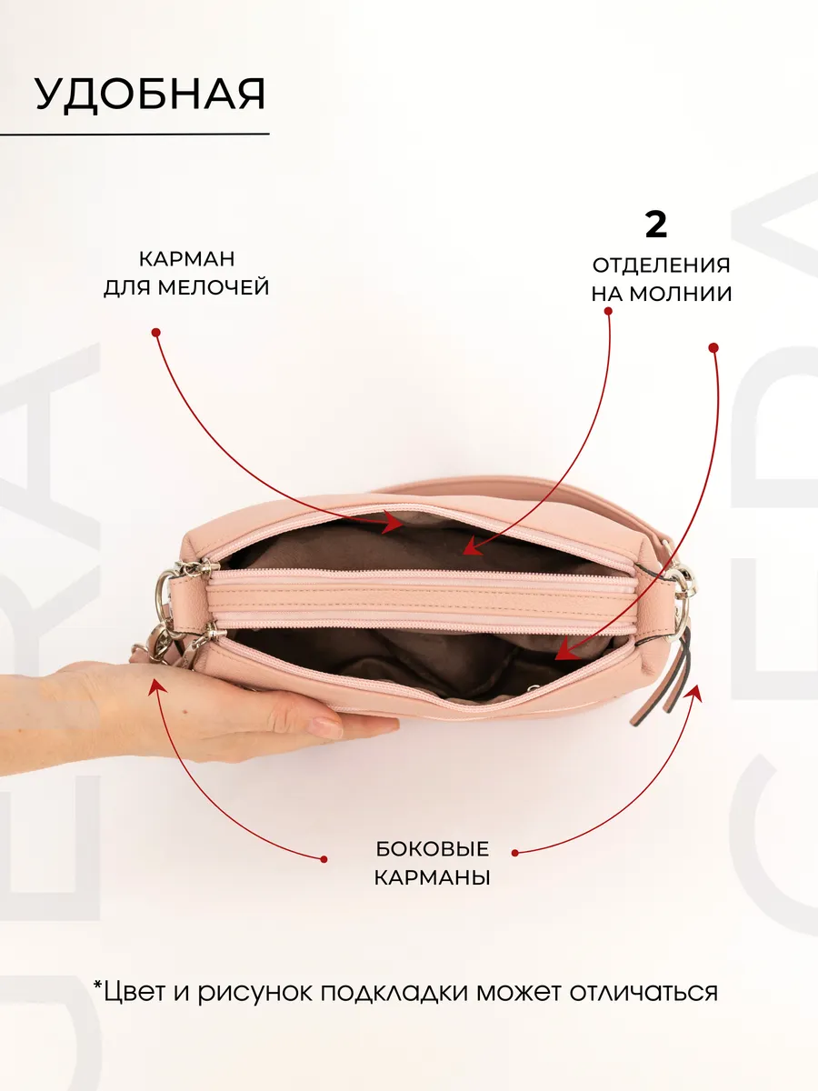 Откройте для себя стильную и практичную кросс-боди, которая идеально подойдет для современной женщины или девушки. Эта модная сумка станет вашим надежным спутником как на прогулку, так и в офис. Выполненная из качественной искусственной кожи отличного качества, которая сохраняет свои первозданные свойства в течение долгого времени и не боится морозов, так же как и натуральная кожа, она сочетает в себе стиль и удобство использования. Этот аксессуар излучает элегантность в своем небольшом размере, что делает его отличным вариантом для вечеринки или повседневного ношения. С двумя ручками вы сможете носить её так, как вам удобно, длина короткого ремня 50 см, длинного - 135 см. Легко трансформируется для различных мероприятий, от спортивного до более официального стиля. Внутри два отделения на молнии, карман для мелочей на молнии, на задней стенке снаружи - карман на молнии 17х12 см и боковые карманы на молнии. Практичный дизайн позволяет ей выделяться на фоне других благодаря вместительности. Несмотря на миниатюрный вид, эта модель удивит вас тем, сколько всего можно положить внутрь, размеры 23х17х9 см. Идеально подходит для хранения всех тех мелочей, которые всегда должны быть под рукой. Отличный подарок для любой модницы! Благодаря своему стильно современному виду клатч обязательно понравится. Российский производитель гарантирует высокое качество пошива. Вы можете быть уверены в надежности каждой детали. Эта сумка не просто аксессуар — это отражение вашей уникальности и вкуса. Она сочетает тренды бохо с актуальной классикой, что делает ее подходящей в любых обстоятельствах — от работы до прогулок по городу. Если вы ищете аксессуар на каждый день без перегрузки лишними деталями — это именно то, что вам нужно. Будьте уверены: ваш образ с этой сумкой становится неповторимым отражением вашего внутреннего мира и предпочтений. Эта маленькая красавица – лучший друг вашей спонтанной натуры!
