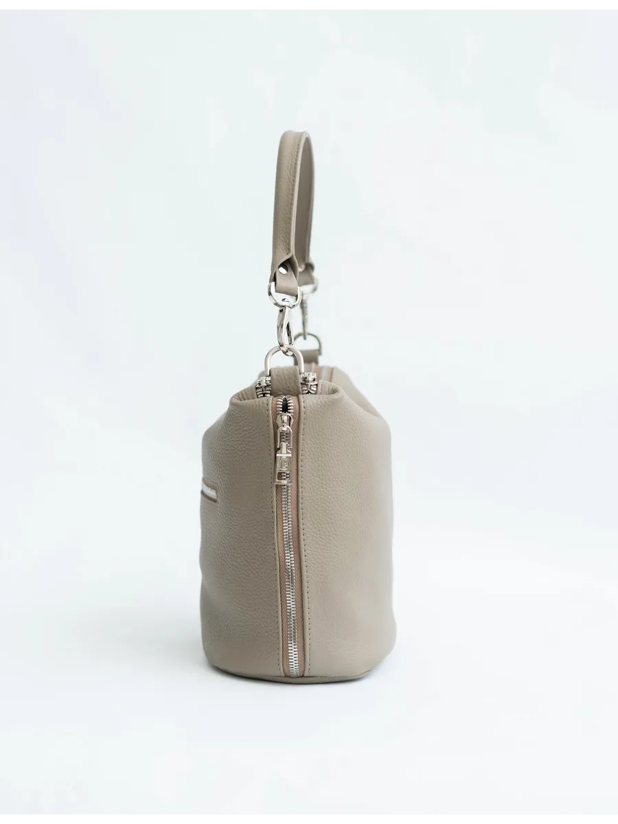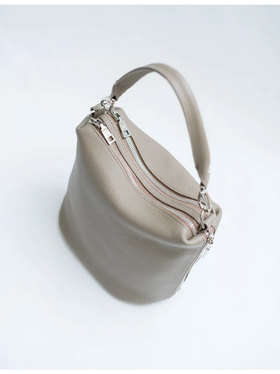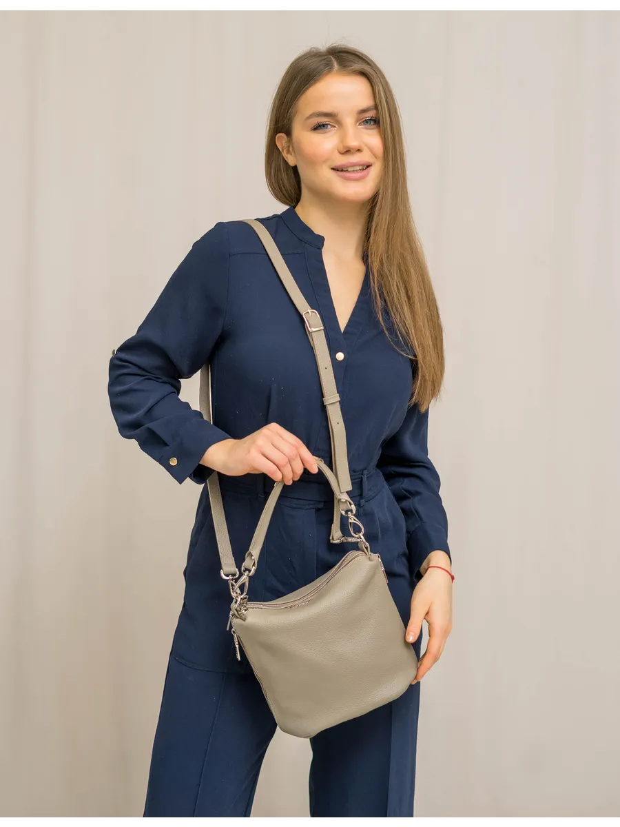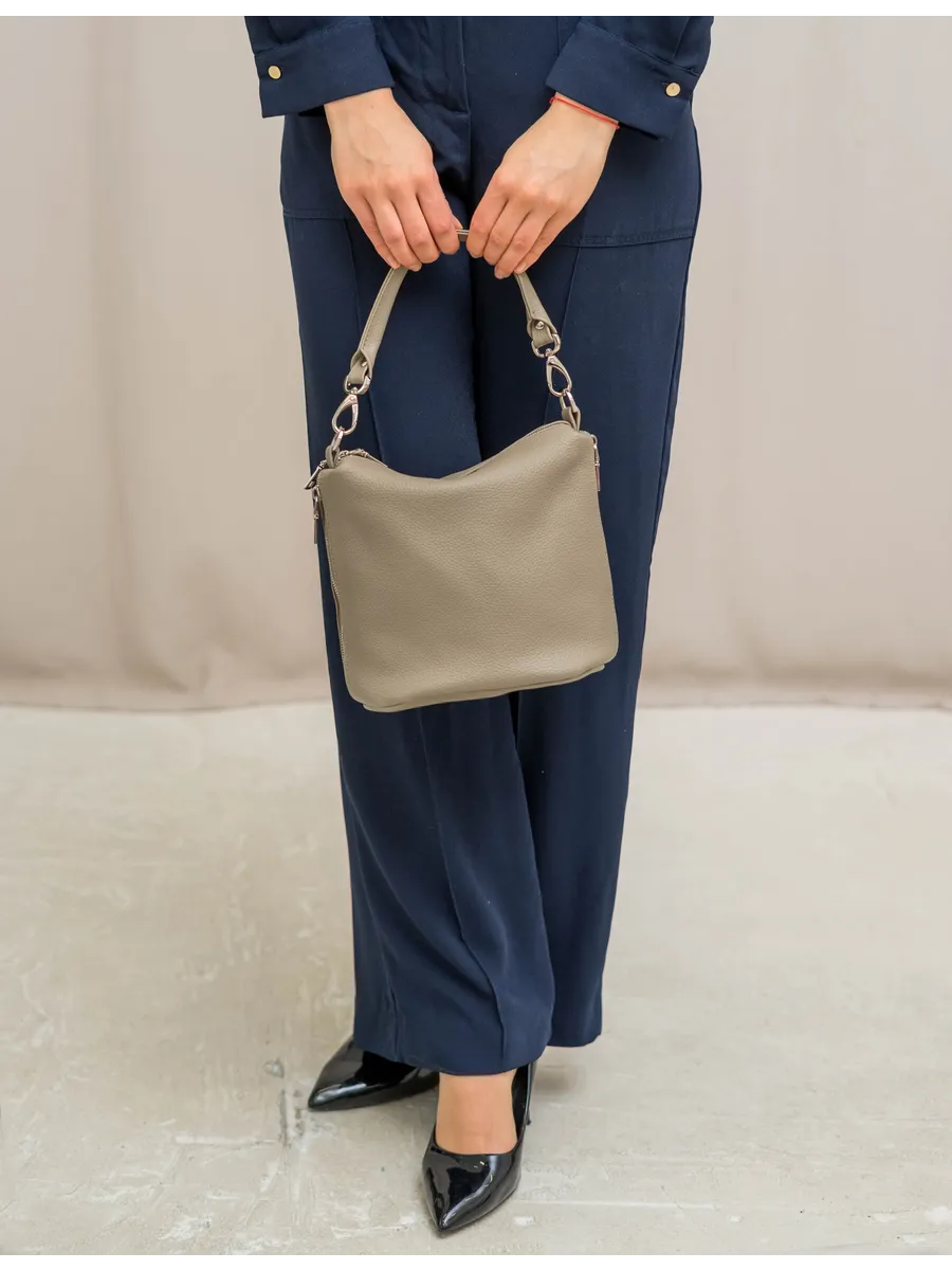 Сумку удобно носить разными способами. Высота ручек (маленькая высотой 15 см) позволяет элегантно держать её в руках или закинуть на плечо, создавая утончённый повседневный образ. Для комфорта в комплект входит регулируемый ремень длиной до 120 см — благодаря ему модель легко трансформируется в небольшую сумку кроссбоди. Такой вариант ношения оставляет руки свободными и особенно удобен в дороге или на прогулке.