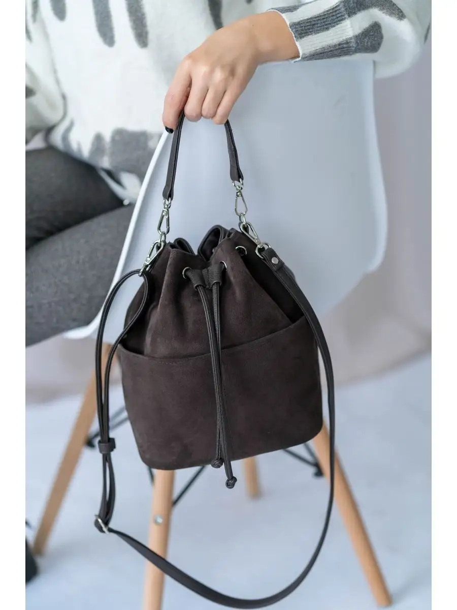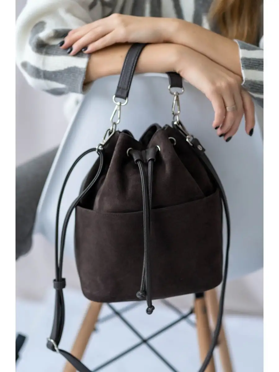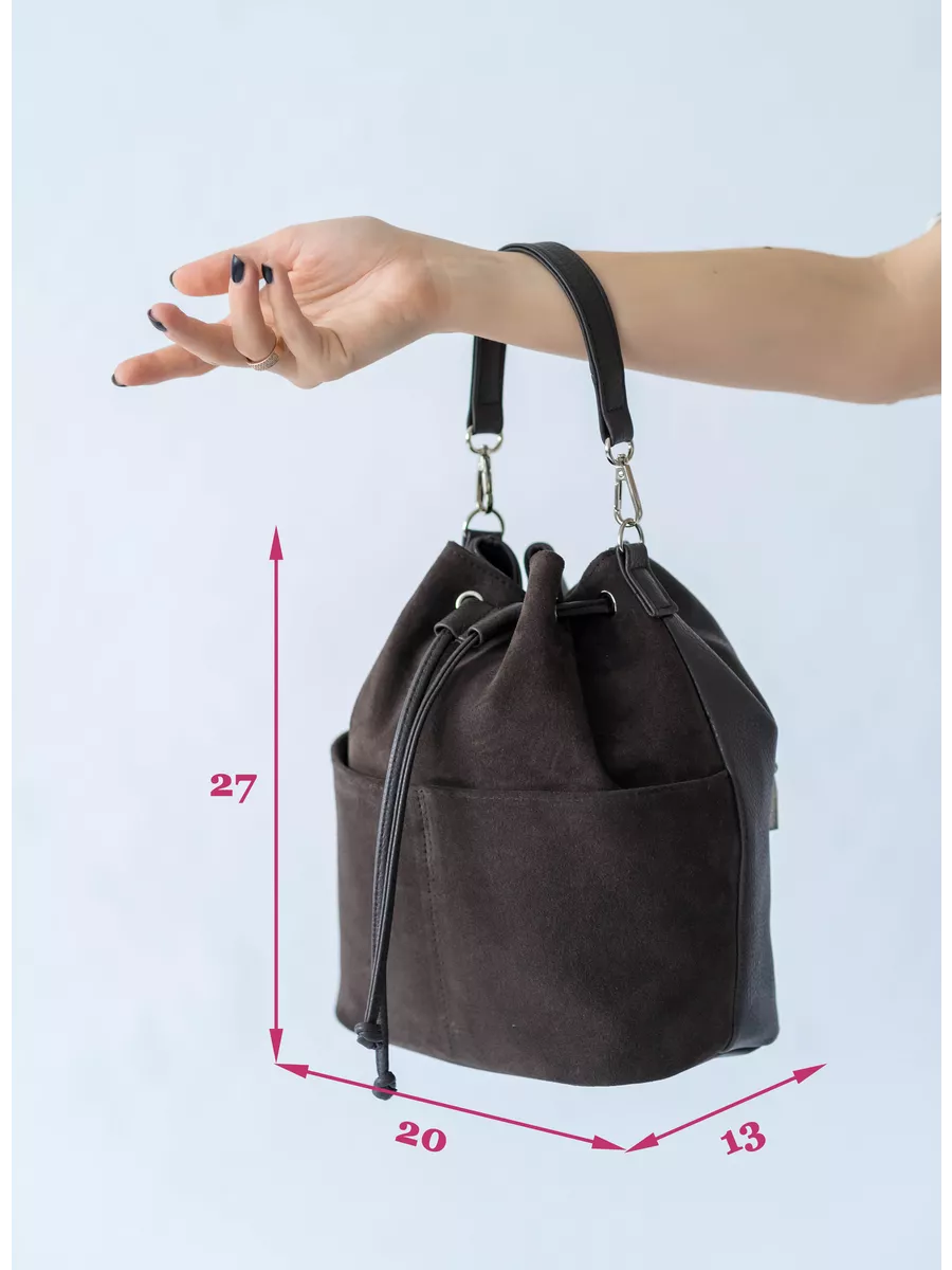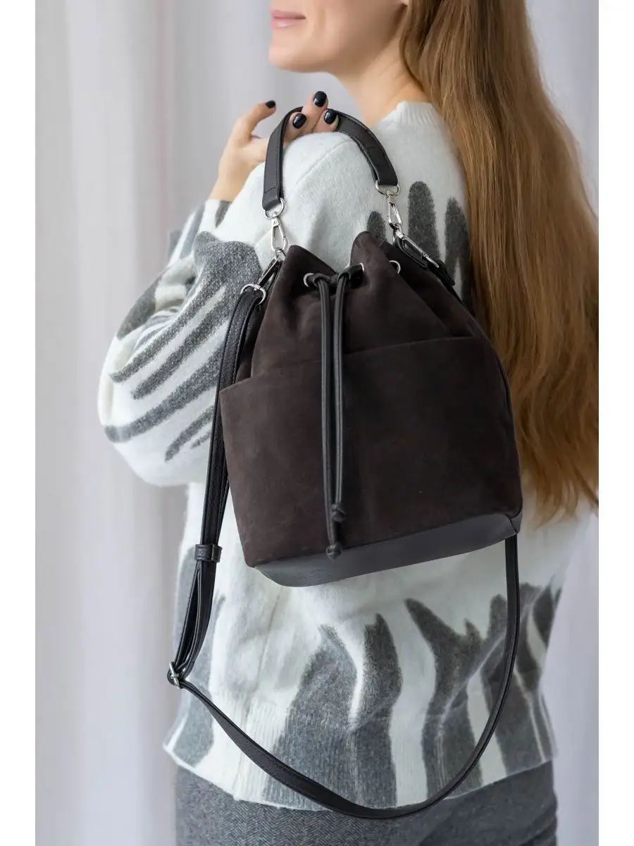 Сумка женская через плечо стягивается шнуром. Женская сумка мешок выполнена из натуральной замши + задняя стенка сумки и ремни из скусственной кожи отличного качества, которая сохраняет свои первозданные свойства в течение долгого времени, и не уступает по мягкости и внешнему виду натуральной коже. Не очень большая , но вместительная и удобная сумка позволяет вместить все самое необходимое. Кисет можно носить в руках или повесить на плечо. Сумка женская через плечо средняя практична, идеальна для повседневного ношения, подойдет как деловая или вместительная на работу в офис. Универсальная сумка отлично сочетается с деловым, повседневным и спортивным стилем. Мешок для женщин подойдет на каждый день, на прогулку, учебу или в офис. Сумочка женская спортивная очень вместительная и подойдёт как для похода на фитнес, танцы, спорт. Так же её можно использовать как дорожную сумку - ручная кладь для путешествий. Сумка для учебы в колледж или университет с лёгкостью заменит школьный рюкзак. Торба имеет размеры 27 х 20 х 13. Внутри сумки кисет одно отделение с карманом на молнии и открытым карманом. Снаружи на передней стенке находятся 2 кармана быстрого доступа, на задней стенке имеется карман на молнии. В комплекте идет длинный регулируемый ремень, максимальная 140 см. Внутри хобо плотная подкладка, карман на молнии для мобильного телефона и карман открытого типа. Женские сумки от бренда Gera Bags- это качество российского производителя по доступной цене. Прекрасный подарок для любимой мамы или девушки!