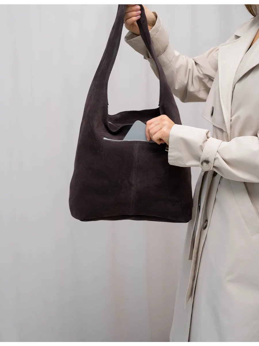Представляем вам универсальную и стильную женскую сумку большую от бренда LIZA FILINNI. Эта вещь станет незаменимым аксессуаром для девушек и женщин в любой ситуации - от повседневных дел до деловых встреч и путешествий. Модель выполнена из натуральной замши, что обеспечивает не только эффектный внешний вид, но и высокую износостойкость. Шоппер очень лёгкая имеет размеры: ширина 43 см, высота 32 см, глубина 15 см (мякгое дно). Одно основное отделение одно отделение на молнии , прочный подклад, карманы на молнии и без. Высота ручки - 23 см. Вместительный мешок позволяет удобно упаковать все необходимые вещи - от книг и тетрадей до тренировочной формы для фитнеса и спортивных занятий. Если вы ищете базовый тоут на любой сезон - это самый правильный выбор, она подходит на каждый день, на учебу в колледж школу университет, на работу, свидание или праздник. Сумка через плечо удобна в ношении благодаря мягким ручкам. Яркий дизайн делает эту модель мешок идеальной для прогулок, а классический стиль будет уместен в офисе и на деловых встречах. Замшевая сумочка дамская укомплектованавнешним карманом на задней стенке 14х18 см, что позволяет легко и быстро найти нужный предмет на празднике или вечеринке. Шоппер можно использовать для покупок, вмещает формат А4. Эта универсальная вещь подходит как для подростков, так и для женщин, которые ценят стиль и комфорт. Прекрасный подарок для любимой мамы или девушки. Если вы ищете качественную и удобную сумку для путешествий на самолете, то это идеальный выбор.