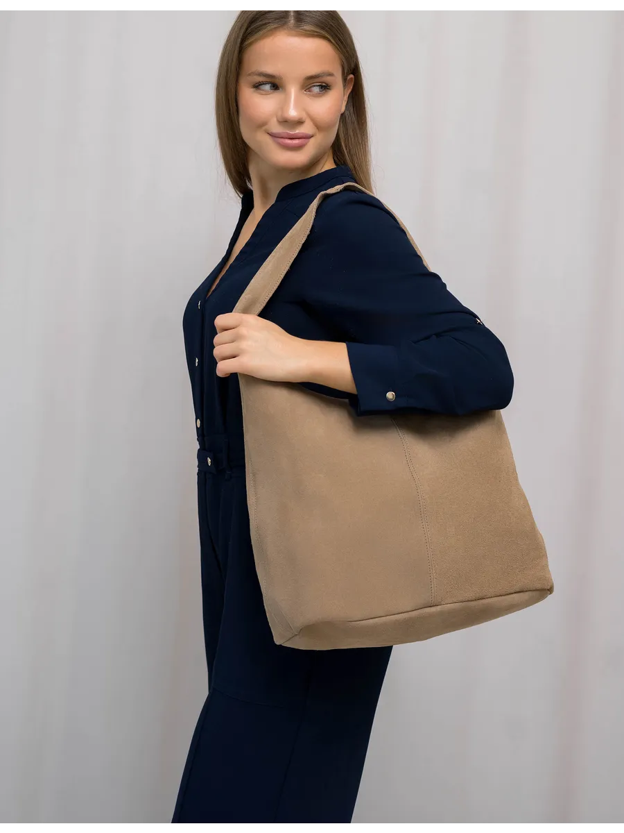 Представляем вам универсальную и стильную женскую сумку большую от бренда LIZA FILINNI. Эта вещь станет незаменимым аксессуаром для девушек и женщин в любой ситуации - от повседневных дел до деловых встреч и путешествий. Модель выполнена из натуральной замши, что обеспечивает не только эффектный внешний вид, но и высокую износостойкость. Шоппер очень лёгкая имеет размеры: ширина 43 см, высота 32 см, глубина 15 см (мякгое дно). Одно основное отделение одно отделение на молнии , прочный подклад, карманы на молнии и без. Высота ручки - 23 см. Вместительный мешок позволяет удобно упаковать все необходимые вещи - от книг и тетрадей до тренировочной формы для фитнеса и спортивных занятий. Если вы ищете базовый тоут на любой сезон - это самый правильный выбор, она подходит на каждый день, на учебу в колледж школу университет, на работу, свидание или праздник. Сумка через плечо удобна в ношении благодаря мягким ручкам. Яркий дизайн делает эту модель мешок идеальной для прогулок, а классический стиль будет уместен в офисе и на деловых встречах. Замшевая сумочка дамская укомплектованавнешним карманом на задней стенке 14х18 см, что позволяет легко и быстро найти нужный предмет на празднике или вечеринке. Шоппер можно использовать для покупок, вмещает формат А4. Эта универсальная вещь подходит как для подростков, так и для женщин, которые ценят стиль и комфорт. Прекрасный подарок для любимой мамы или девушки. Если вы ищете качественную и удобную сумку для путешествий на самолете, то это идеальный выбор.