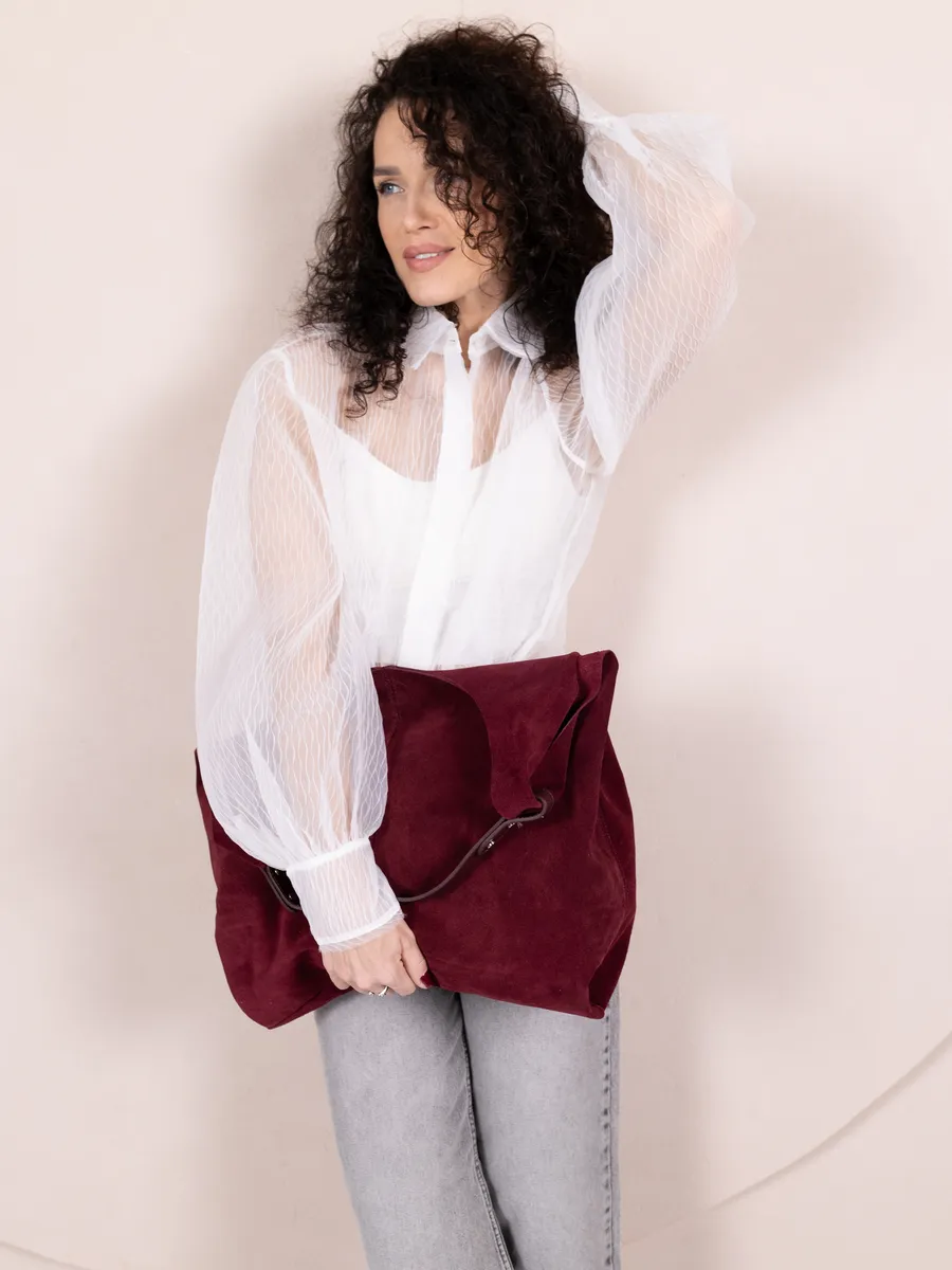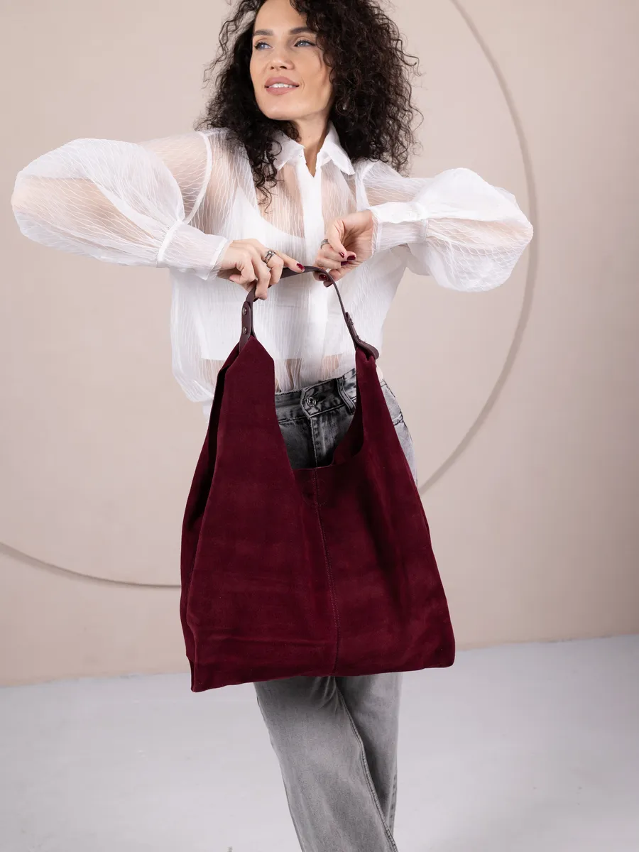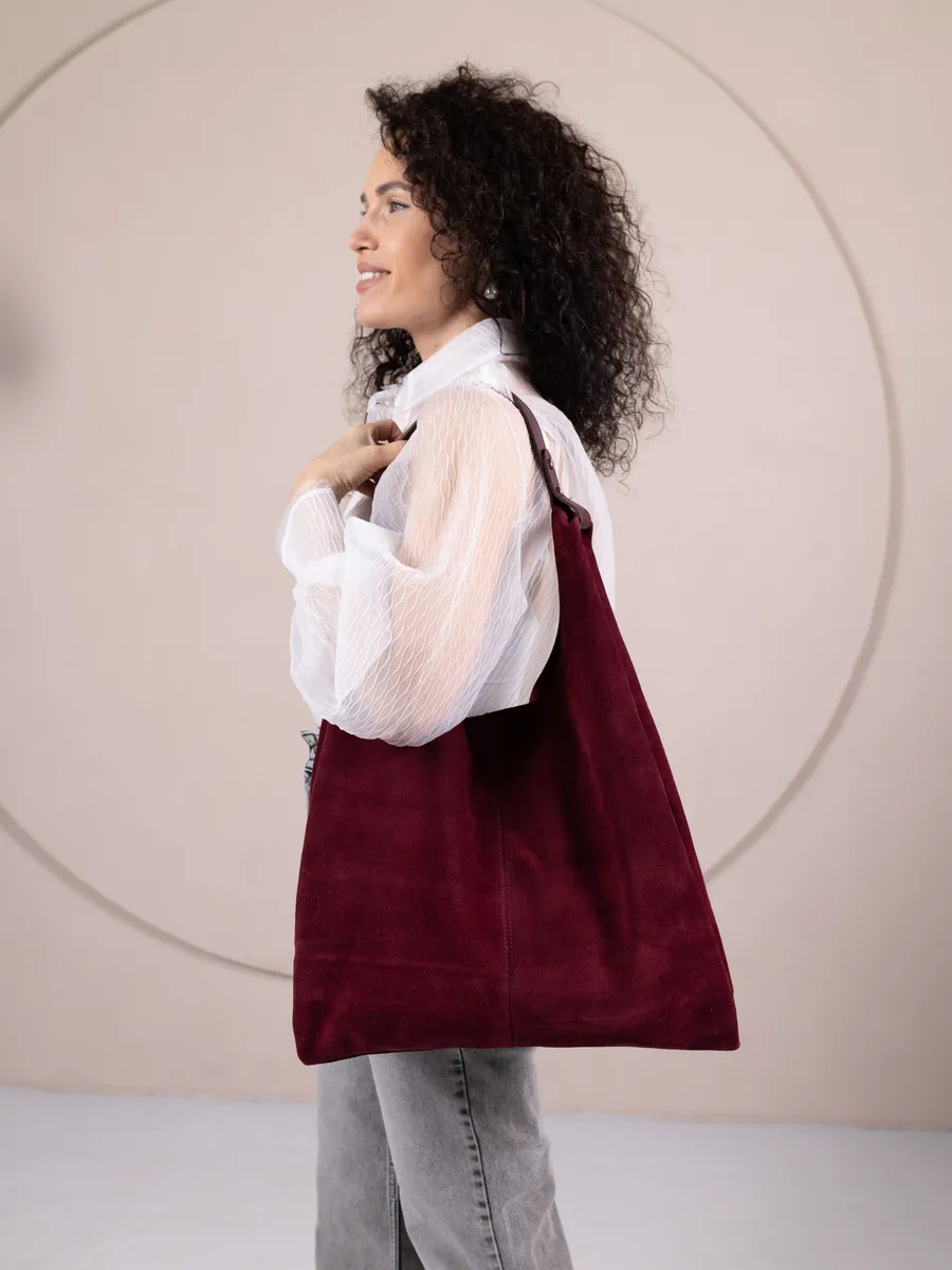 Представляем вам универсальную и стильную женскую сумку большую от бренда LIZA FILINNI Bags. Эта вещь станет незаменимым аксессуаром для девушек и женщин в любой ситуации - от повседневных дел до деловых встреч и путешествий. Модель выполнена из натуральной замши и натуральной кожи (ручка сумки), что обеспечивает не только эффектный внешний вид, но и высокую износостойкость. Швы прошиты прочной лавсановой нитью. Шоппер очень лёгкая имеет размеры: 41х36 (высота по центру)х50 (высота бок)х4 (мякгое дно). Одно основное отделение без подкладки на магнитной кнопке. Высота ручки от центра 30 см. Вместительный мешок позволяет удобно упаковать все необходимые вещи - от книг и тетрадей до тренировочной формы для фитнеса и спортивных занятий. Если вы ищете базовый тоут на любой сезон - это самый правильный выбор, она подходит на каждый день, на учебу в колледж школу университет, на работу, свидание, свадьбу или праздник. Сумка через плечо удобна в ношении благодаря мягким ручкам. Яркий дизайн делает эту модель идеальной для прогулок, а классический стиль будет уместен в офисе и на деловых встречах. Замшевая сумочка дамская также укомплектована дополнительным съемным элементом - мягкая сумка-кошелек -17,5х12 см на молнии, что позволяет легко и быстро найти нужный предмет на празднике или вечеринке. Шоппер можно использовать для покупок, вмещает формат А4. Эта универсальная вещь подходит как для подростков, так и для женщин, которые ценят стиль и комфорт. Прекрасный подарок на 14 февраля и 8 марта для любимой мамы или девушки. Если вы ищете качественную и удобную сумку для путешествий на самолете, то это идеальный выбор.