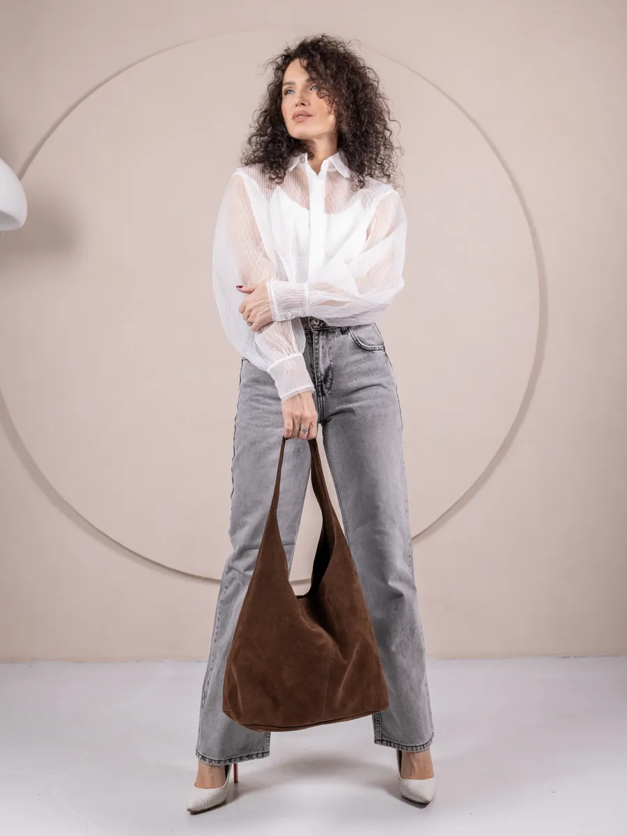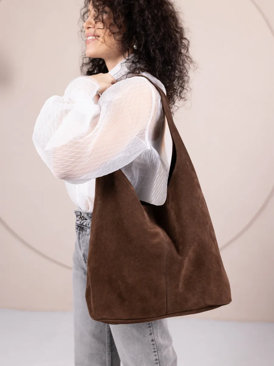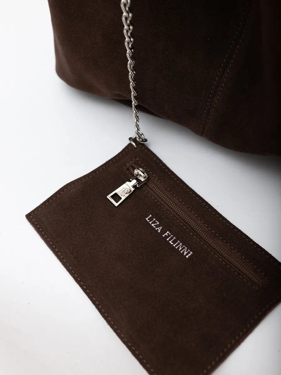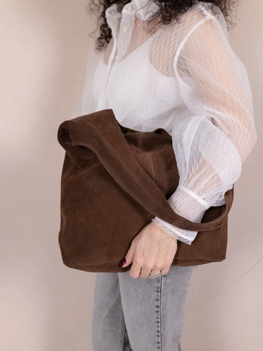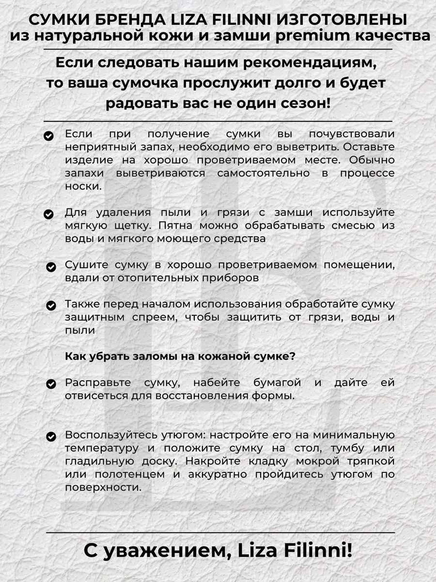 Представляем вам универсальную и стильную женскую сумку большую от бренда LIZA FILINNI Bags. Эта вещь станет незаменимым аксессуаром для девушек и женщин в любой ситуации - от повседневных дел до деловых встреч и путешествий. Модель выполнена из натуральной замши, что обеспечивает не только эффектный внешний вид, но и высокую износостойкость. Швы прошиты прочной лавсановой нитью. Шоппер очень лёгкая имеет размеры: ширина 43 см, высота 32 см, глубина 15 см (мякгое дно). Одно основное отделение без подкладки на магнитной кнопке. Высота ручки - 23 см. Вместительный мешок позволяет удобно упаковать все необходимые вещи - от книг и тетрадей до тренировочной формы для фитнеса и спортивных занятий. Если вы ищете базовый тоут на любой сезон - это самый правильный выбор, она подходит на каждый день, на учебу в колледж школу университет, на работу, свидание, свадьбу или праздник. Сумка через плечо удобна в ношении благодаря мягким ручкам. Яркий дизайн делает эту модель идеальной для прогулок, а классический стиль будет уместен в офисе и на деловых встречах. Замшевая сумочка дамская также укомплектована дополнительным съемным элементом - мягкая сумка-кошелек -17,5х12 см на молнии, что позволяет легко и быстро найти нужный предмет на празднике или вечеринке. Шоппер можно использовать для покупок, вмещает формат А4. Эта универсальная вещь подходит как для подростков, так и для женщин, которые ценят стиль и комфорт. Прекрасный подарок на 14 февраля и 8 марта для любимой мамы или девушки. Если вы ищете качественную и удобную сумку для путешествий на самолете, то это идеальный выбор.