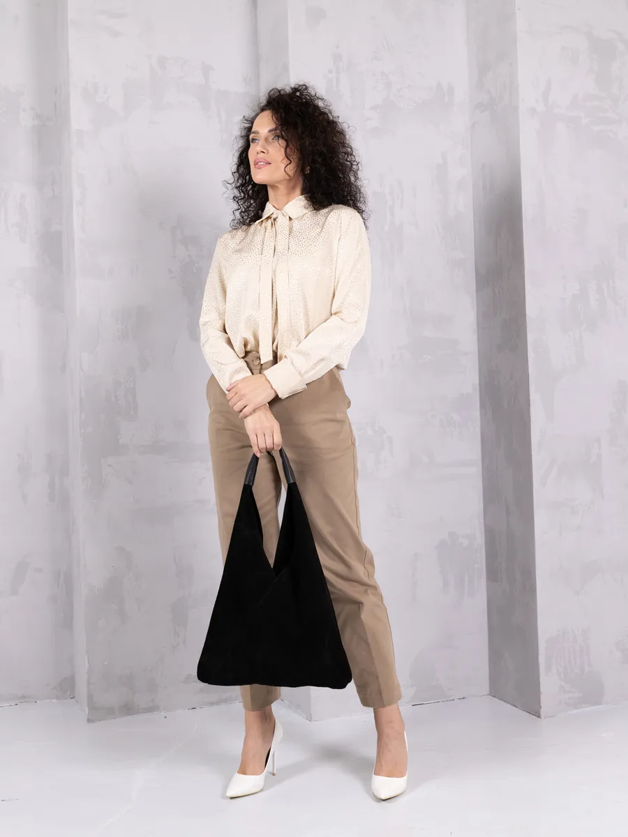 Представляем вам универсальную и стильную женскую сумку большую от бренда LIZA FILINNI Bags. Эта вещь станет незаменимым аксессуаром для девушек и женщин в любой ситуации - от повседневных дел до деловых встреч и путешествий. Модель выполнена из натуральной замши и натуральной кожи (ручка сумки), что обеспечивает не только эффектный внешний вид, но и высокую износостойкость. Швы прошиты прочной лавсановой нитью. Шоппер очень лёгкая имеет размеры: 35х30 (высота по центру)х47 (высота по бокам) х5,5. Высота ручки от центра -30 см. Одно отделение без молнии и магнитной кнопки. Вместительный мешок позволяет удобно упаковать все необходимые вещи - от книг и тетрадей до тренировочной формы для фитнеса и спортивных занятий. Если вы ищете базовый тоут на любой сезон - это самый правильный выбор, она подходит на каждый день, на учебу в колледж школу университет, на работу, свидание, свадьбу или праздник. Сумка через плечо удобна в ношении благодаря мягким ручкам. Яркий дизайн делает эту модель идеальной для прогулок, а классический стиль будет уместен в офисе и на деловых встречах. Замшевая сумочка дамская также укомплектована дополнительным съемным элементом - мягкая сумка-кошелек -17,5х12 см на молнии, что позволяет легко и быстро найти нужный предмет на празднике или вечеринке. Шоппер можно использовать для покупок, вмещает формат А4. Эта универсальная вещь подходит как для подростков, так и для женщин, которые ценят стиль и комфорт. Прекрасный подарок на 14 февраля и 8 марта для любимой мамы или девушки. Если вы ищете качественную и удобную сумку для путешествий на самолете, то это идеальный выбор.