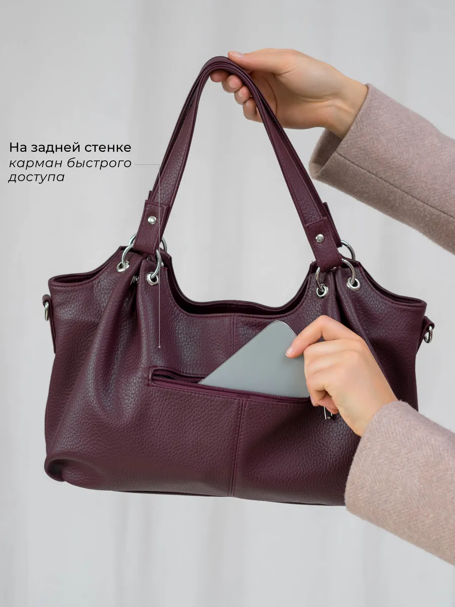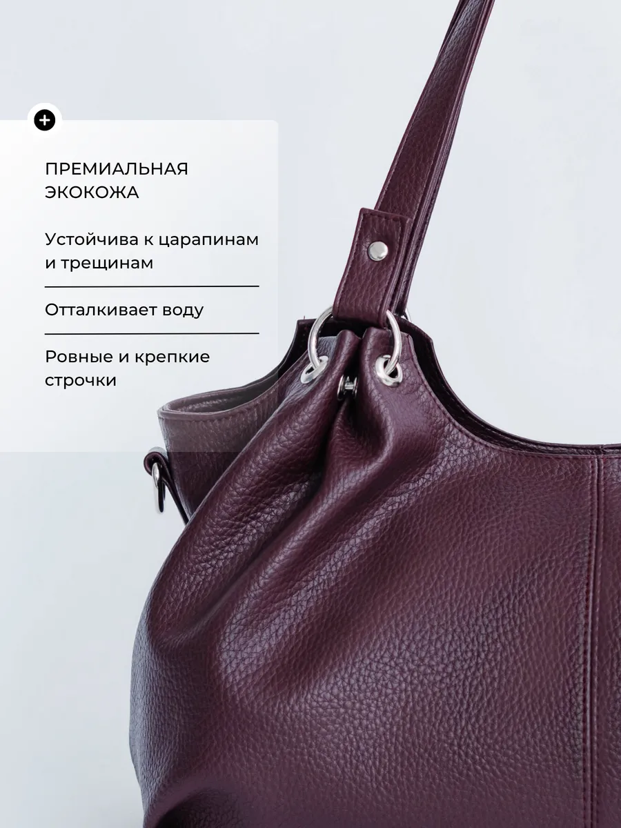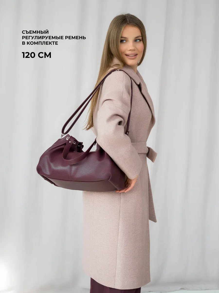 Сумка имеет мягкую форму, весит всего 560 г и остается легкой даже при наполнении. Длина плечевого ремня составляет 120 см, что дает возможность носить аксессуар через плечо, в руке или на запястье.