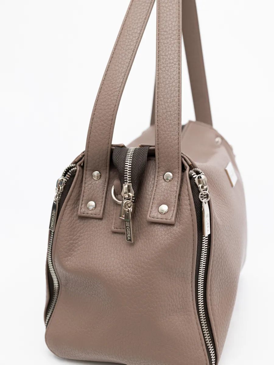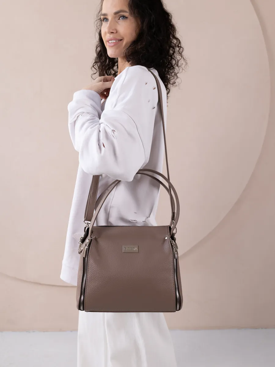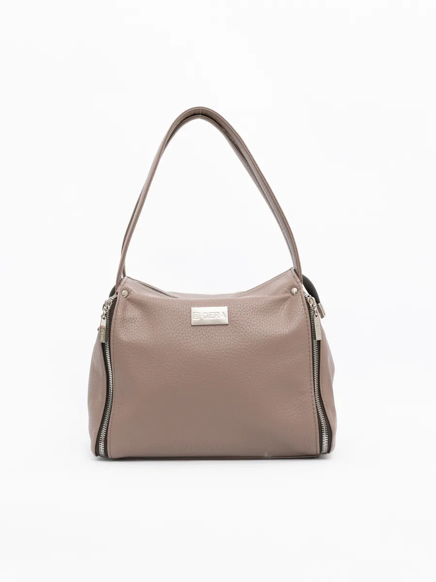 Представляем вам универсальную и стильную женскую сумку через плечо - среднюю классического дизайна. Эта вещь станет незаменимым аксессуаром для девушек и женщин в любой ситуации - от повседневных дел до деловых встреч и путешествий. Сумка выполнена из искусственной кожи премиум качества, что обеспечивает не только эффектный внешний вид, но и высокую износостойкость и не уступает сумкам из натуральной кожи. Вместительный мешок, закрывающийся на молнию, позволяет удобно упаковать все необходимые вещи - от книг и тетрадей до тренировочной формы. Тоут средняя с двумя ручками для женщин подойдет на каждый день, на прогулку, учебу в колледж школу университет, в офис или на работу. Яркий дизайн делает эту сумку идеальной для прогулок и учебы, а классический стиль будет уместен в офисе и на деловых встречах. Сумочка дамская через плечо также укомплектована отделениями для телефона и других мелочей, что позволяет легко и быстро найти нужный предмет. Не шоппер, но достаточно вместительная. Эта универсальная вещь подходит как для подростков, так и для женщин, которые ценят стиль и комфорт. Модель имеет размеры 26х25х12. На задней стенке карман на молнии 17х14 см. Высота ручек 17 см, в комплекте идет длинный наплечный ремень 110 см. Внутри сумки классической одно отделение на молнии. Внутри хобо плотная подкладка, карман на молнии для мобильного телефона и карман открытого типа. Не упустите возможность приобрести эту многофункциональную и стильную не очень большую сумку через плечо от Gera Bags! Прекрасный подарок на 14 февраля и 8 марта для любимой мамы или девушки! Женские сумки от бренда Gera Bags - это качество российского производителя по доступной цене!