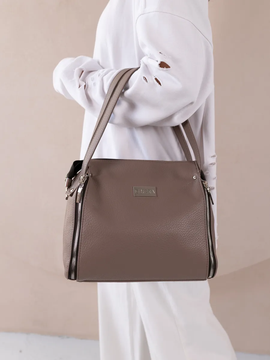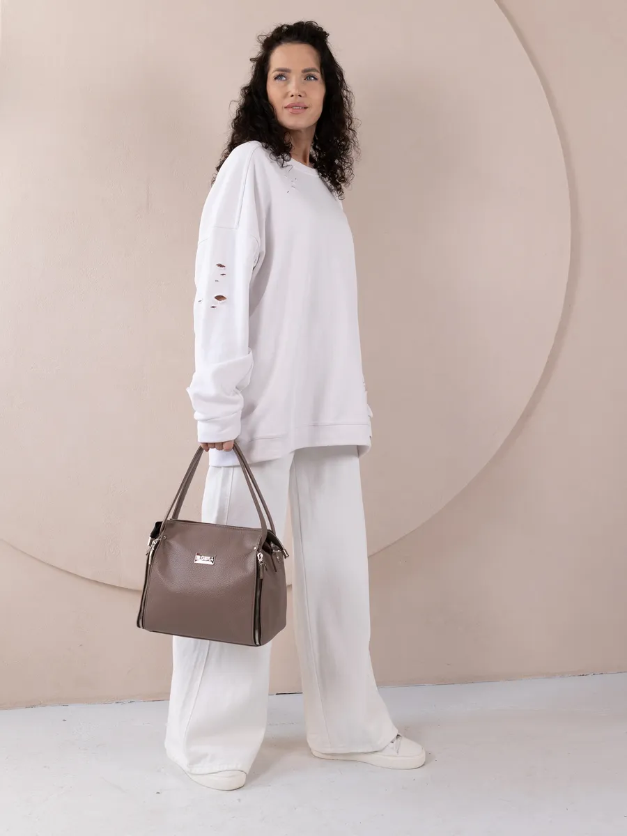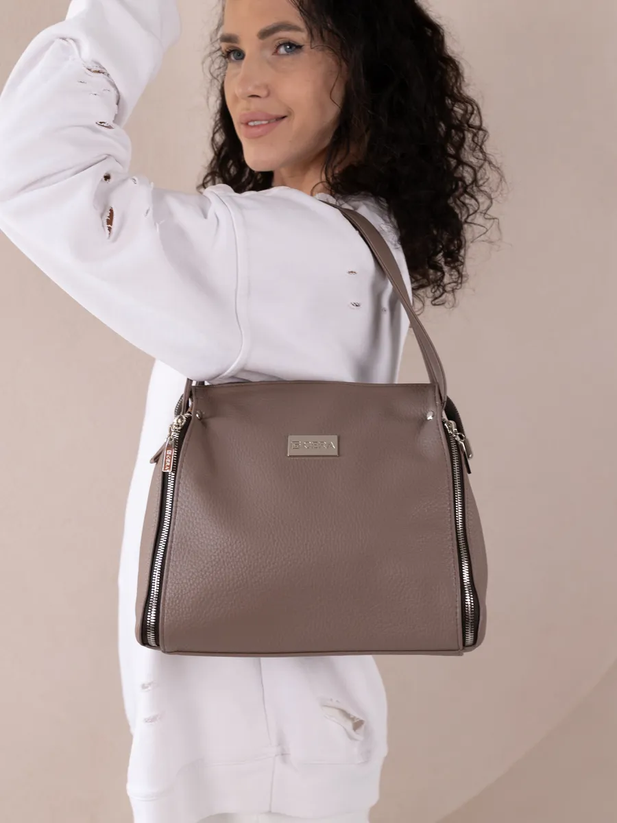 Представляем вам универсальную и стильную женскую сумку через плечо - среднюю классического дизайна. Эта вещь станет незаменимым аксессуаром для девушек и женщин в любой ситуации - от повседневных дел до деловых встреч и путешествий. Сумка выполнена из искусственной кожи премиум качества, что обеспечивает не только эффектный внешний вид, но и высокую износостойкость и не уступает сумкам из натуральной кожи. Вместительный мешок, закрывающийся на молнию, позволяет удобно упаковать все необходимые вещи - от книг и тетрадей до тренировочной формы. Тоут средняя с двумя ручками для женщин подойдет на каждый день, на прогулку, учебу в колледж школу университет, в офис или на работу. Яркий дизайн делает эту сумку идеальной для прогулок и учебы, а классический стиль будет уместен в офисе и на деловых встречах. Сумочка дамская через плечо также укомплектована отделениями для телефона и других мелочей, что позволяет легко и быстро найти нужный предмет. Не шоппер, но достаточно вместительная. Эта универсальная вещь подходит как для подростков, так и для женщин, которые ценят стиль и комфорт. Модель имеет размеры 26х25х12. На задней стенке карман на молнии 17х14 см. Высота ручек 17 см, в комплекте идет длинный наплечный ремень 110 см. Внутри сумки классической одно отделение на молнии. Внутри хобо плотная подкладка, карман на молнии для мобильного телефона и карман открытого типа. Не упустите возможность приобрести эту многофункциональную и стильную не очень большую сумку через плечо от Gera Bags! Прекрасный подарок на 14 февраля и 8 марта для любимой мамы или девушки! Женские сумки от бренда Gera Bags - это качество российского производителя по доступной цене!