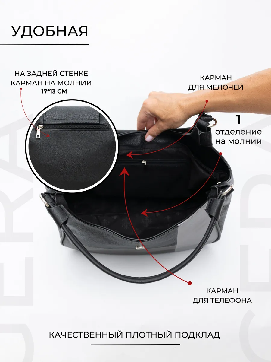 Представляем вам универсальную и стильную женскую сумку через плечо - среднюю классического дизайна. Эта вещь станет незаменимым аксессуаром для девушек и женщин в любой ситуации - от повседневных дел до деловых встреч и путешествий. Сумка выполнена из искусственной кожи премиум качества, что обеспечивает не только эффектный внешний вид, но и высокую износостойкость и не уступает сумкам из натуральной кожи.. Вместительный мешок, закрывающийся на молнию, позволяет удобно упаковать все необходимые вещи - от книг и тетрадей до тренировочной формы. Тоут средняя с двумя ручками для женщин подойдет на каждый день, на прогулку, учебу в колледж школу университет, в офис или на работу. Яркий дизайн делает эту сумку идеальной для прогулок и учебы, а классический стиль будет уместен в офисе и на деловых встречах. Сумочка дамская через плечо также укомплектована отделениями для телефона и других мелочей, что позволяет легко и быстро найти нужный предмет. Не шоппер, но достаточно вместительная. Эта универсальная вещь подходит как для подростков, так и для женщин, которые ценят стиль и комфорт. Модель имеет размеры 32 см-ширина по низу, 40 см ширина по верху, 25 -высота по центру, 13 -глубина. Высота ручек -26 см. Внутри сумки классической одно отделение на молнии, внутри боковые карманы для мелочей на молнии и без. На задней стенке карманнамолнии17*13. Внутри хобо плотная подкладка, карман на молнии для мобильного телефона и карман открытого типа. Не упустите возможность приобрести эту многофункциональную и стильную не очень большую сумку через плечо от Gera Bags! Прекрасный подарок на 14 февраля и 8 марта для любимой мамы или девушки! Женские сумки от бренда Gera Bags - это качество российского производителя по доступной цене!