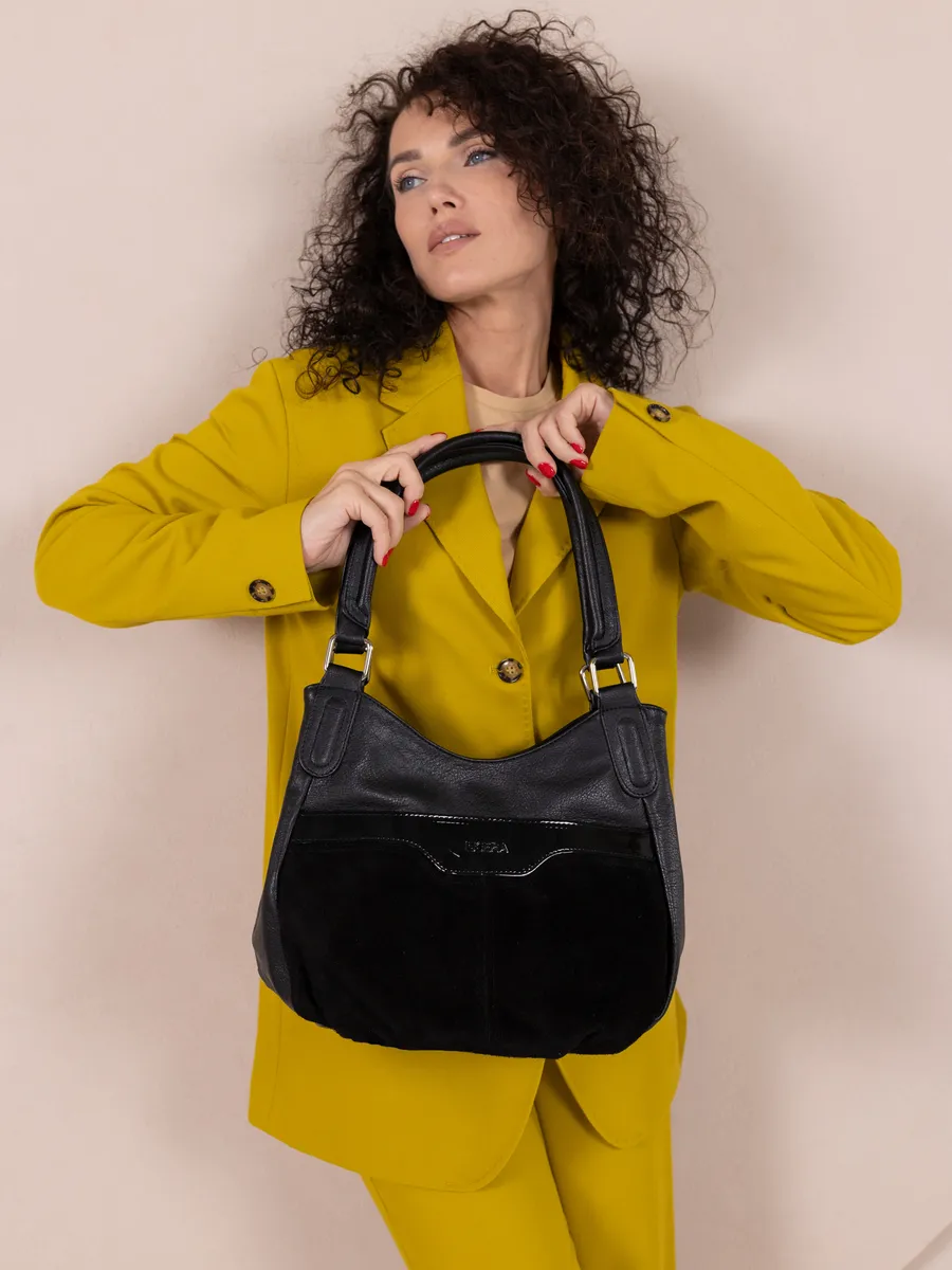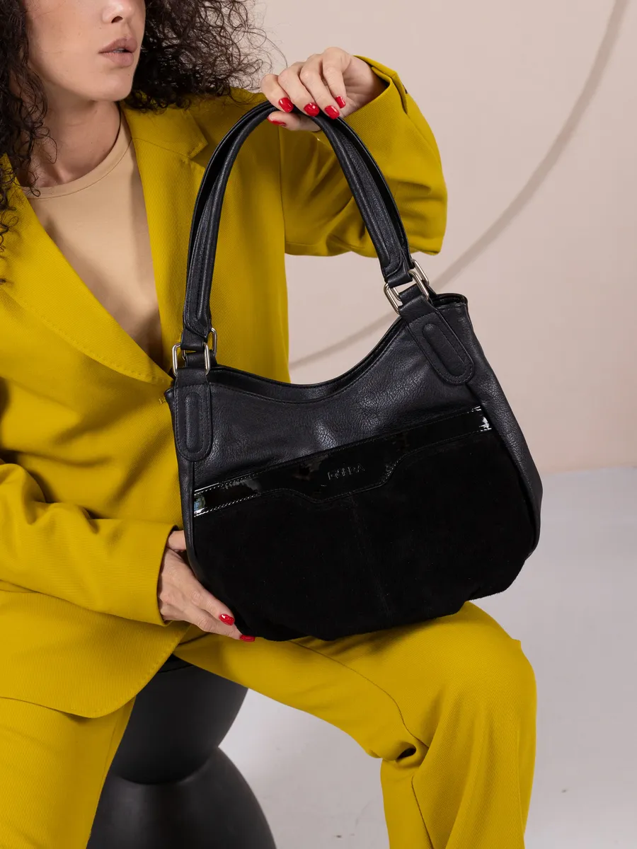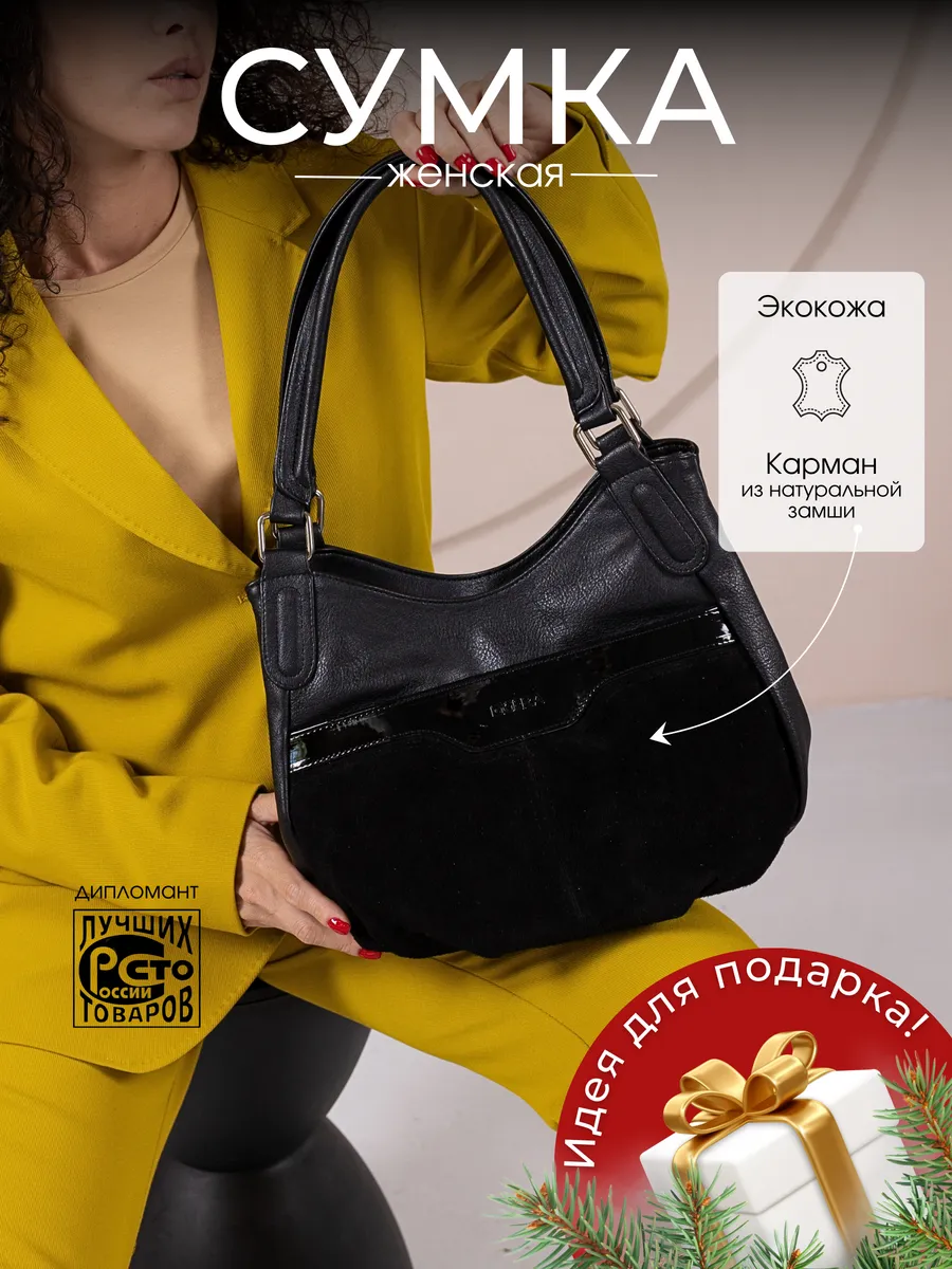 Выбираете стильную и удобную сумку, которая станет базовой в гардеробе? Тогда Вам понравится вместительная и универсальная модель от бренда «Gera Bags»! Аксессуар сшит из мягкой и плотной искусственной экокожи с матовой фактурой. Изнутри он отделан прочной текстильной подкладкой. Красивая дамская сумочка премиум – качества имеет два больших внутренних отделения, разделенных перегородкой. Внутри предусмотрен открытый кармашек и застегивающийся на молнию карман для мобильного телефона. Объемная сумка прямоугольной формы с внутренними кармашками также дополнена внешним карманом на передней стенке, выполненным из натуральной замши. Две широкие короткие ручки позволяют носить ее на плече. Модель имеет оптимальный средний размер, благодаря чему вмещает книги и тетради. Это отличный выбор, чтобы ходить на работу или учебу. Модный аксессуар дополнит неформальные повседневные и сдержанные деловые образы. Его удобно брать с собой на прогулки или на шопинг. Элегантная сумочка подойдет взрослым женщинам и молодым девушкам. Она отлично впишется в трендовый молодежный стиль кэжуал и понравится девочкам – подросткам. Аксессуар из кожзама отличается актуальным дизайном, высоким качеством пошива и фурнитуры. Он украсит много образов на каждый день или на выход. Это хороший выбор для ежедневных походов в офис или университет. Модель с двумя отделениями размером 35 х 23 х 10,5 см вместит много нужных предметов и мелочей: от ключей до учебников. Внешний карман на задней стенке 17*13 см. Внешний карман на передней стенке на магниткнопке: 28*16см. С ней можно ходить на занятия в школу или колледж. Стильный аксессуар можно приобрести в качестве подарка любимой маме или бабушке. У нас есть акции и распродажи, вы можете купить наши товары в подарок со скидкой!