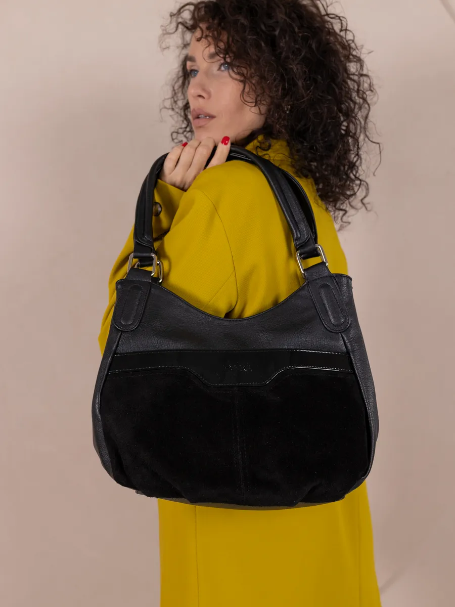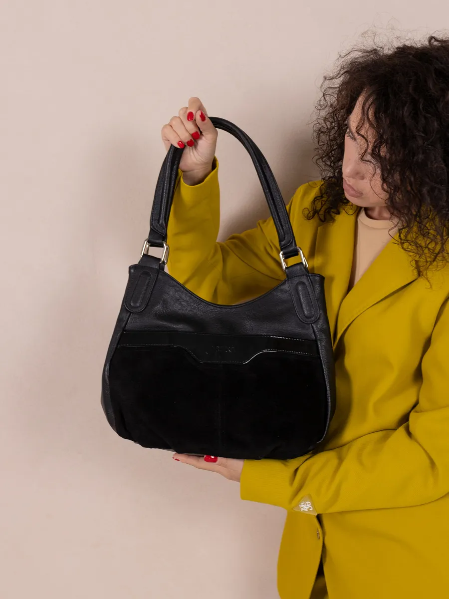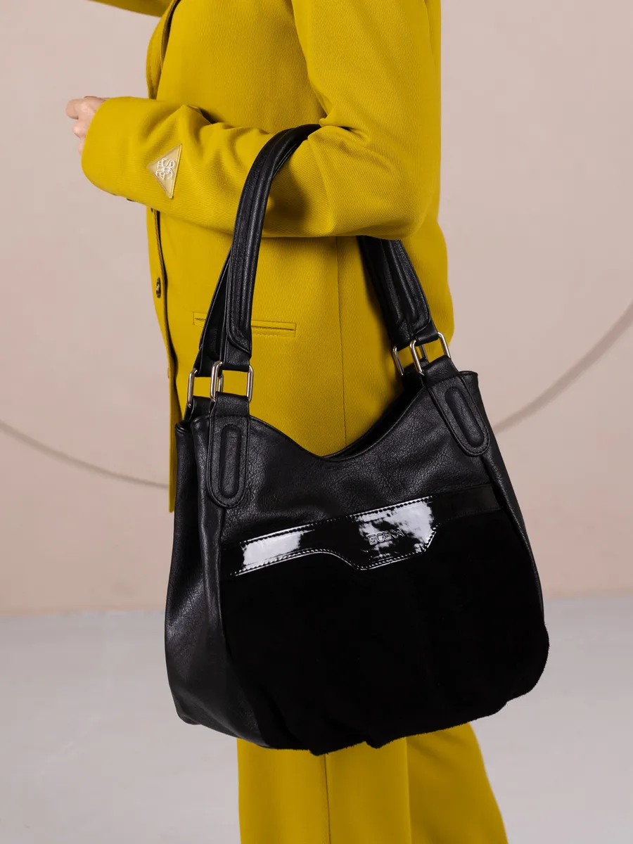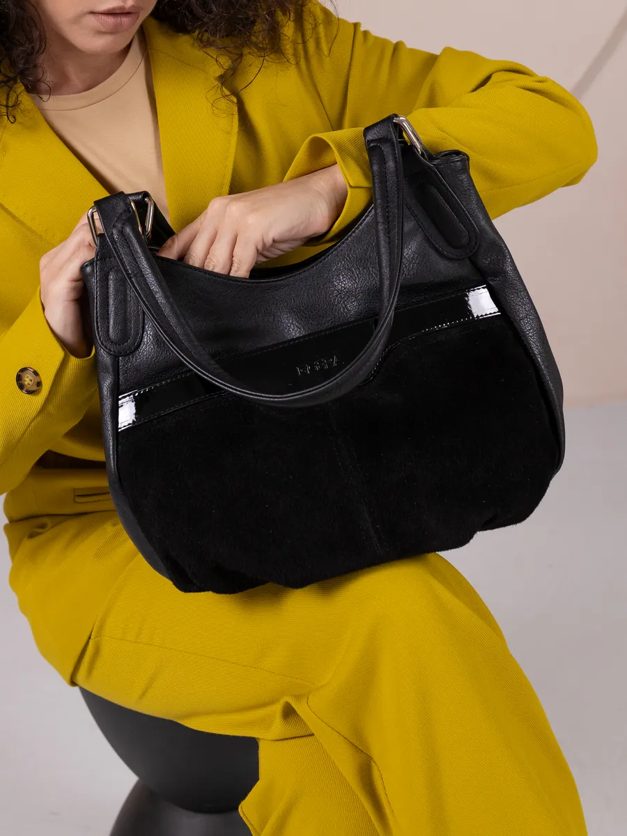Выбираете стильную и удобную сумку, которая станет базовой в гардеробе? Тогда Вам понравится вместительная и универсальная модель от бренда «Gera Bags»! Аксессуар сшит из мягкой и плотной искусственной экокожи с матовой фактурой. Изнутри он отделан прочной текстильной подкладкой. Красивая дамская сумочка премиум – качества имеет два больших внутренних отделения, разделенных перегородкой. Внутри предусмотрен открытый кармашек и застегивающийся на молнию карман для мобильного телефона. Объемная сумка прямоугольной формы с внутренними кармашками также дополнена внешним карманом на передней стенке, выполненным из натуральной замши. Две широкие короткие ручки позволяют носить ее на плече. Модель имеет оптимальный средний размер, благодаря чему вмещает книги и тетради. Это отличный выбор, чтобы ходить на работу или учебу. Модный аксессуар дополнит неформальные повседневные и сдержанные деловые образы. Его удобно брать с собой на прогулки или на шопинг. Элегантная сумочка подойдет взрослым женщинам и молодым девушкам. Она отлично впишется в трендовый молодежный стиль кэжуал и понравится девочкам – подросткам. Аксессуар из кожзама отличается актуальным дизайном, высоким качеством пошива и фурнитуры. Он украсит много образов на каждый день или на выход. Это хороший выбор для ежедневных походов в офис или университет. Модель с двумя отделениями размером 35 х 23 х 10,5 см вместит много нужных предметов и мелочей: от ключей до учебников. Внешний карман на задней стенке 17*13 см. Внешний карман на передней стенке на магниткнопке: 28*16см. С ней можно ходить на занятия в школу или колледж. Стильный аксессуар можно приобрести в качестве подарка любимой маме или бабушке. У нас есть акции и распродажи, вы можете купить наши товары в подарок со скидкой!