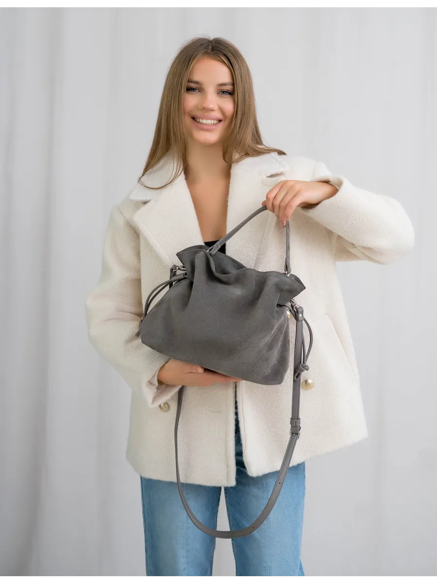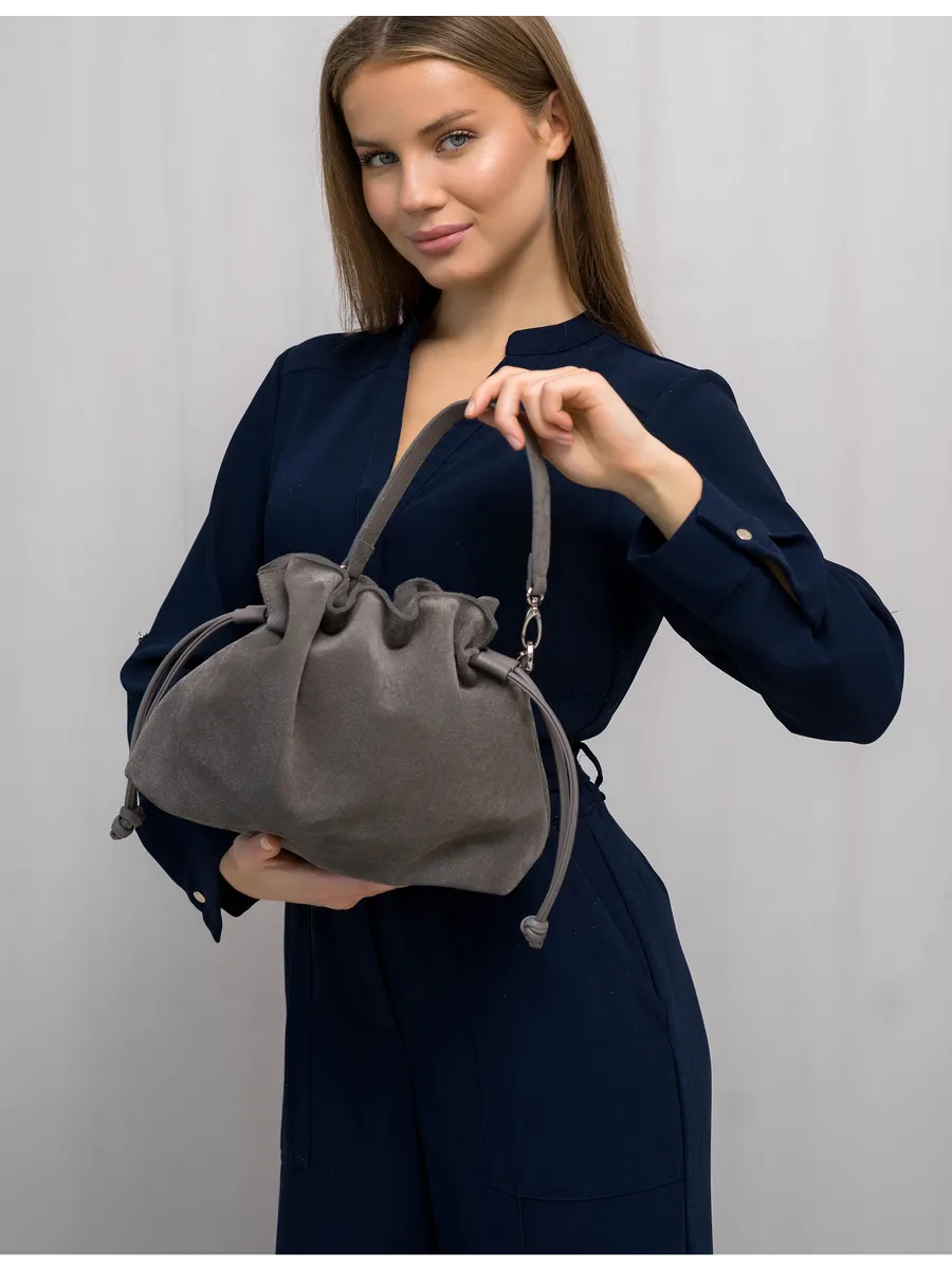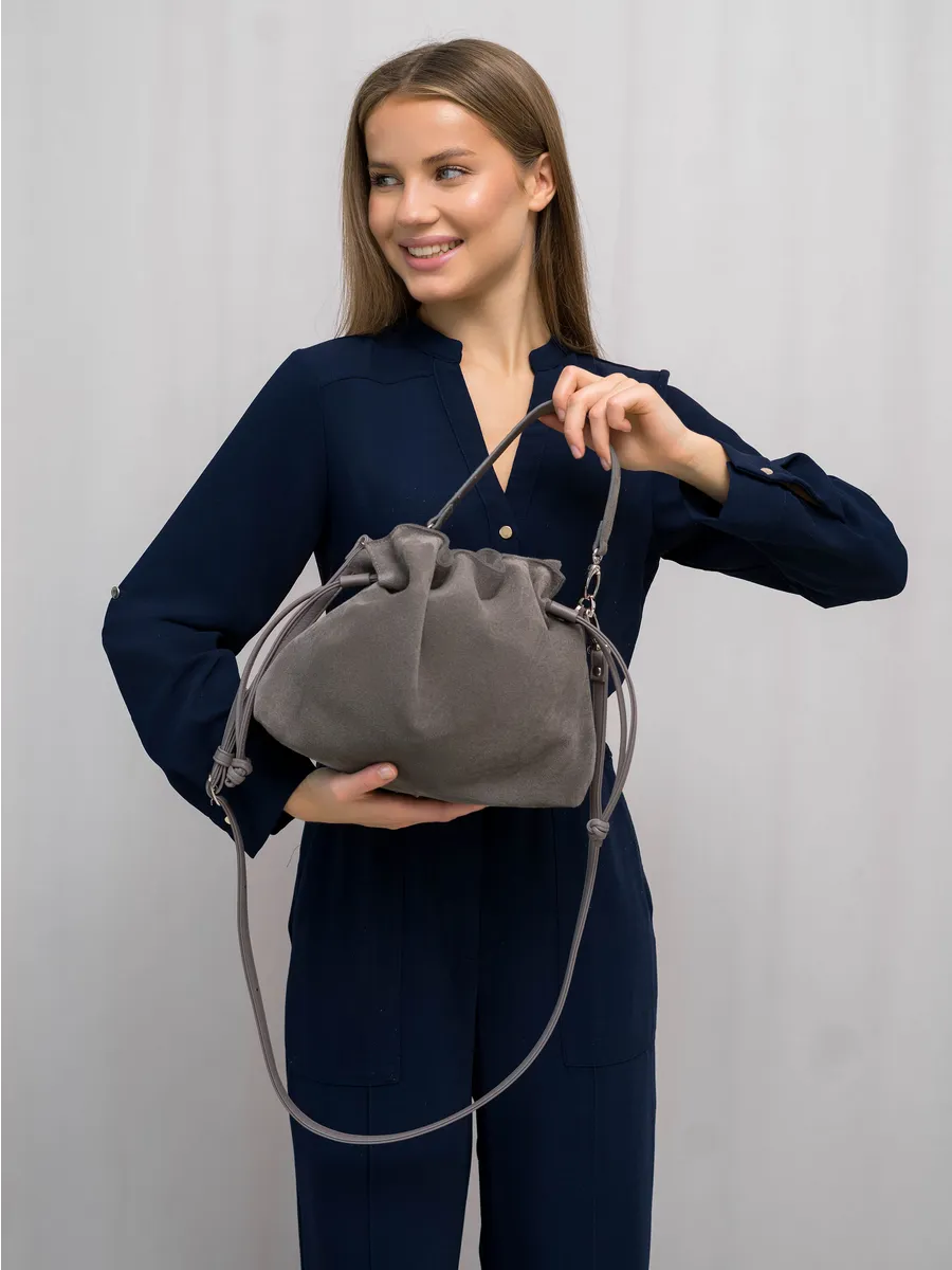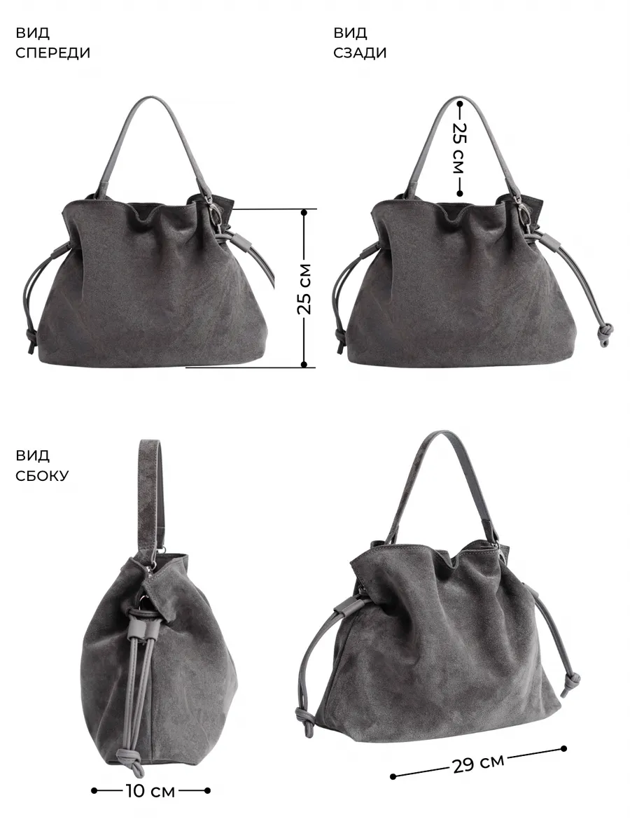 Сумка женская через плечо стягивается шнуром и закрывается на магнитную кнопку. Женская сумка мешок выполнена из натуральной замши (стенки сумки), + ремни из искусственной кожи отличного качества, которая сохраняет свои первозданные свойства в течение долгого времени, и не уступает по мягкости и внешнему виду натуральной коже. Не очень большая , но вместительная и удобная сумка позволяет вместить все самое необходимое. Кисет можно носить в руках или повесить на плечо. Сумка женская через плечо средняя в стиле бохо практична, идеальна для повседневного ношения, подойдет как деловая или вместительная на работу в офис. Эта кросс-боди станет незаменимым аксессуаром для девушек и женщин в любой ситуации - от повседневных дел до деловых встреч и путешествий. Тоут средняя с двумя ручками для женщин подойдет на каждый день, на прогулку, учебу в колледж школу университет, в офис или на работу. Яркий дизайн делает эту сумку мешок идеальной для прогулок и учебы, а классический стиль будет уместен в офисе и на деловых встречах. Сумочка дамская через плечо также укомплектована отделениями для телефона и других мелочей, что позволяет легко и быстро найти нужный предмет. Не шоппер, но достаточно вместительная кросбоди. Торба имеет размеры ширина 29 см, глубина 10см, высота 25 см, внутри сумки карман на молнии 20*12 см, внутри косметичка из подкладочной ткани шириной 22,5 см, глубина 6,5 см, высота 13 . Внутри сумки кисет 1 отделение. Малый ремень 31 см,ручка держится на карабинах можно снять и носить только на длинном ремне, либо снять ремень и носит как клатч. В комплекте идет длинный регулируемый ремень, максимальная 120 см. На задней стенке карман на молнии 18х13см . Не упустите возможность приобрести эту стильную сумку через плечо! Прекрасный подарок для любимой мамы или девушки! Женские сумки от бренда Gera - это качество российского производителя по доступной цене!